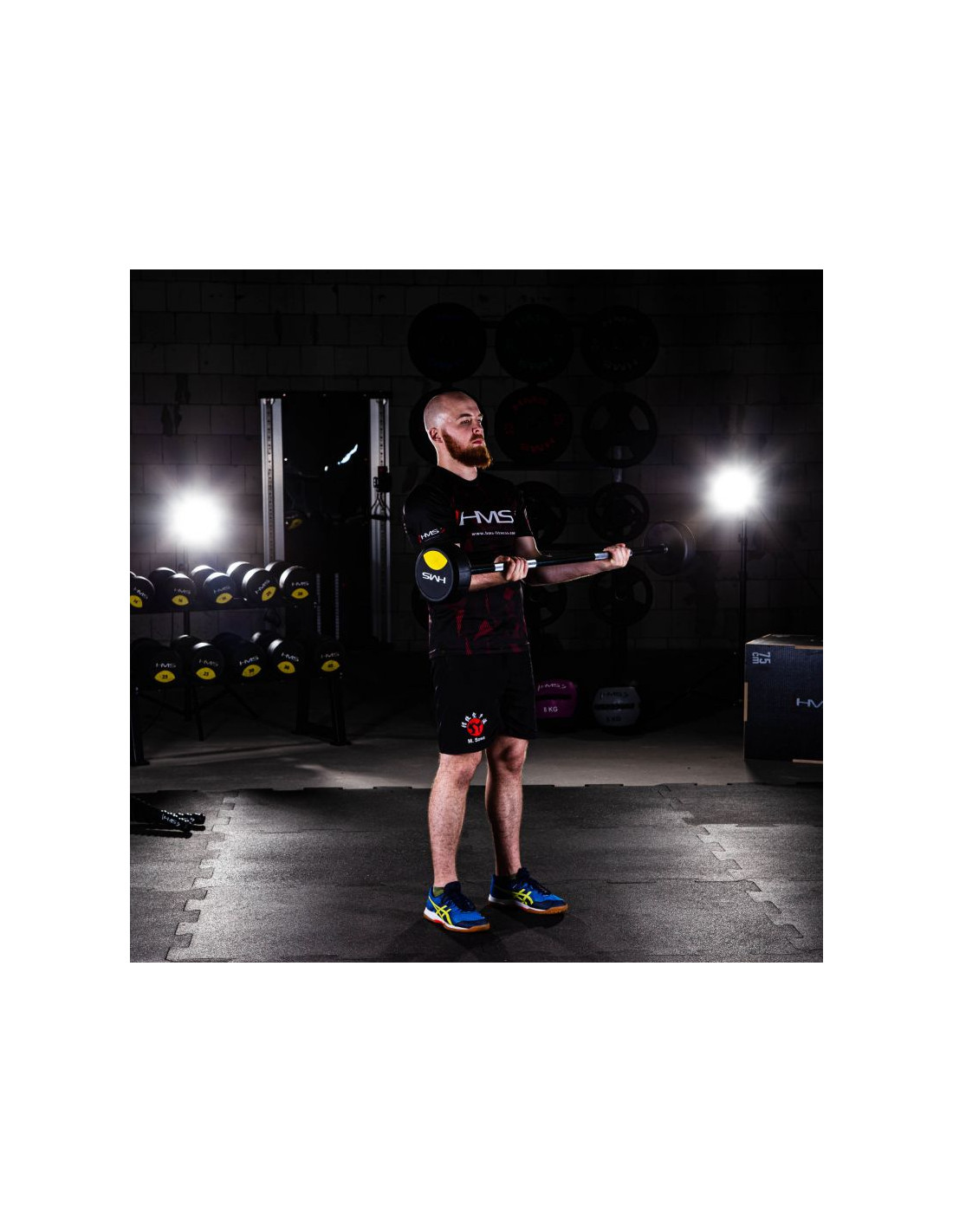 GSG HMS - sztanga / gryf stały, prosty, z obciążeniem gumowanym o wadze 10, 20, 30, 40 lub 50 kilogramów.