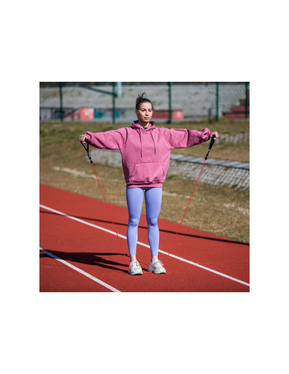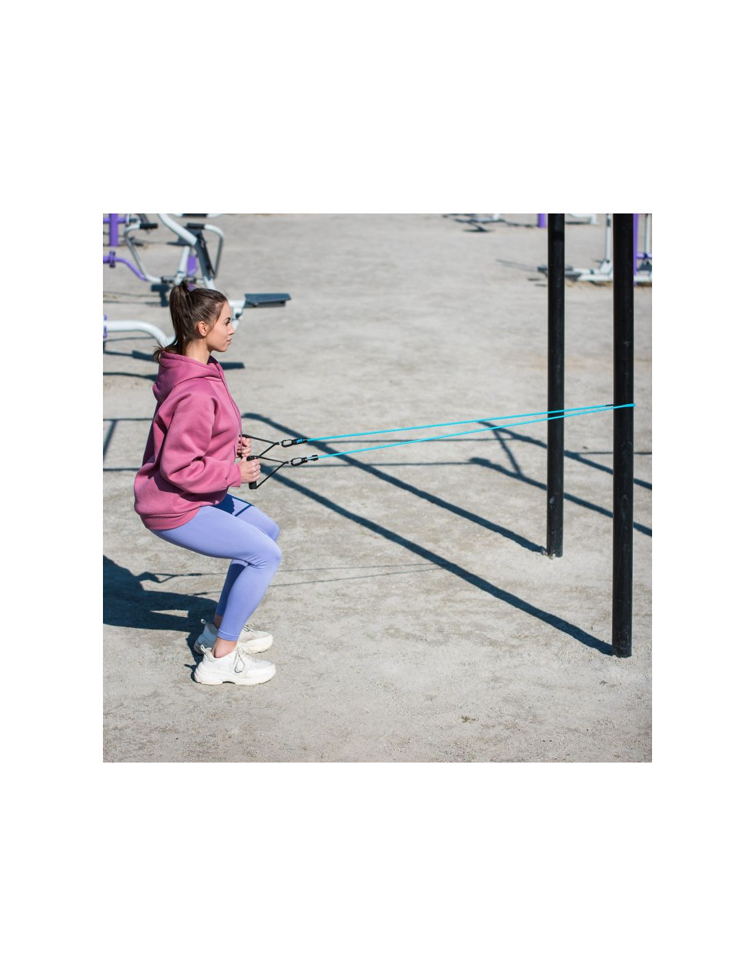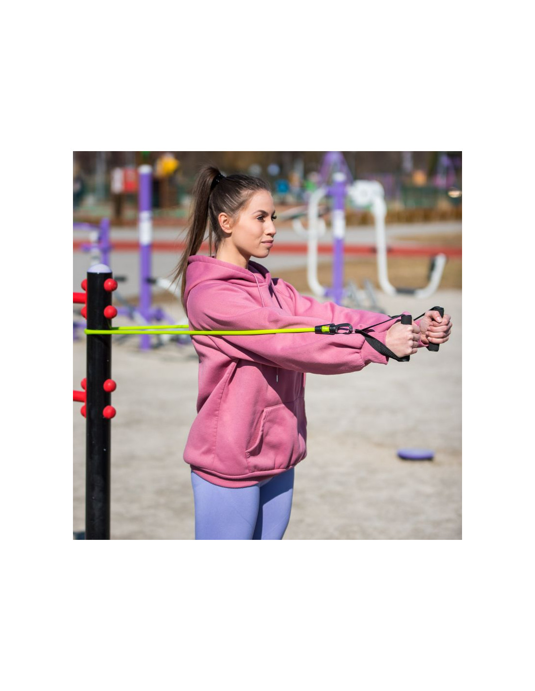Gumy wykorzystują masę ciała użytkownika do poprawienia jego sprawności i siły. Wysoka jakość, przemyślana konstrukcja i trwałość są gwarantem udanego treningu w każdych warunkach. W skład zestawu wchodzi 5 gum oporowych, dwa uchwyty na ręce, dwa uchwyty na kostkę oraz jeden uchwyt pod drzwi.