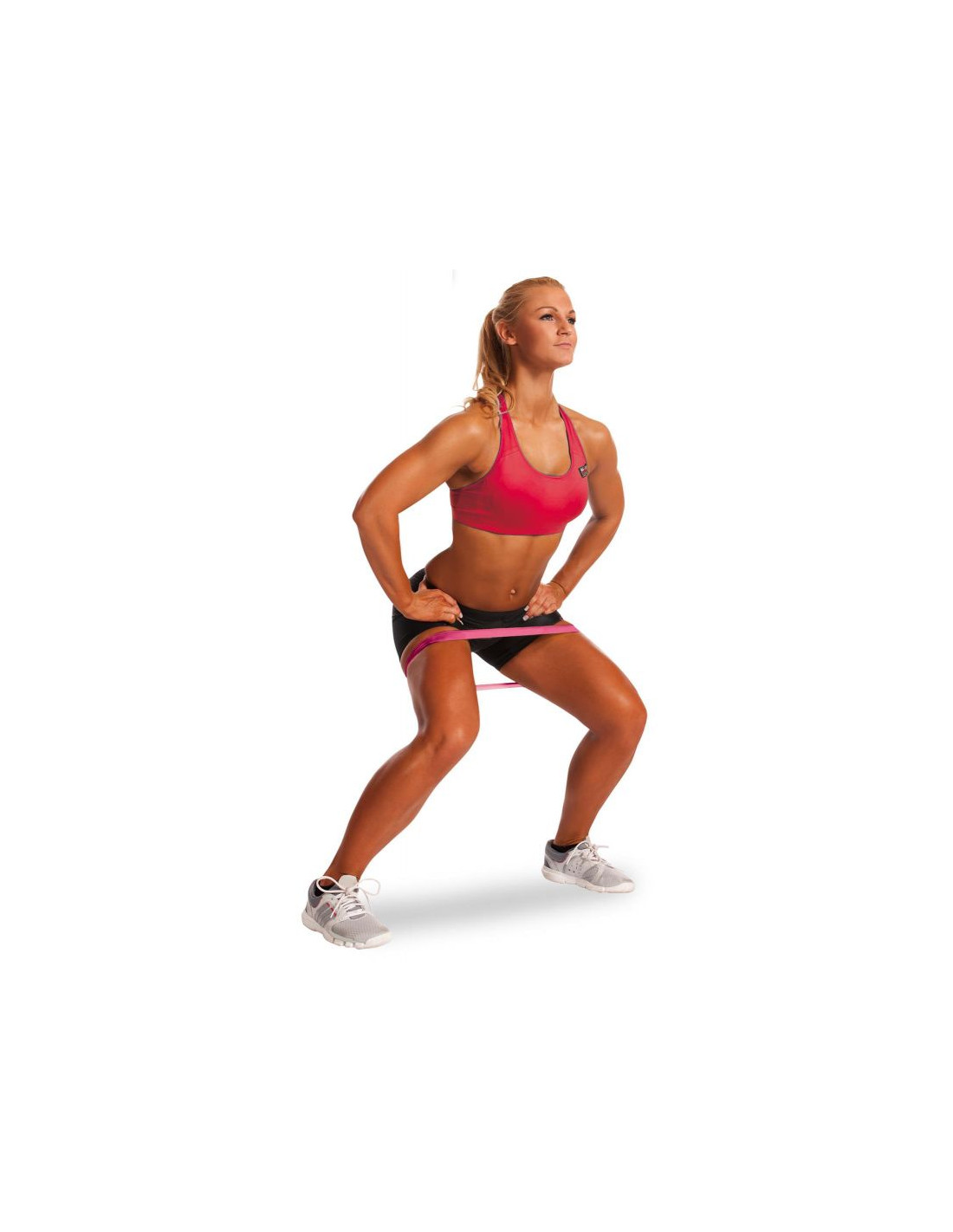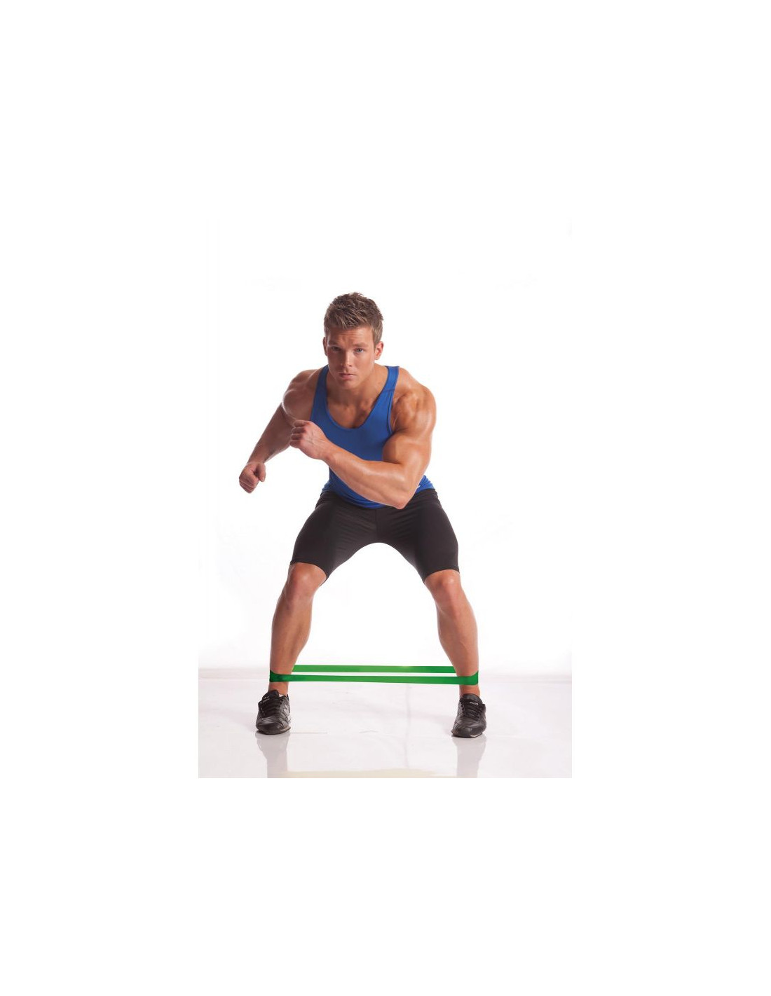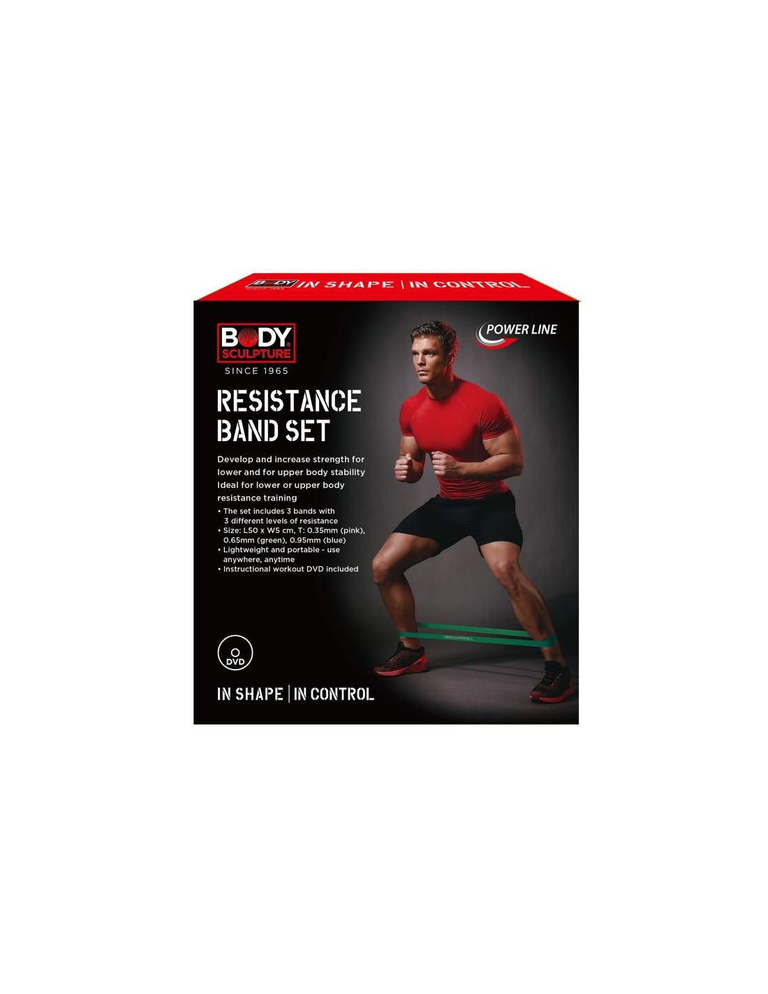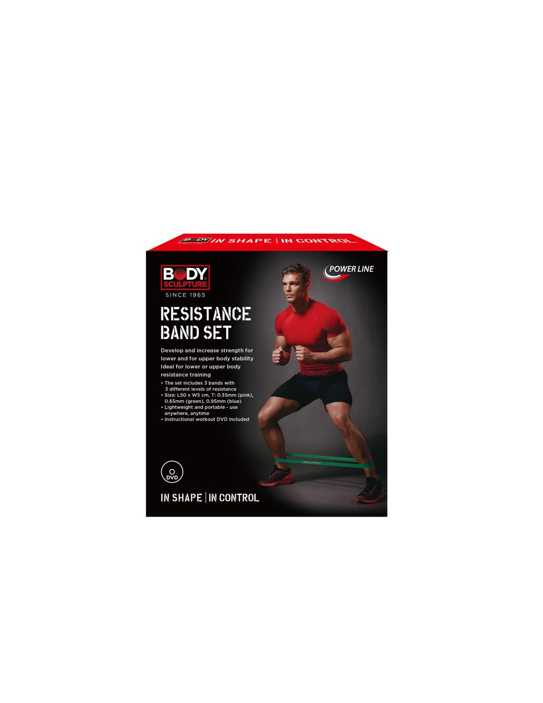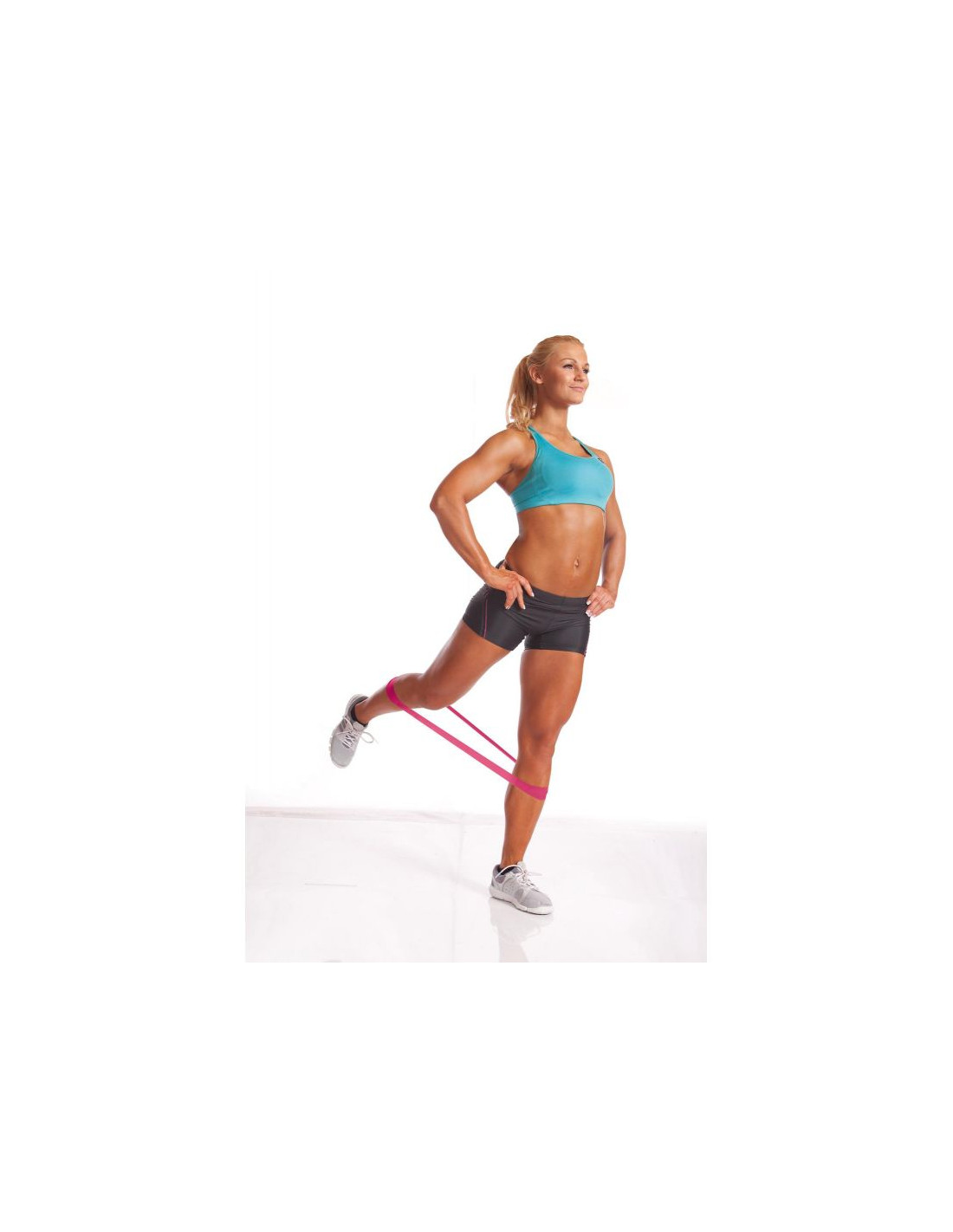 - zestaw 3 elastycznych taśm oporowych o różnej grubości i różnym poziomie oporu, służących przede wszystkim do treningu wzmacniającego mięśni nóg i rąk