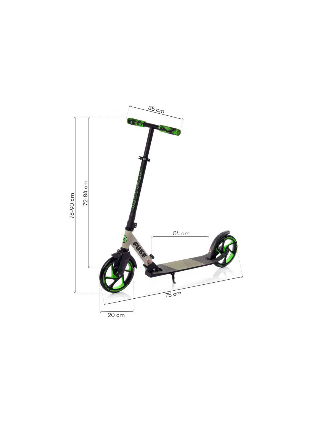 Wysokiej jakości – poliuretanowe 200mm kółka zapewniają amortyzację, tłumiąc drgania i wstrząsy spowodowane nierównościami nawierzchni. Odznaczają się duża wytrzymałością, w dużej mierze dzięki wysokiej klasy łożyskom ABEC-7, które podnoszą stabilność i płynność jazdy. W połączeniu z szerokim podestem hulajnoga oferuje maksymalne bezpieczeństwo w trakcie jazdy oraz wytrzymałość na lata. Odkryj radość podróży Twojego dziecka z hulajnogą Meteor Fuse!