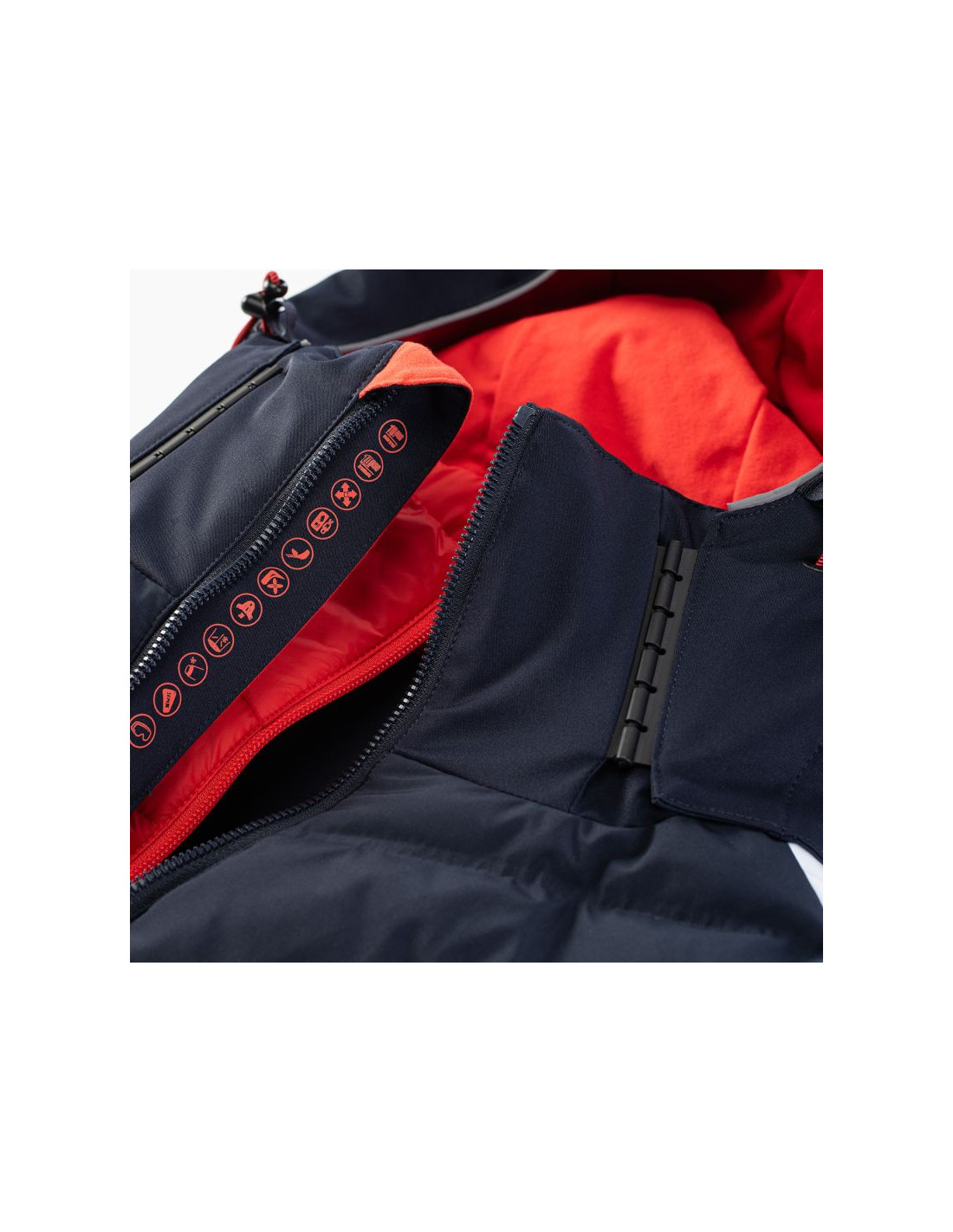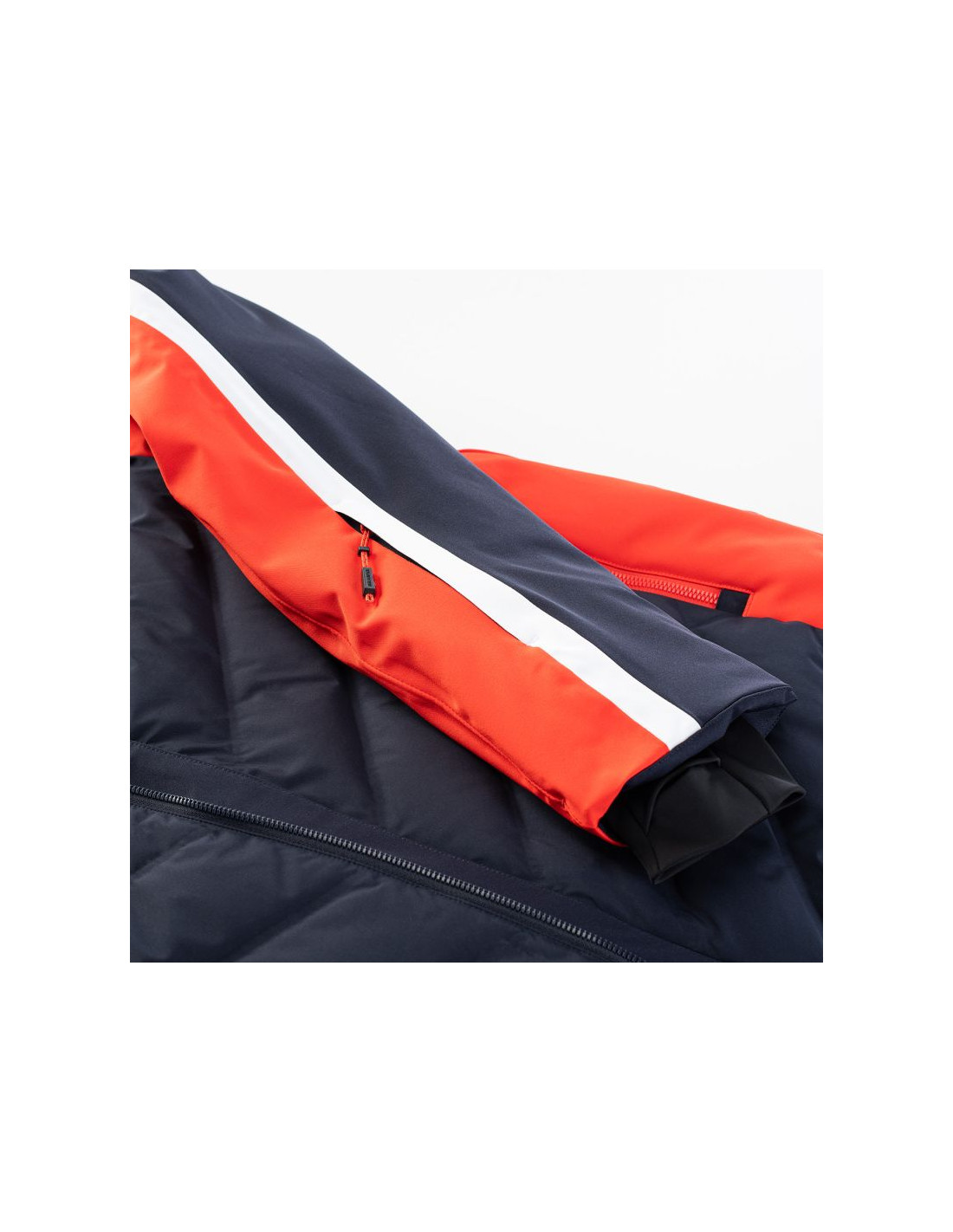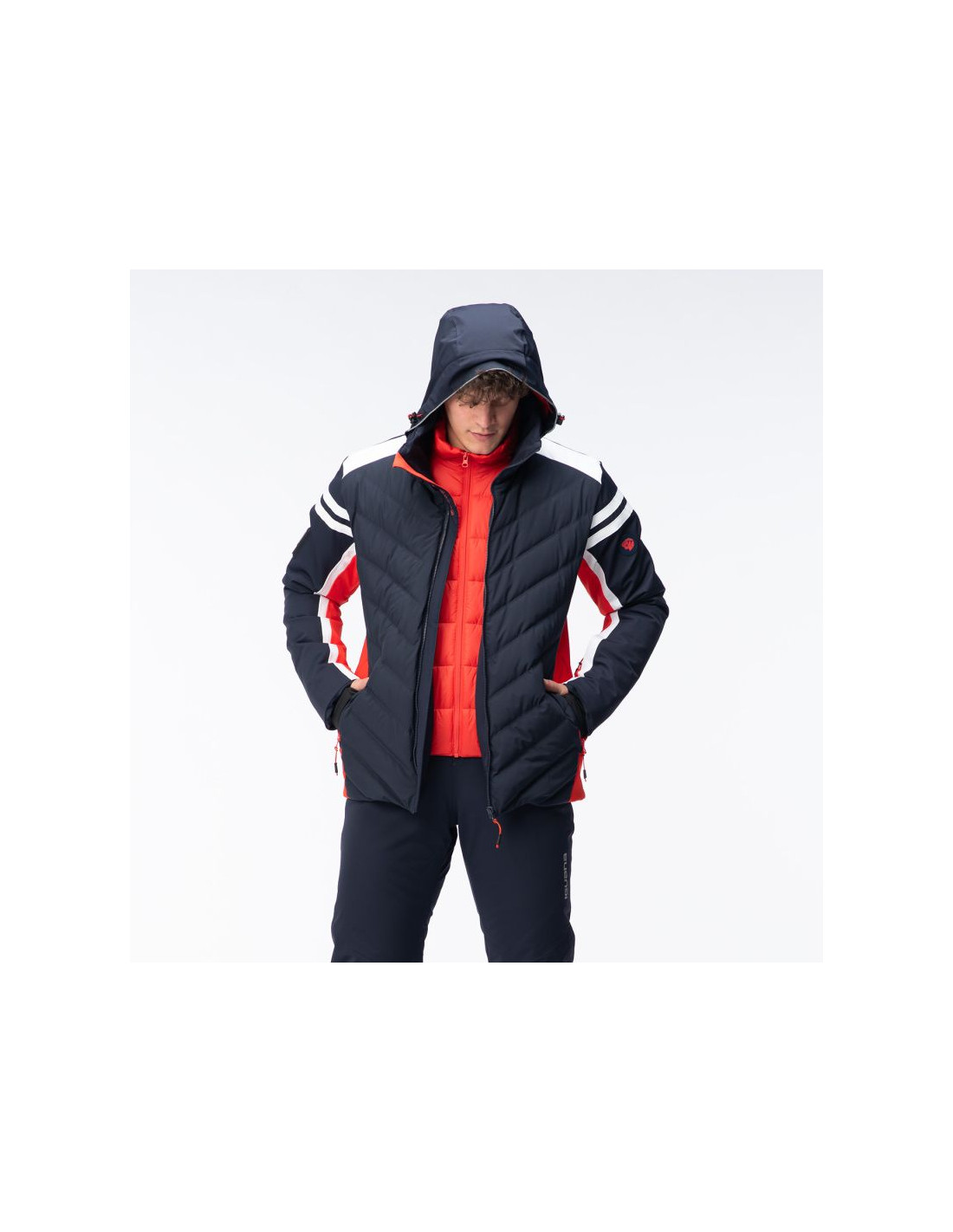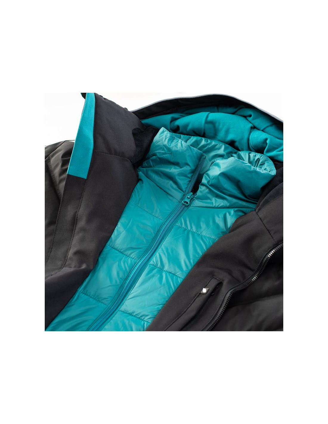 - Wypełnienie: przód korpusu 80% puch, 20% pierze, 45 g/m², tylna część: 100% poliester, 120 g/m², kaptur: 100% poliester, 40 g/m²
