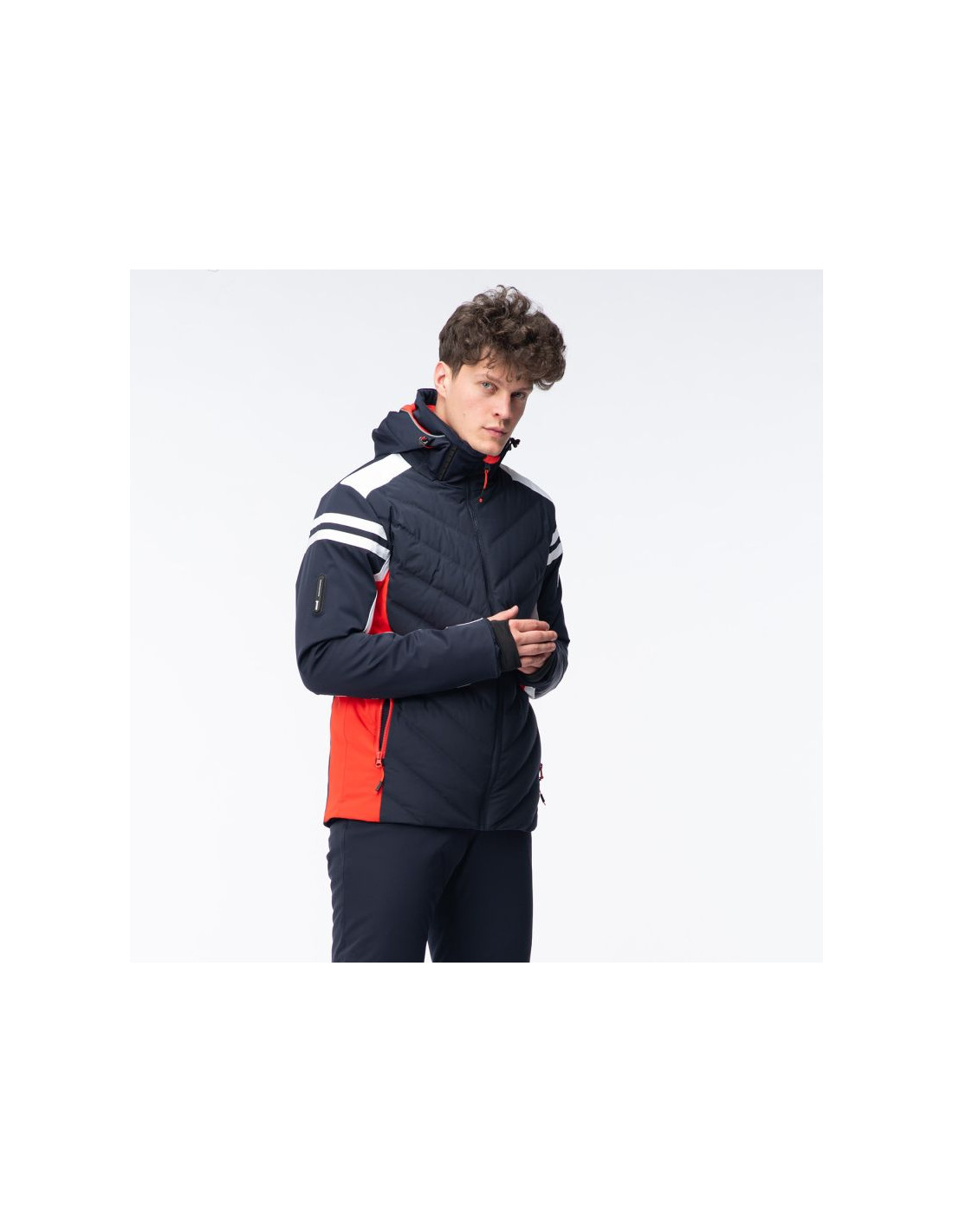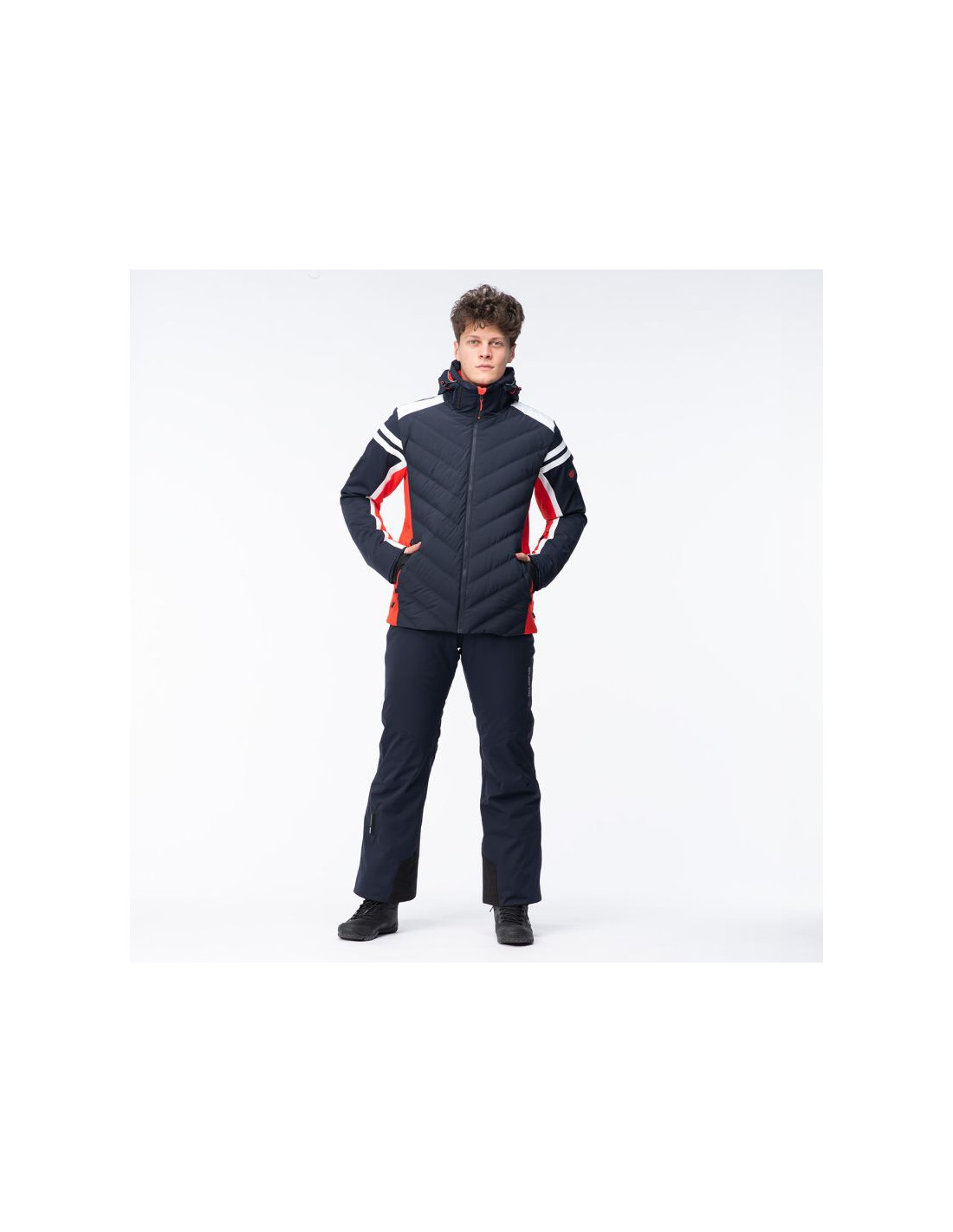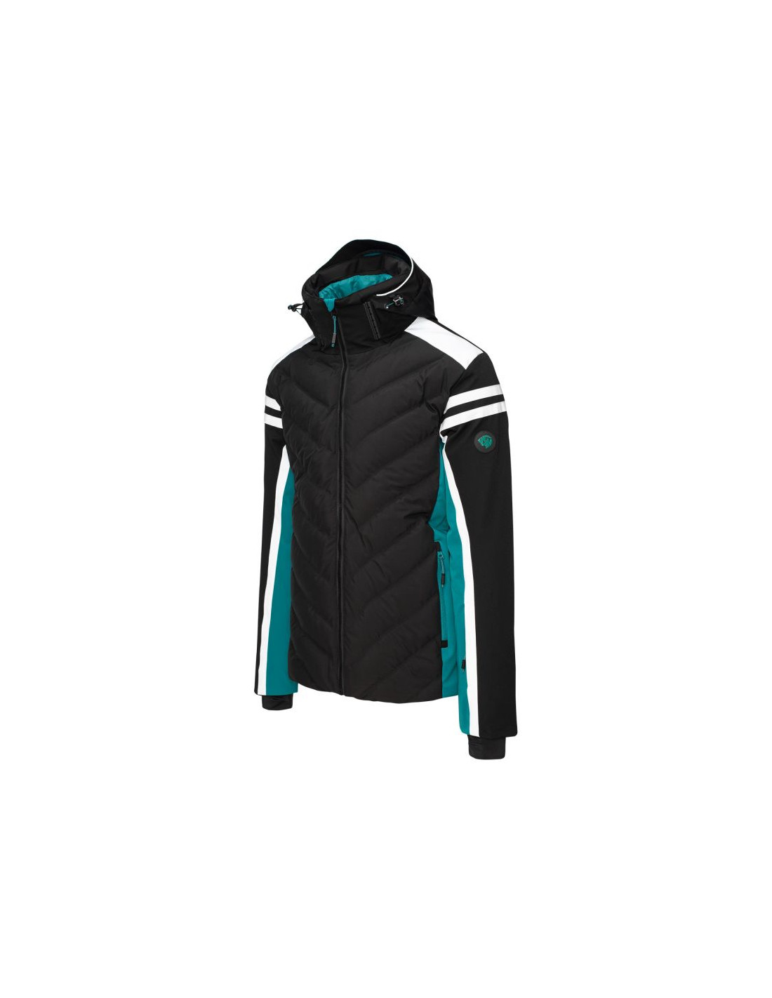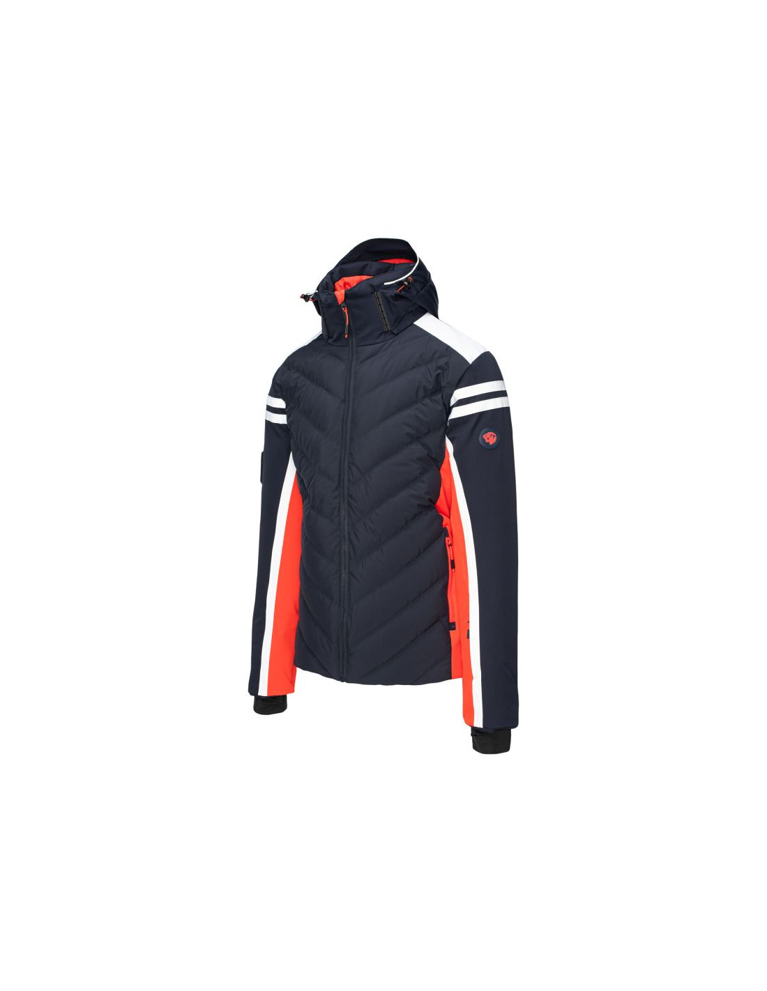 - Wypełnienie: przód korpusu 80% puch, 20% pierze, 45 g/m², tylna część: 100% poliester, 120 g/m², kaptur: 100% poliester, 40 g/m²