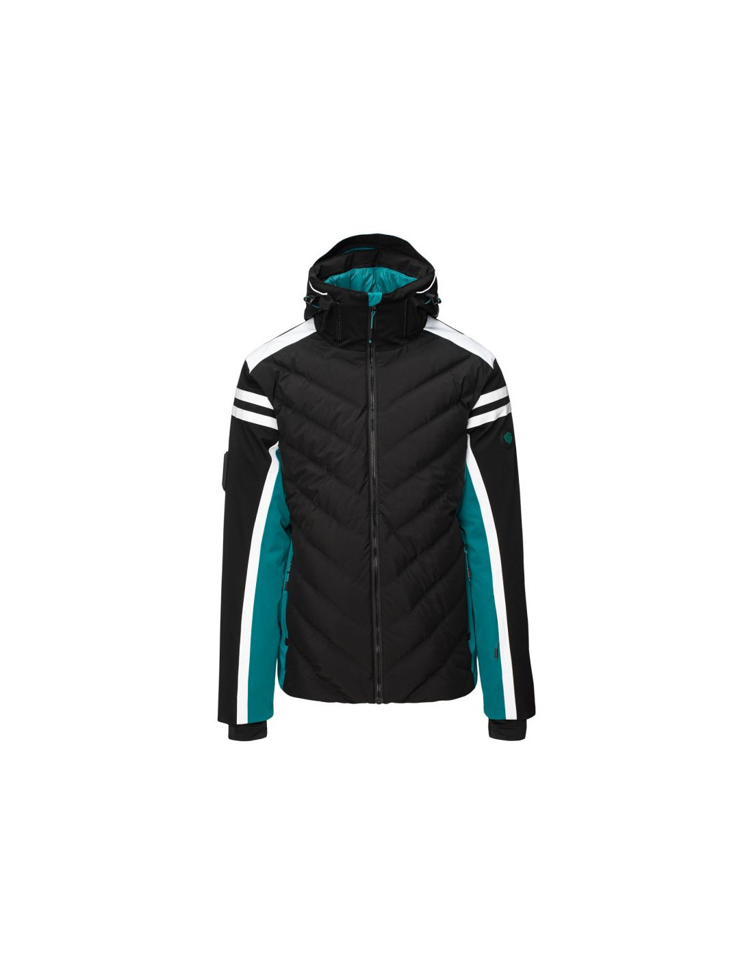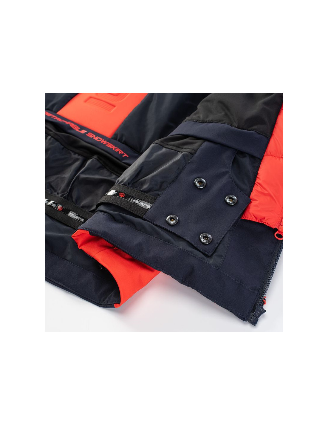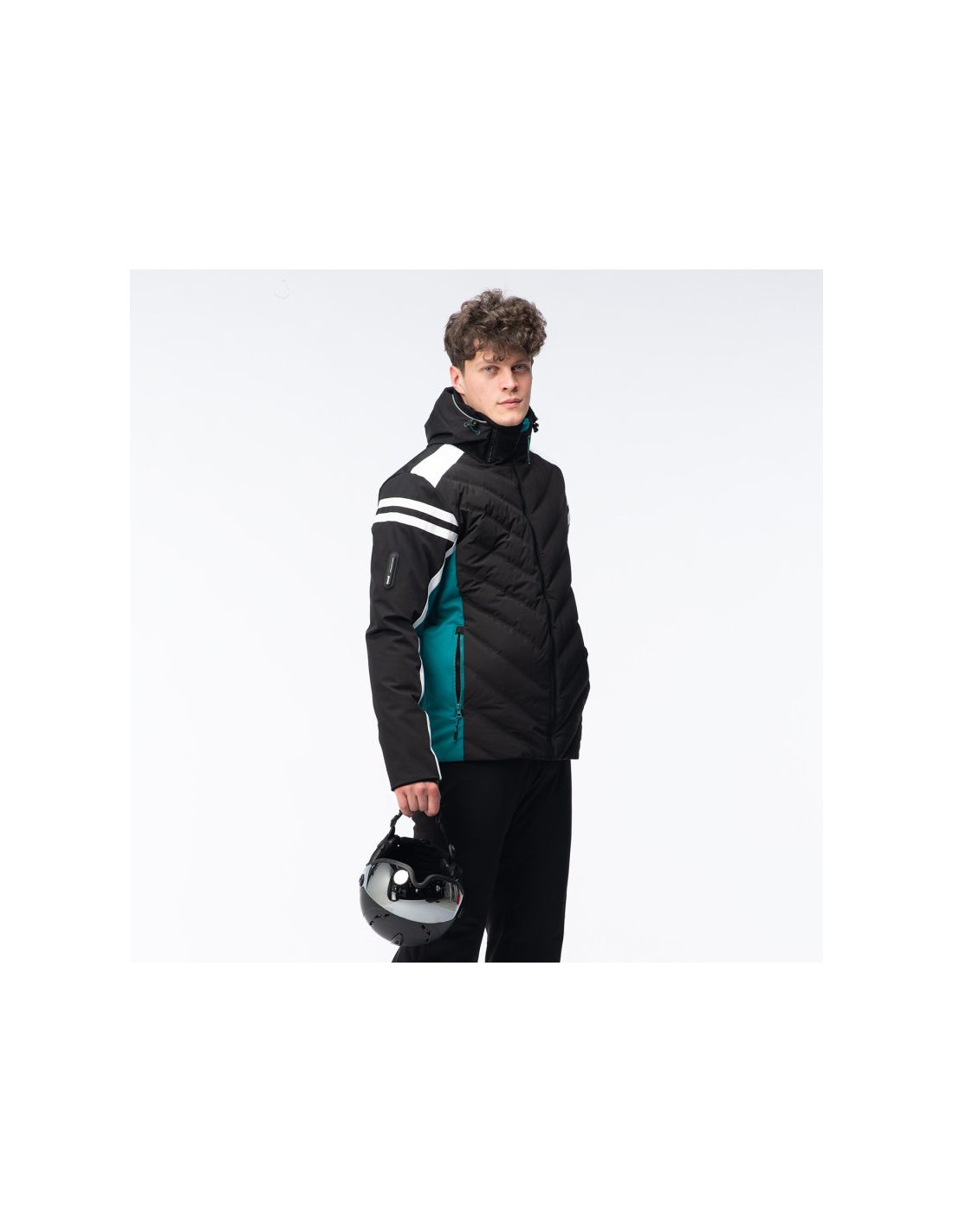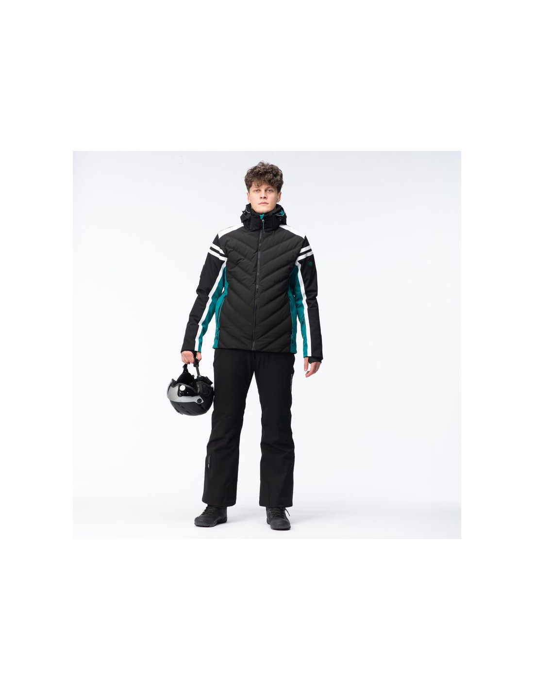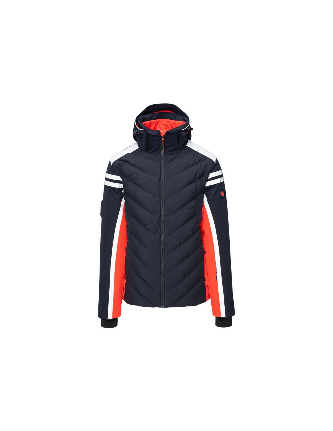 - Wypełnienie: przód korpusu 80% puch, 20% pierze, 45 g/m², tylna część: 100% poliester, 120 g/m², kaptur: 100% poliester, 40 g/m²