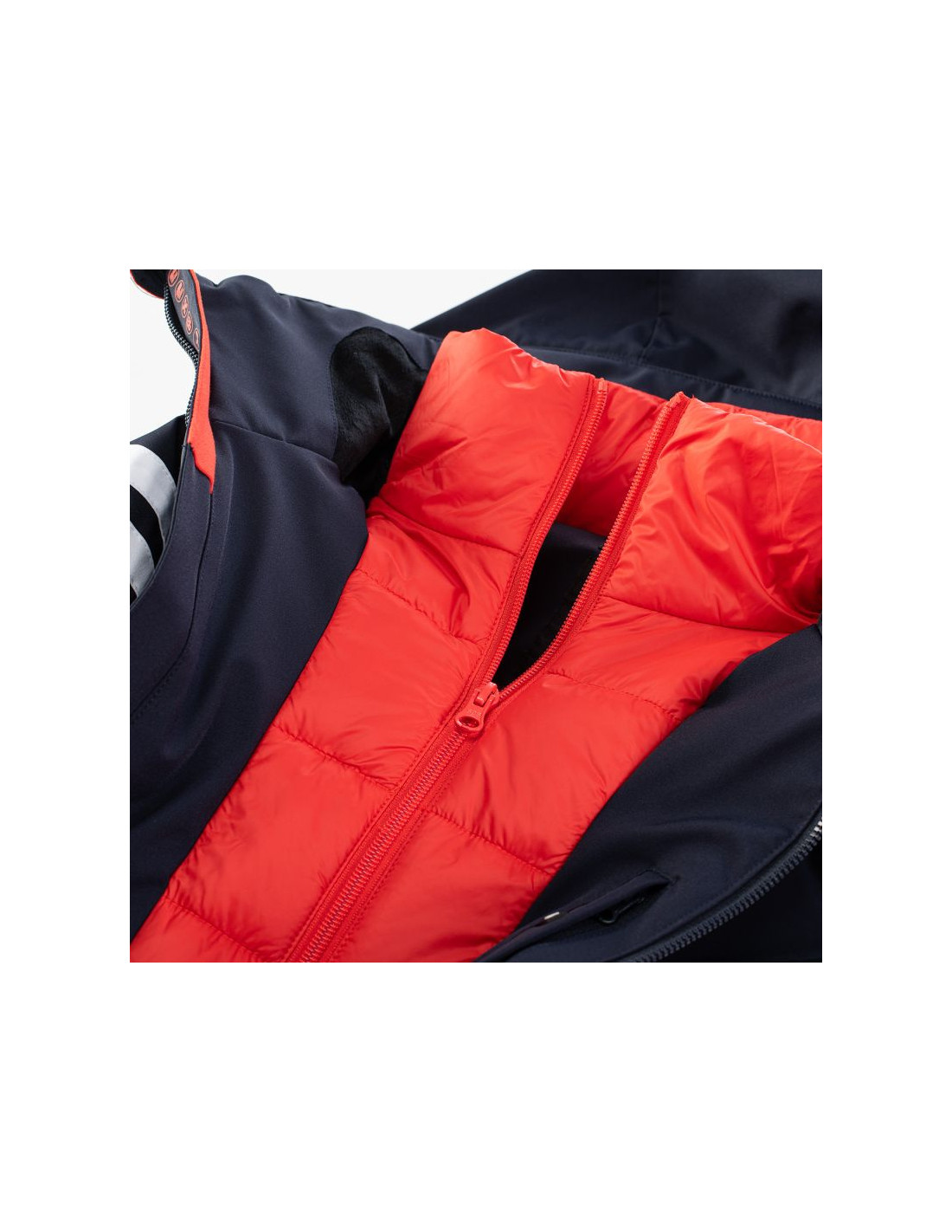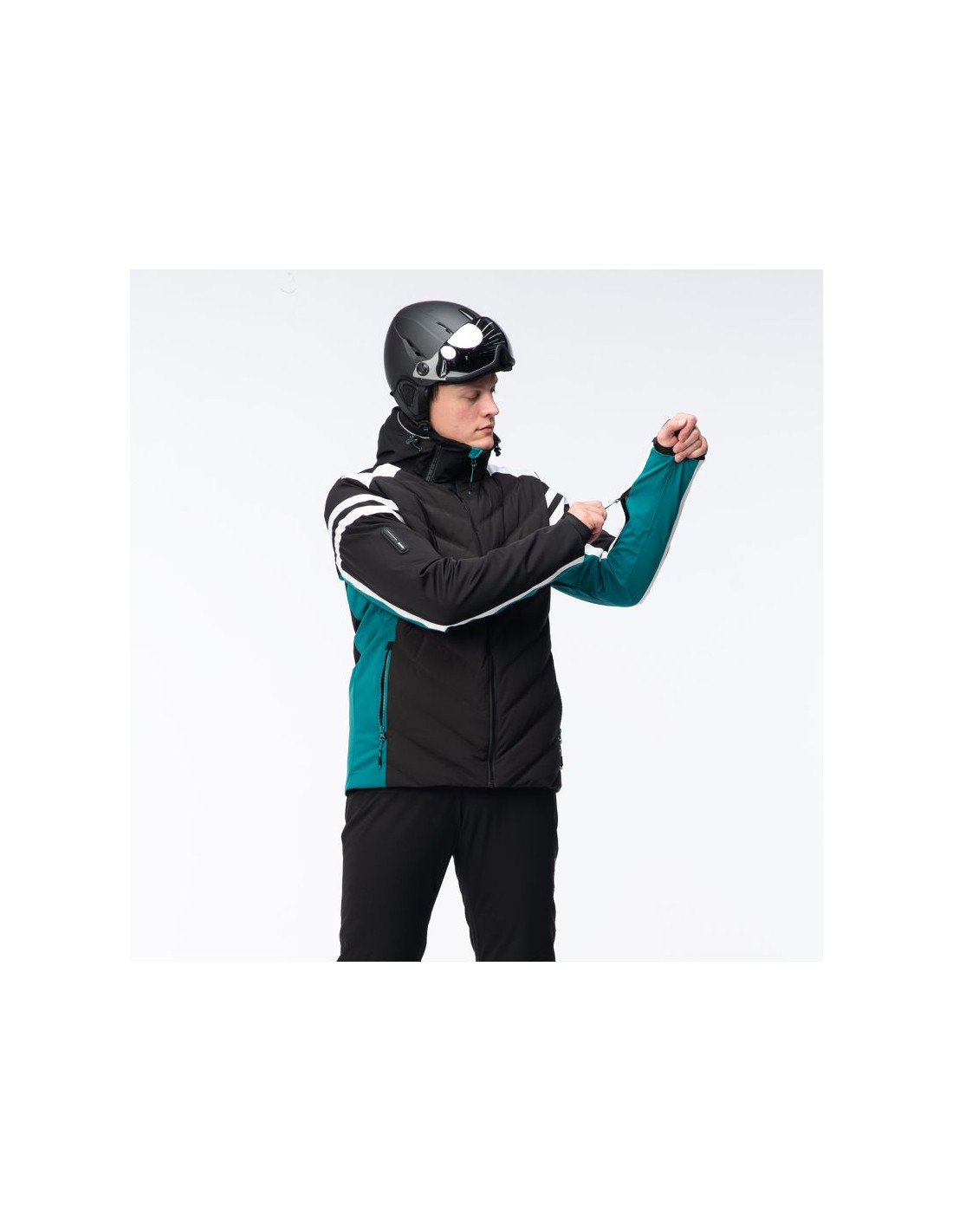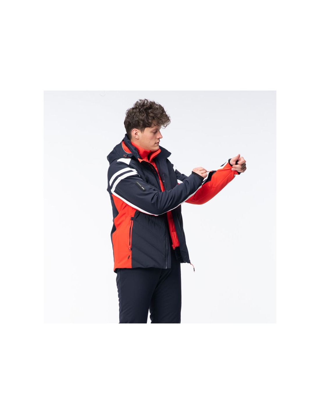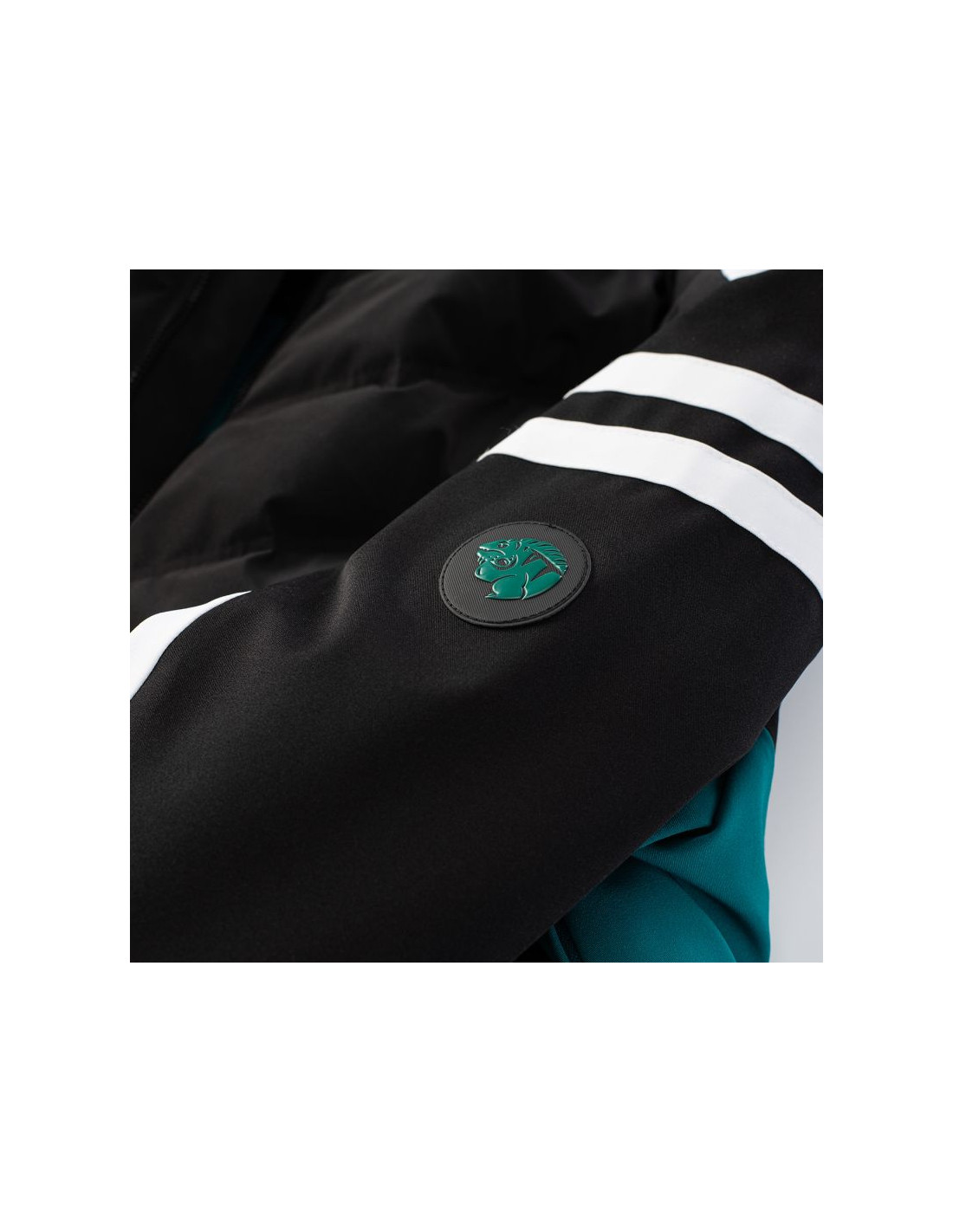 - Wypełnienie: przód korpusu 80% puch, 20% pierze, 45 g/m², tylna część: 100% poliester, 120 g/m², kaptur: 100% poliester, 40 g/m²