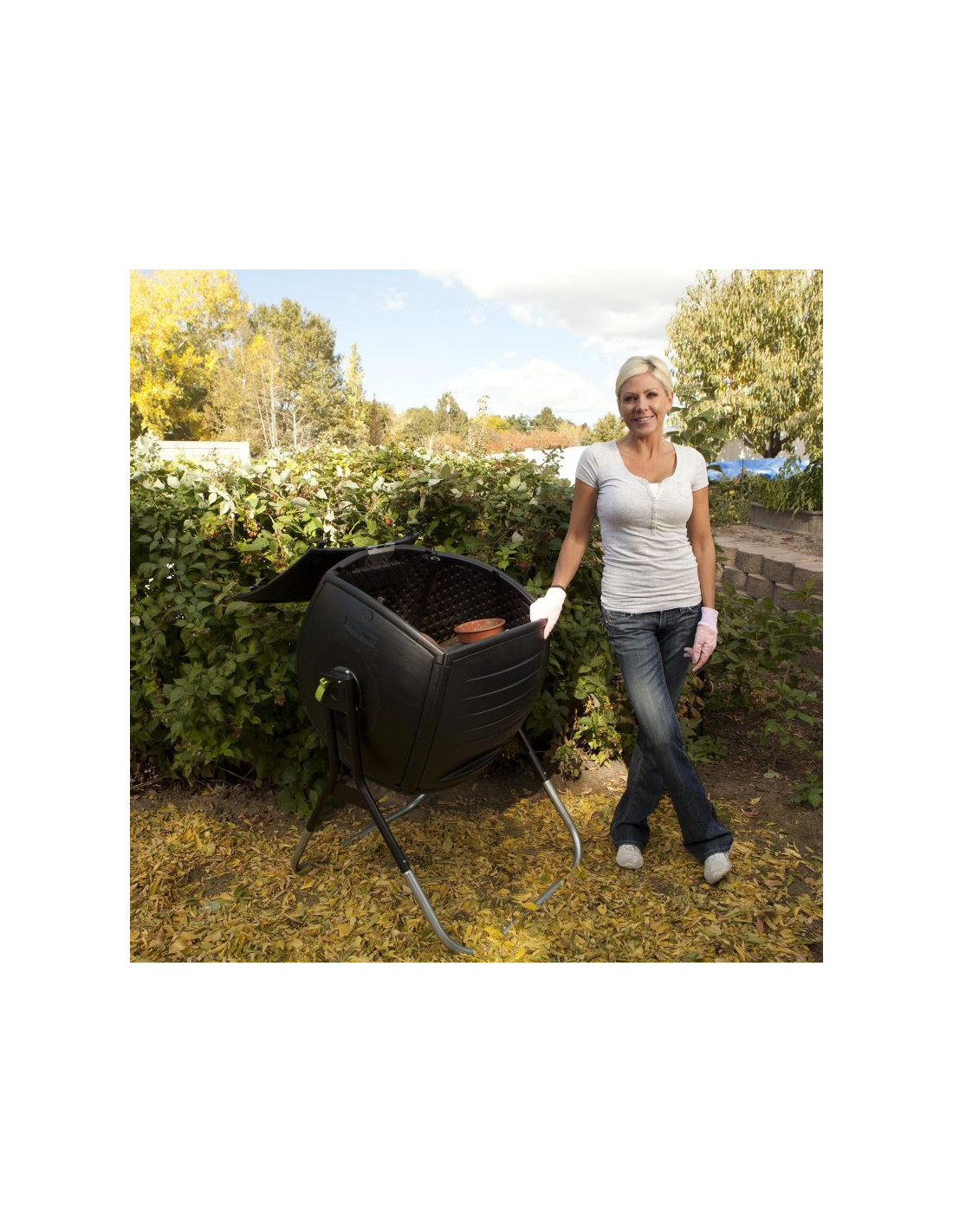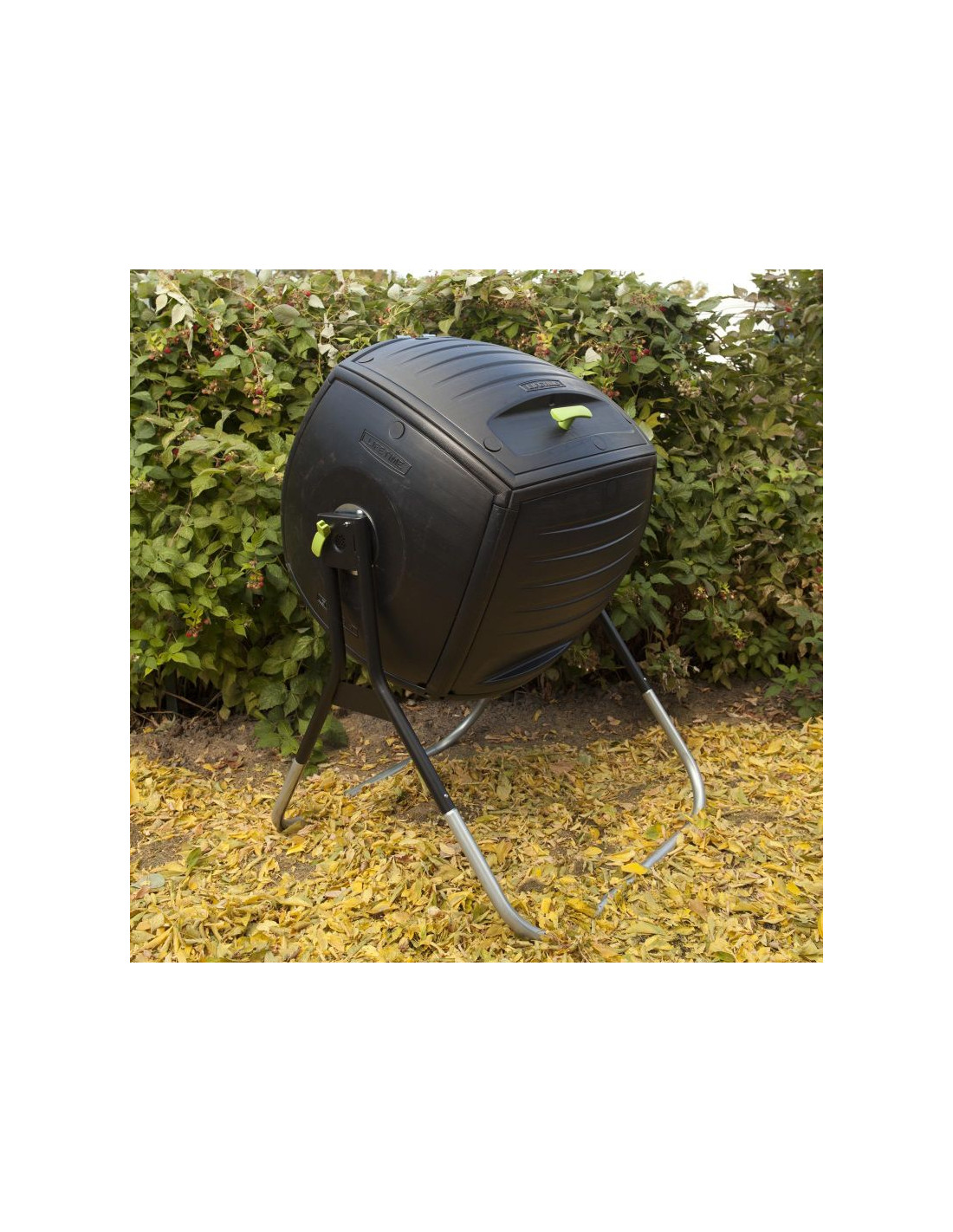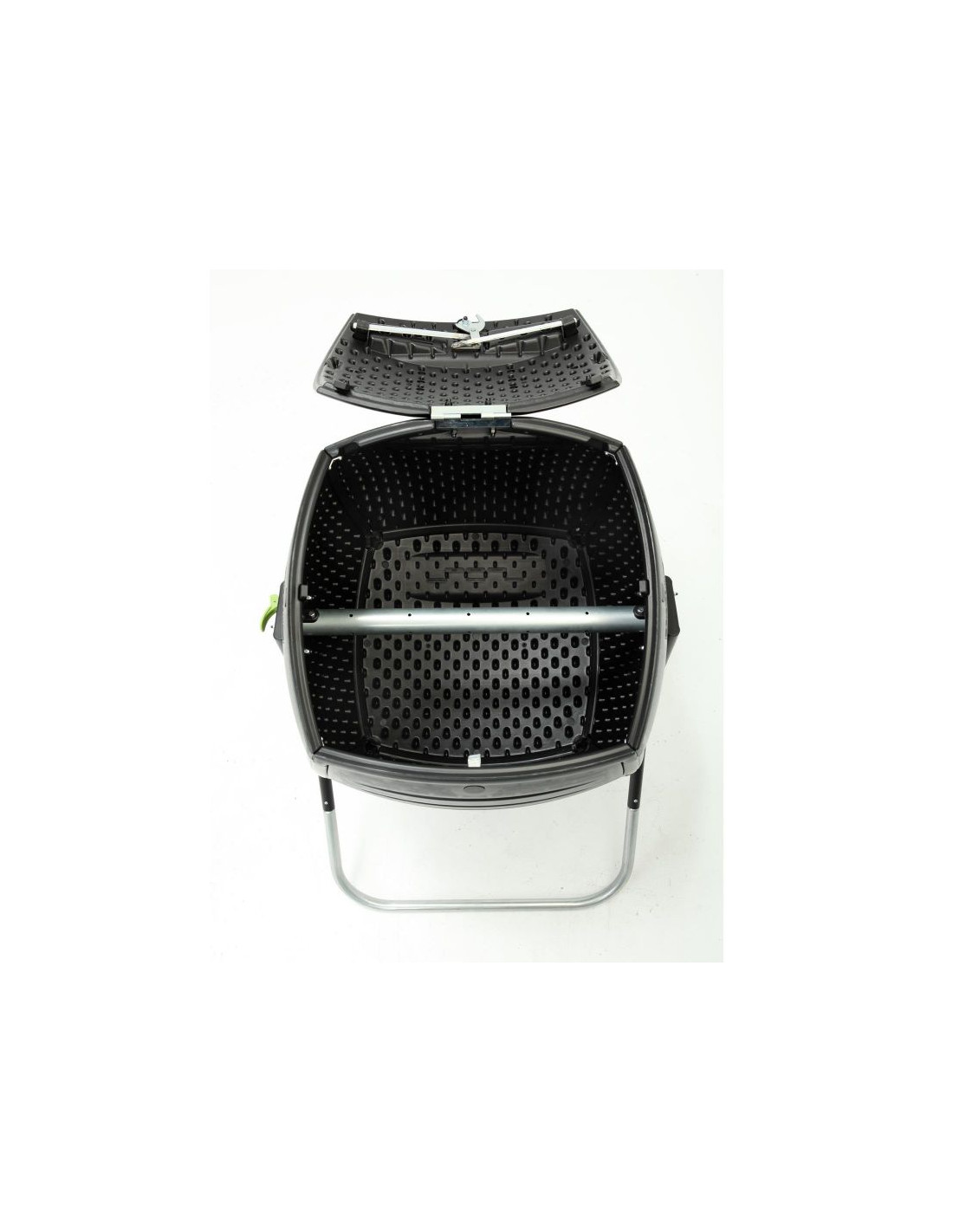 Wykonany jest z wysokiej gęstości wytrzymałego polietylenu, posiada powłokę chroniącą przed promieniami UV oraz czarne panele do wchłaniania i zatrzymywania ciepła. Dla większej wygody, posiada bardzo dużą pokrywę, którą można zdjąć oraz sprężynowy trzpień, który blokuje obrót kompostownika podczas napełniania. Przeznaczony dla odpadów organicznych. Rezultatem stosowania jest użyteczna i niedroga organiczna odżywka gleby i nawóz.