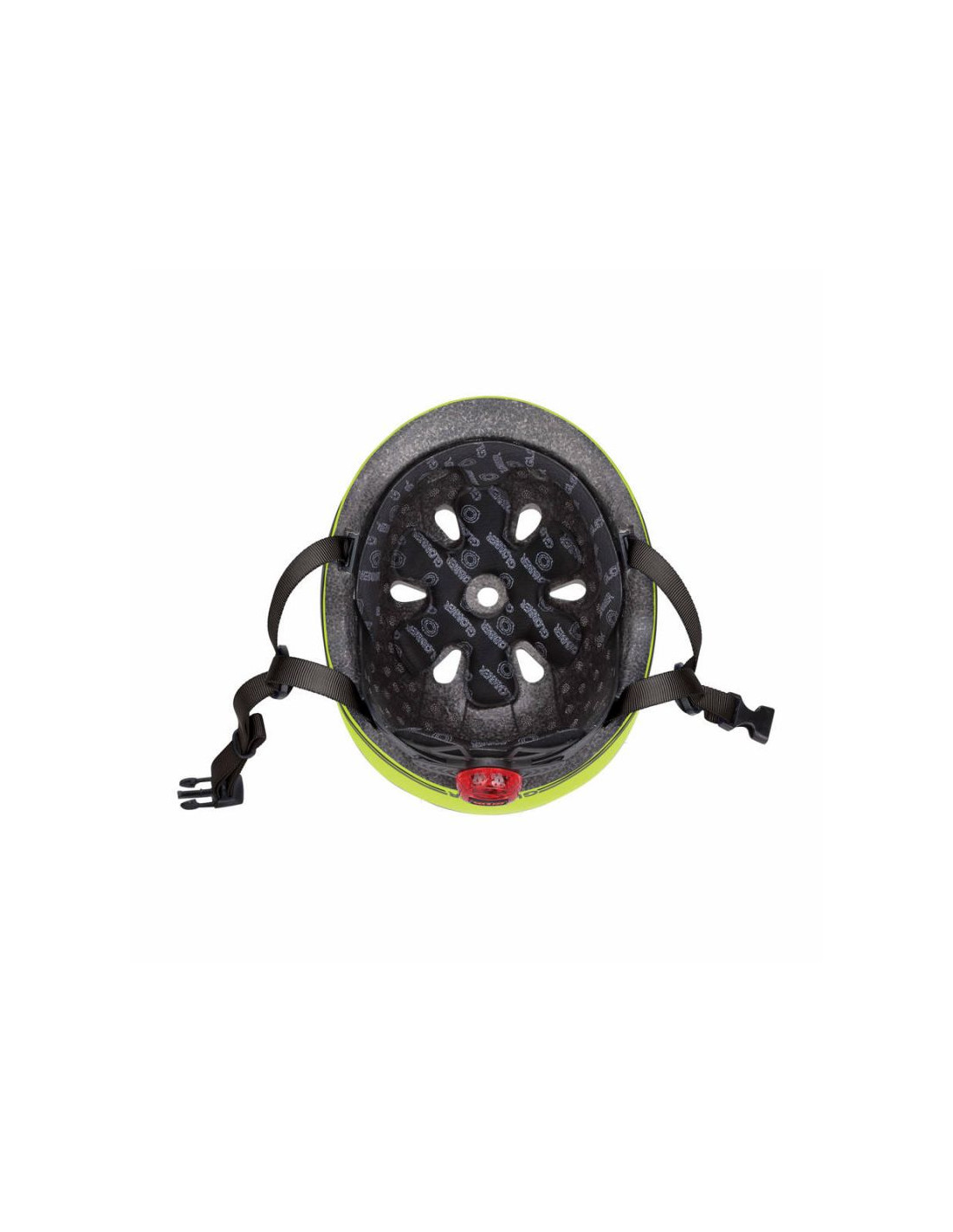 • Nasze kaski dla maluchów mają tylną lampkę (6 diod LED) zasilaną bateryjnie, która miga w 3 różnych trybach, zapewniając dodatkową widoczność i bezpieczeństwo.