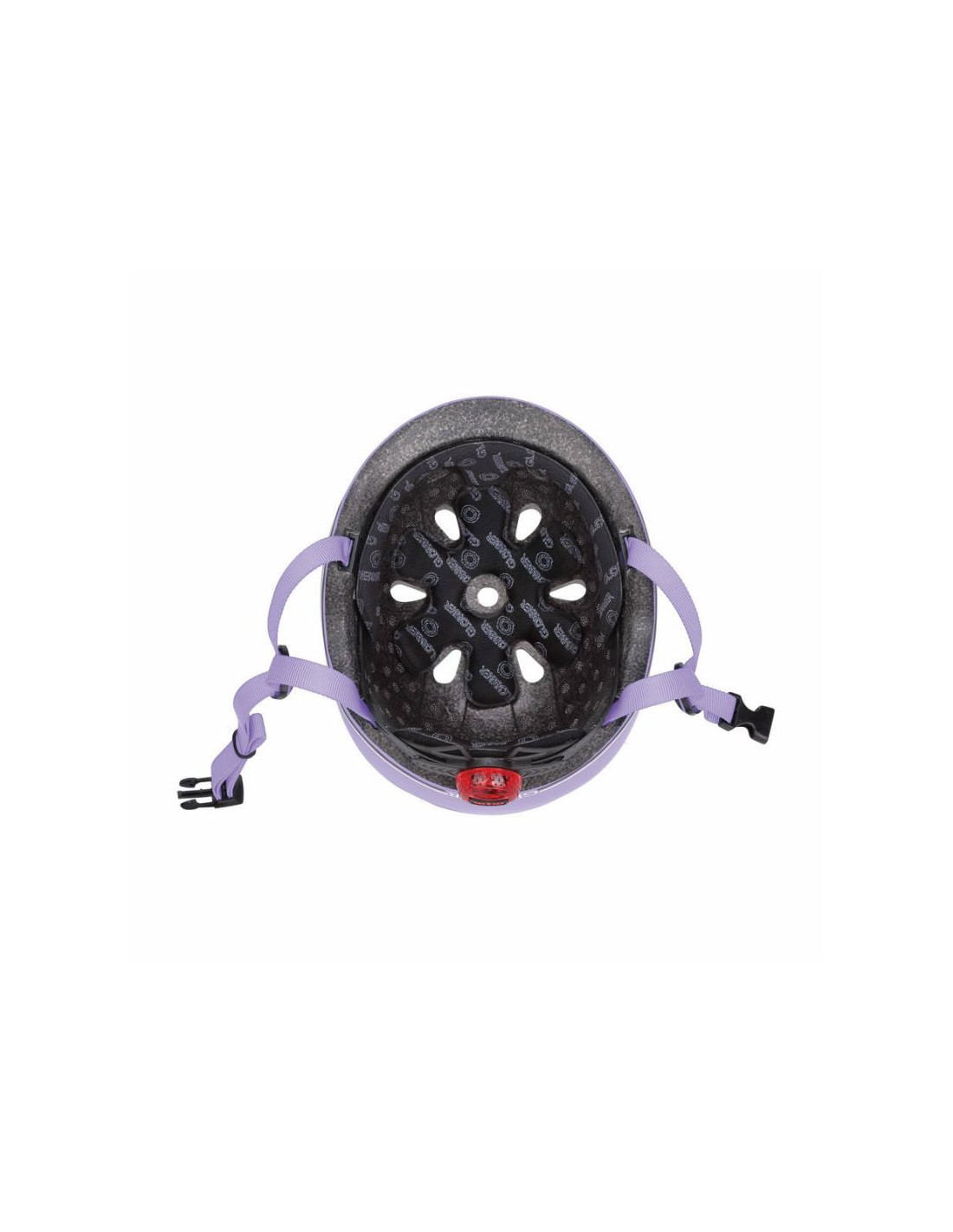 - Nasze kaski dla maluchów mają tylną lampkę (6 diod LED) zasilaną bateryjnie, która miga w 3 różnych trybach, zapewniając dodatkową widoczność i bezpieczeństwo.