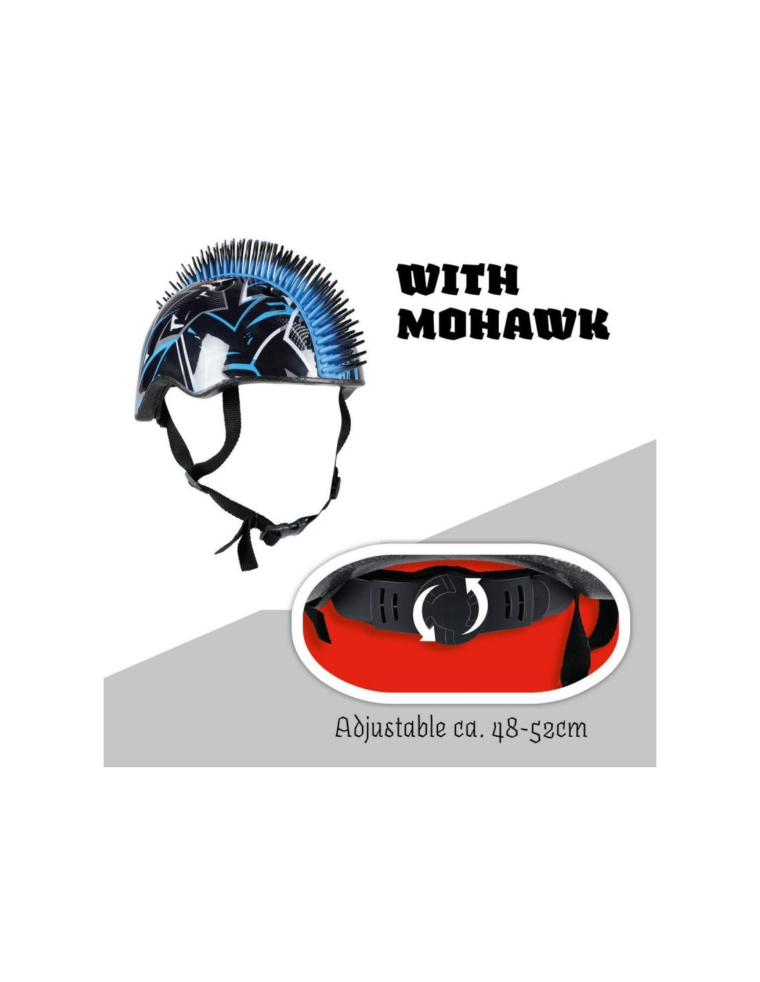 KASK ROWEROWY DZIECIĘCY REGULOWANY NO FEAR MOHAWK R.(48-52CM) BLACK/ BLUE łączy realną ochronę głowy z oryginalnym designem, który dzieci po prostu uwielbiają.