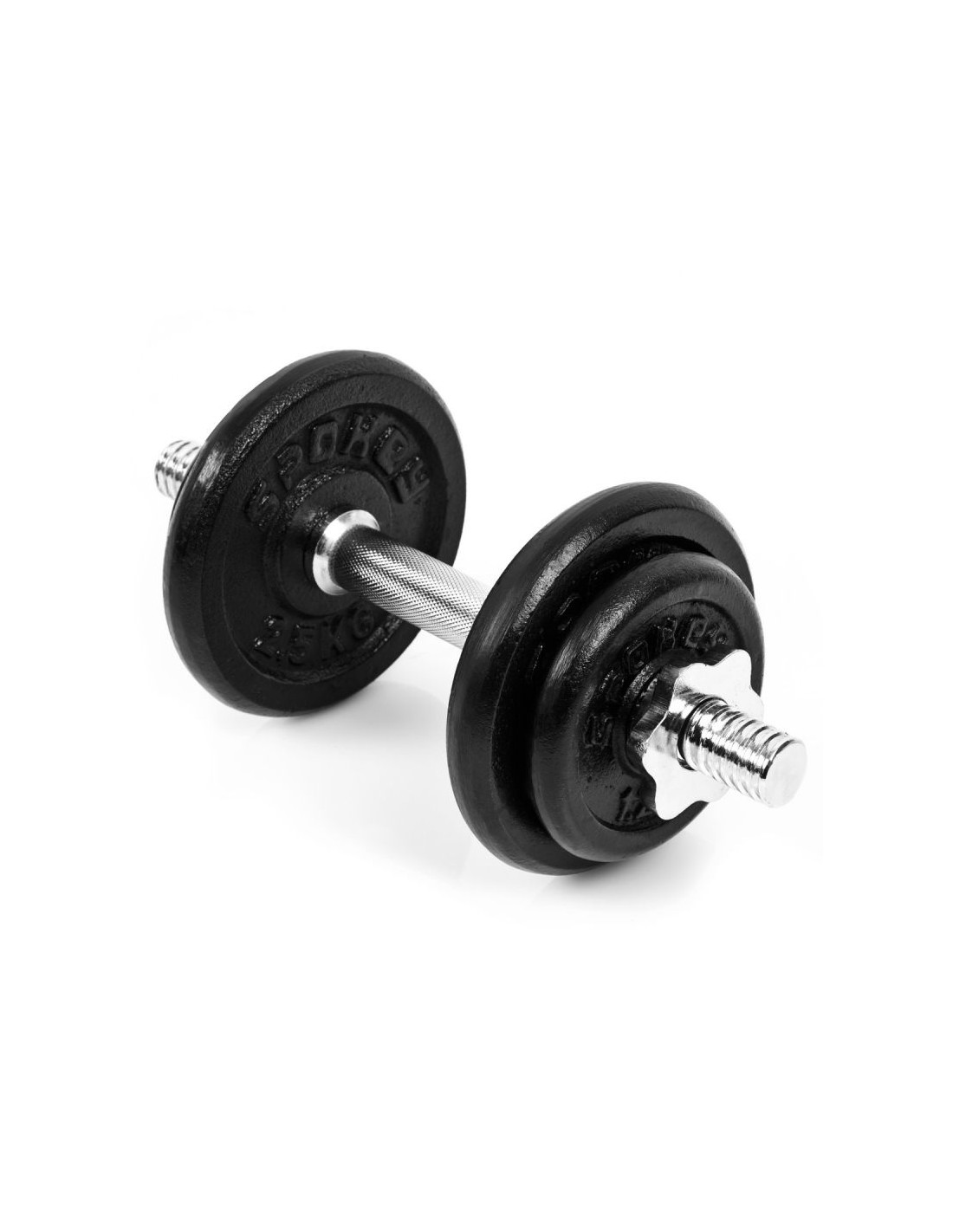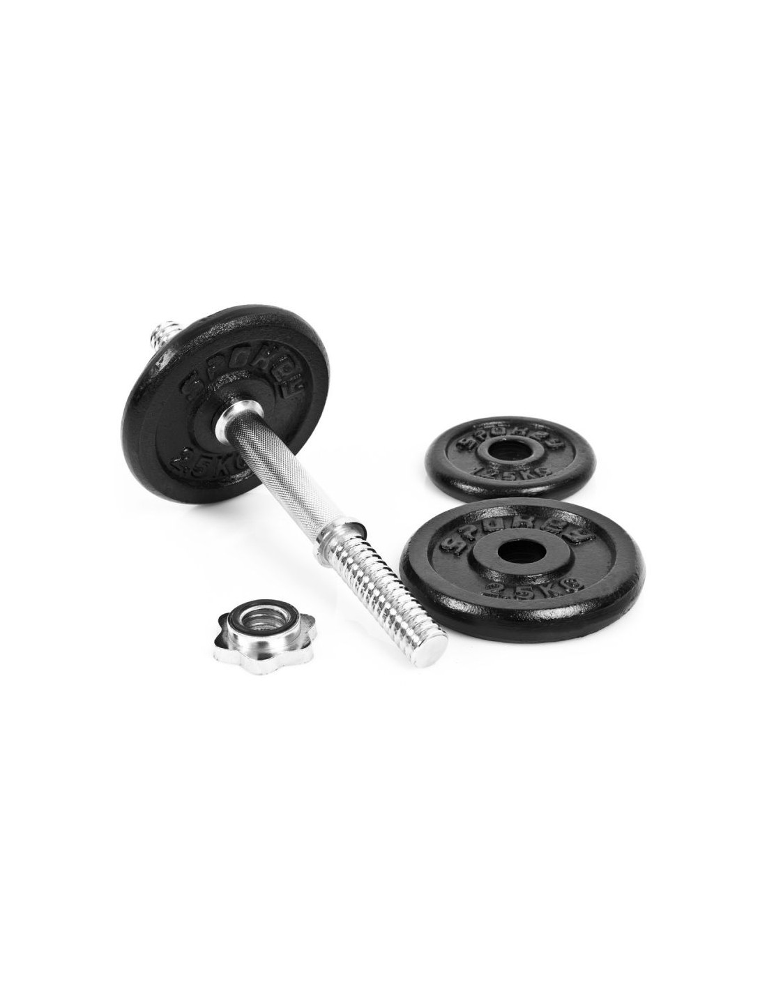 Spokey EGIR to jedna hantla, która składa się z 1 gryfu, 2 zacisków śrubowych oraz obciążeń: 2x 1,25 kg oraz 2x 2,5 kg. Możliwość dodawania i ściągania obciążeń pozwala na dostosowanie wagi hantli odpowiednio do założonych celów treningowych. Obciążenia żeliwne zostały wykonane z najwyższą dbałością. Posiadają klasyczny wygląd, dzięki czemu wpasują się w każde wnętrze i najrozmaitsze domowe siłownie.