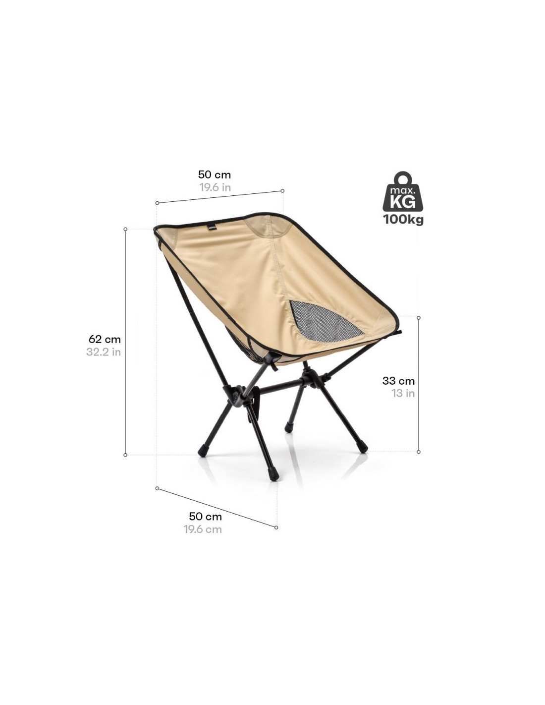 - Siedzisko krzesła wykonane jest z mocnej tkaniny Oxford 600D, która posiada właściwości wodoodporne, umożliwiając korzystanie z krzesła niezależnie od warunków atmosferycznych. Dodatkowo, stelaż pokryto powłoką proszkową, co czyni go odpornym na promienie UV i korozję. Przemyślane umieszczenie siatki po bokach siedziska gwarantuje optymalną wentylację podczas upałów.