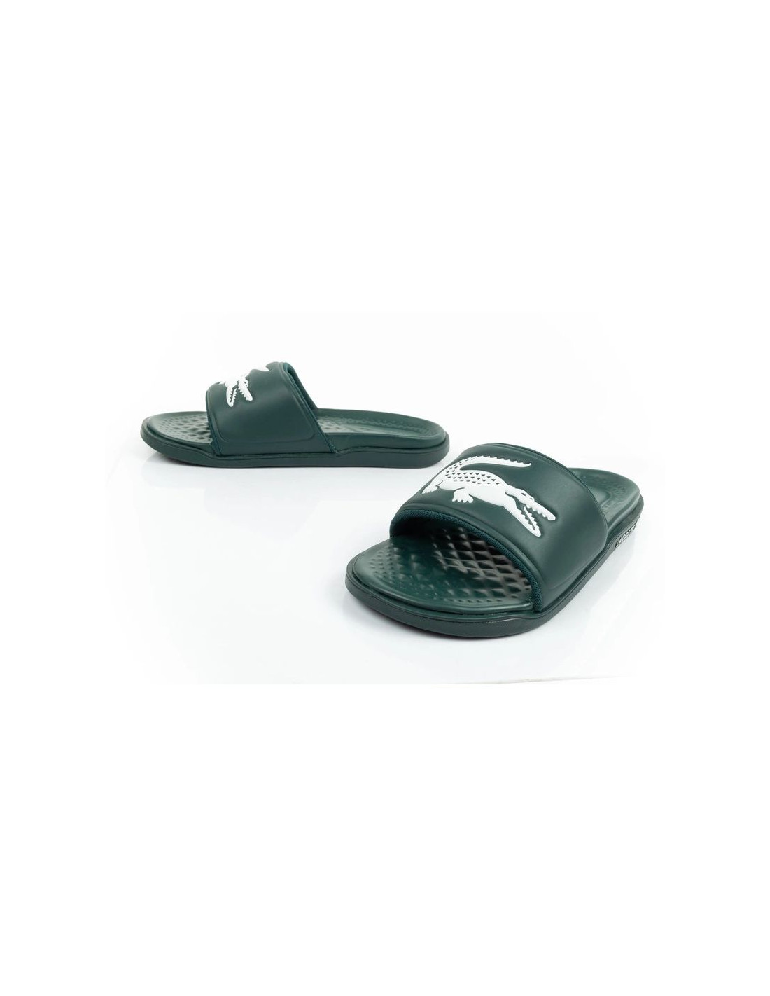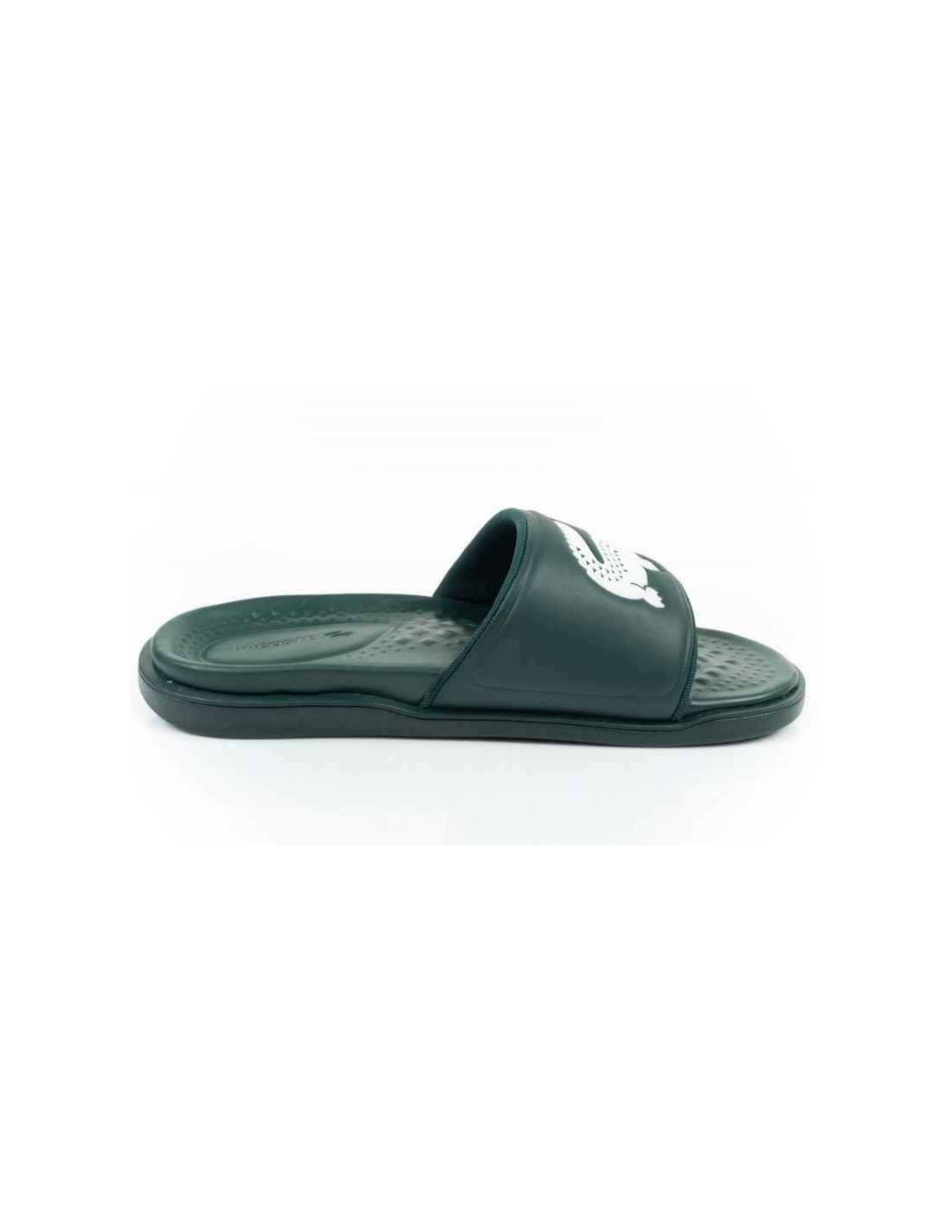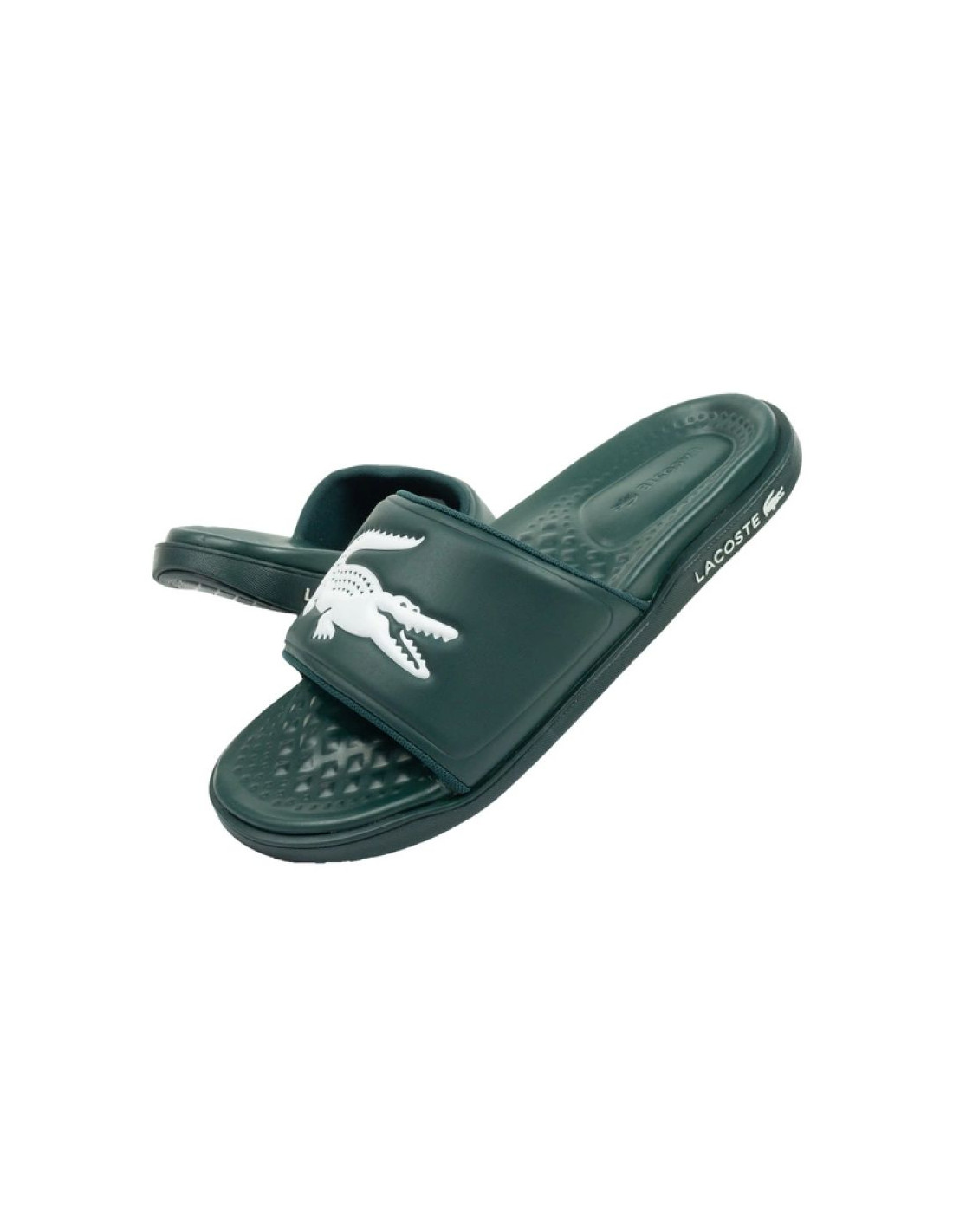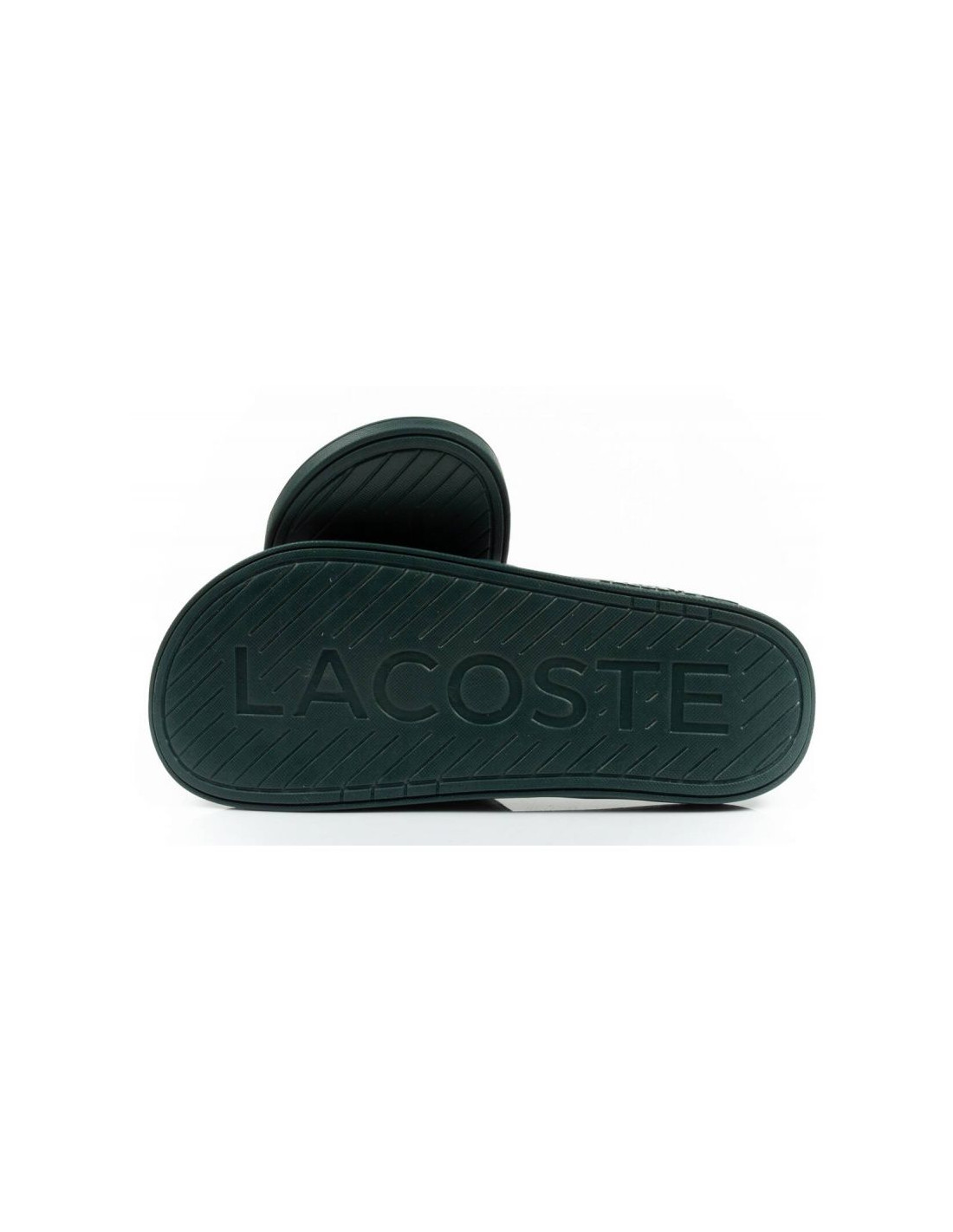 - Męskie klapki marki Lacoste.