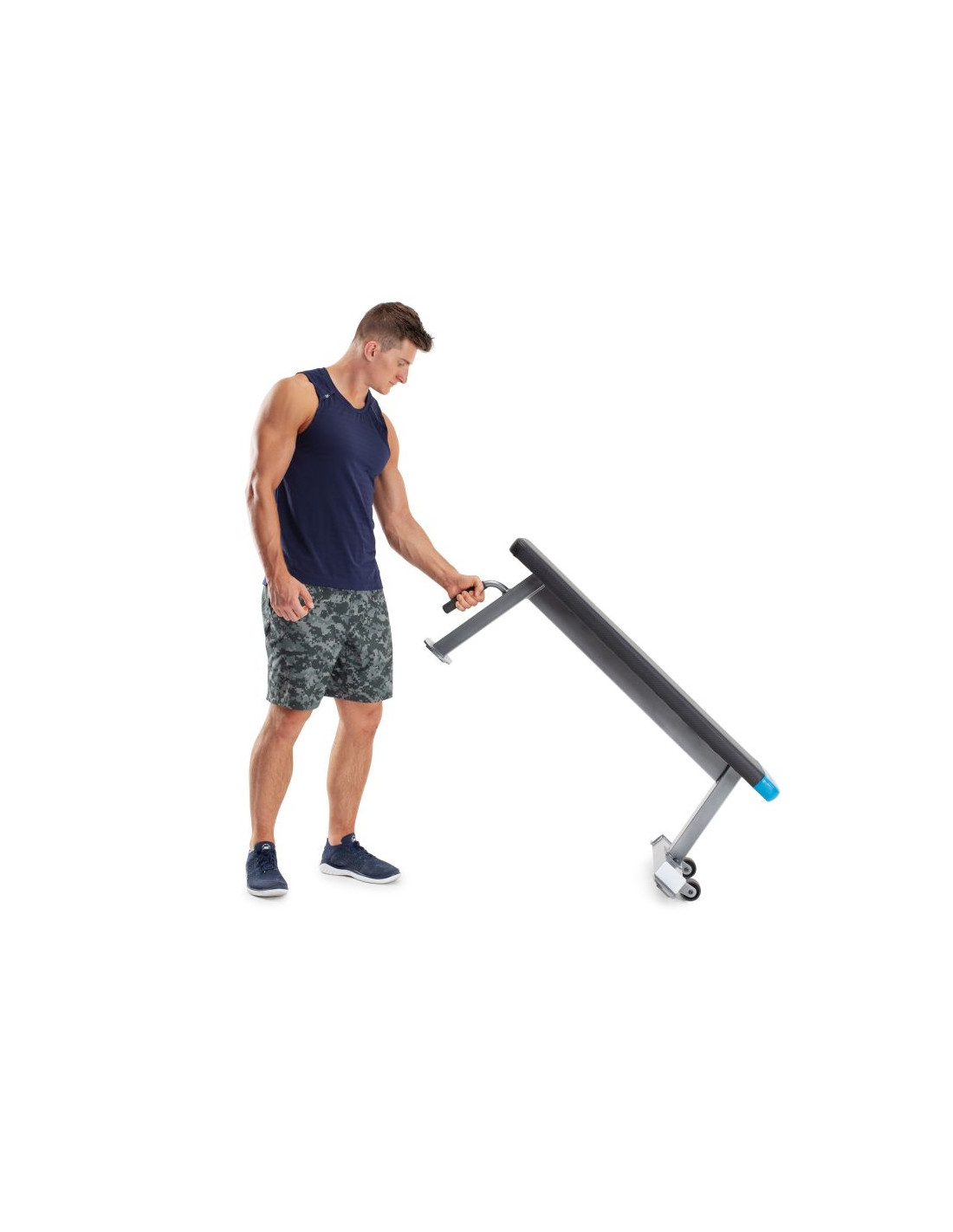 - Ławka pokryta jest pianką i estetycznym nowocześnie wyglądającym materiałem. Niebieskie wstawki z logo Proform sprawiają, że produkt jest jeszcze bardziej atrakcyjny. Uchwyt i kółka pozwolą Ci na szybkie i łatwe przemieszczanie ławki.