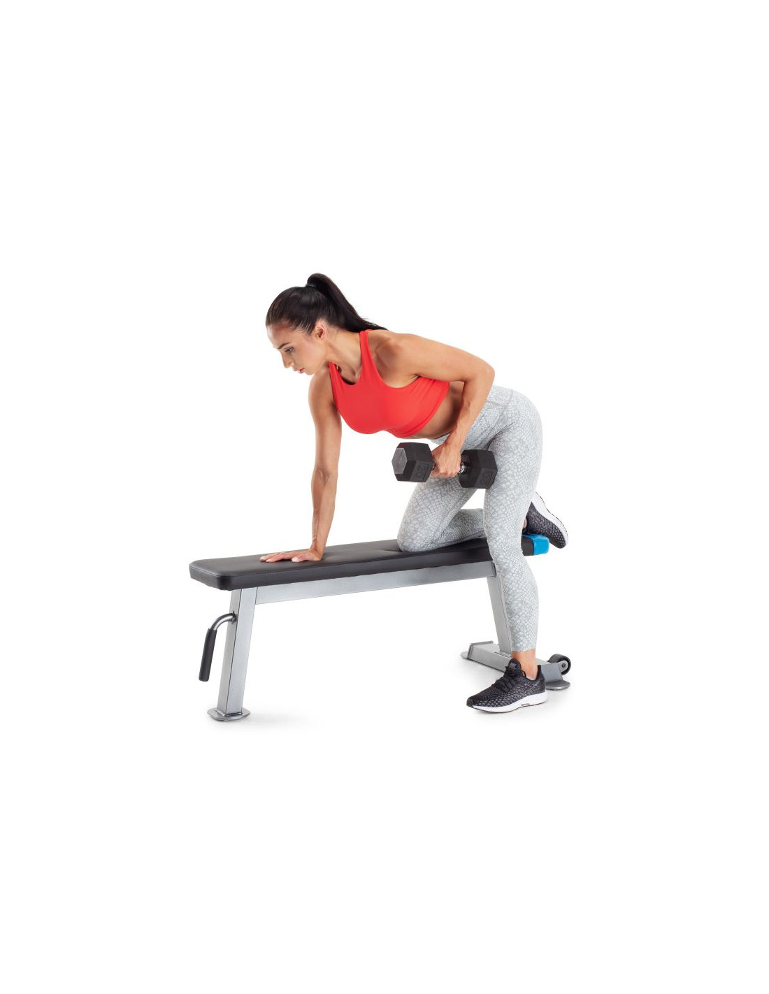 - Ławka w paczce jest już w 70% złożona. Pozostałe 30% błyskawicznie skręcisz u siebie w domu, wystarczy tylko pięć śrub i ławka będzie gotowa do użytku. W celu zabezpieczenia podłogi lub dywanu, ławkę możesz umieścić na macie. Dzięki temu unikniesz zarysowań na panelach i w pełni możesz cieszyć się treningiem. Pamiętaj, że ćwiczenia należy poprzedzić rozgrzewką, aby zmniejszyć ryzyko odniesienia kontuzji.