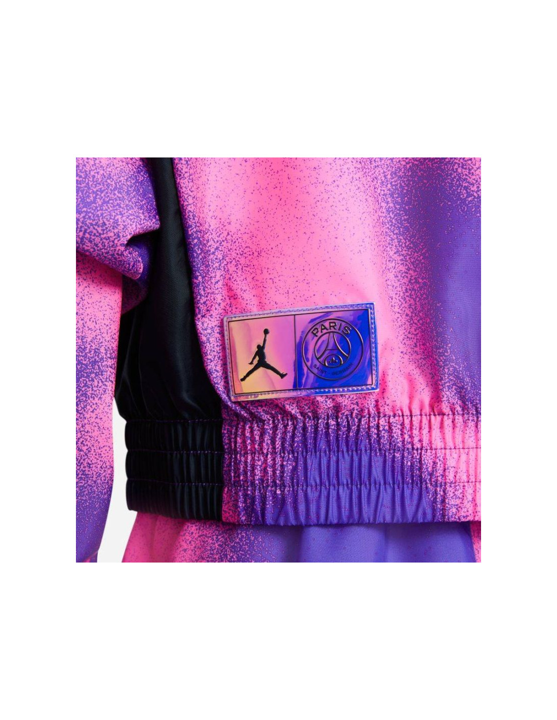Nadruk inspirowany jest czwartym strojem klubu piłki nożnej Paris Saint-Germain.