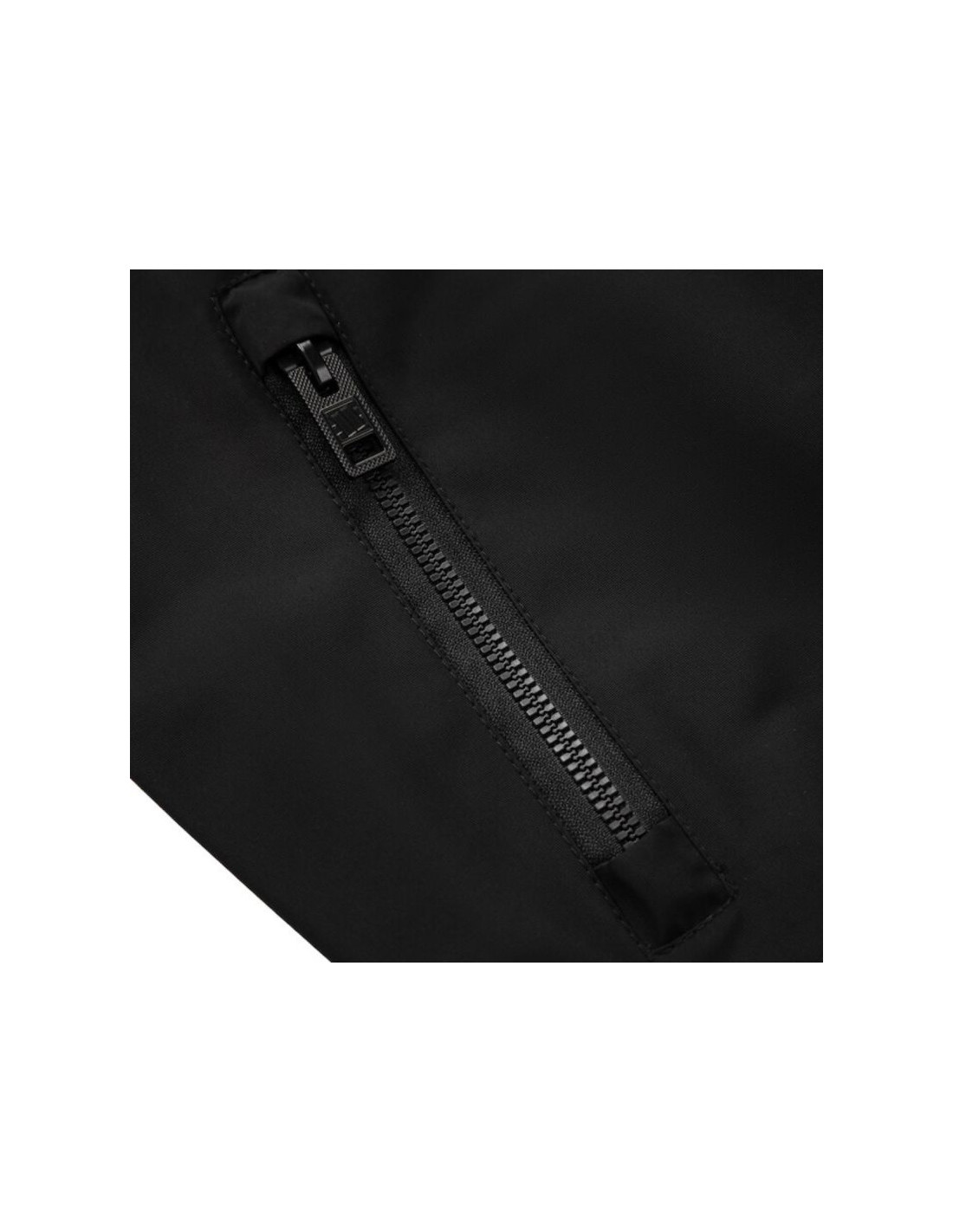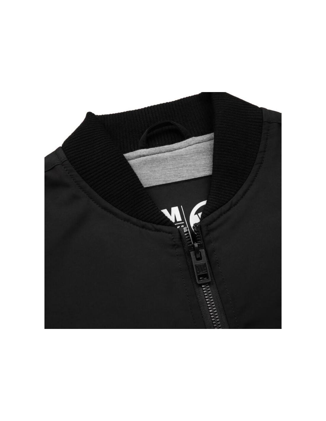 Model ten charakteryzuje się krótszym krojem typowym dla kurtek bomber oraz klasycznym dzianinowym kołnierzem typu stójka.