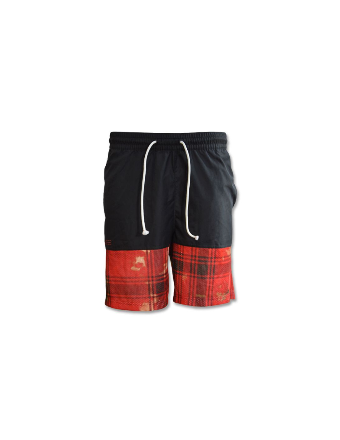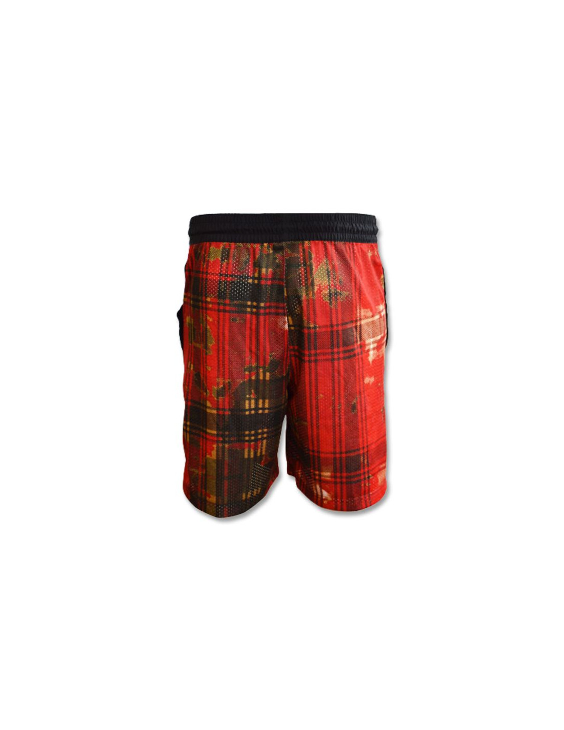 Markowe spodenki z kratą w kolorze czerwono-czarnym.