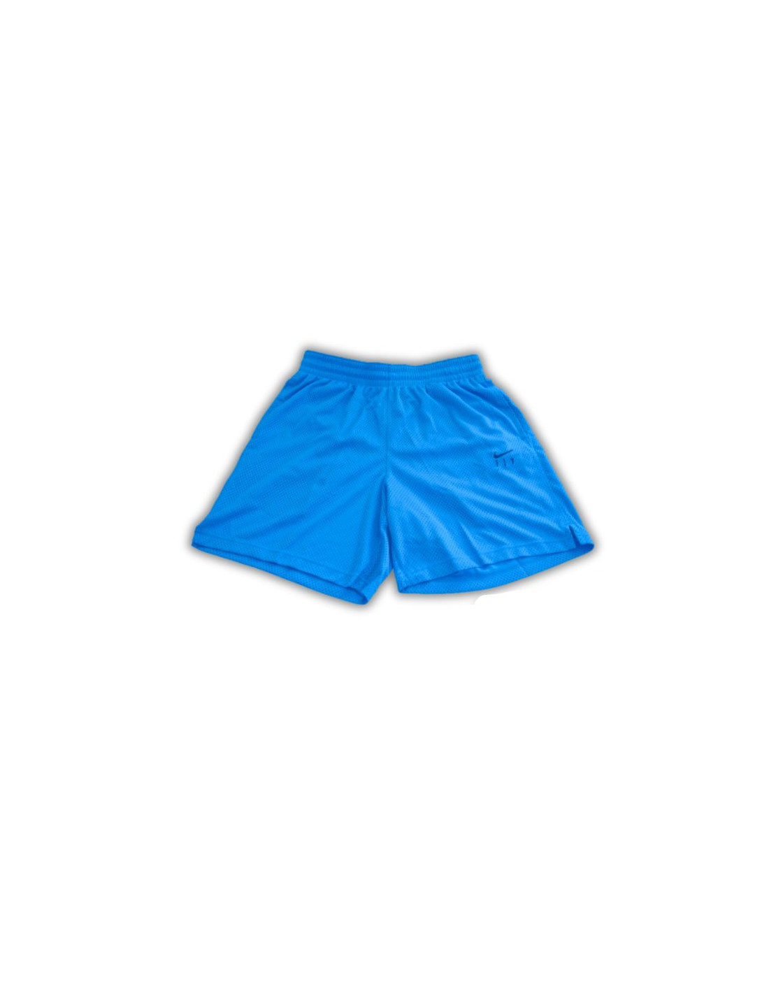 Produkt w kolorze niebieskim zdobiony szarymu sznurkami, za sprawą których można regulować rozmiar oraz logiem firmy Nike na lewej nogawce oraz z tyłu.