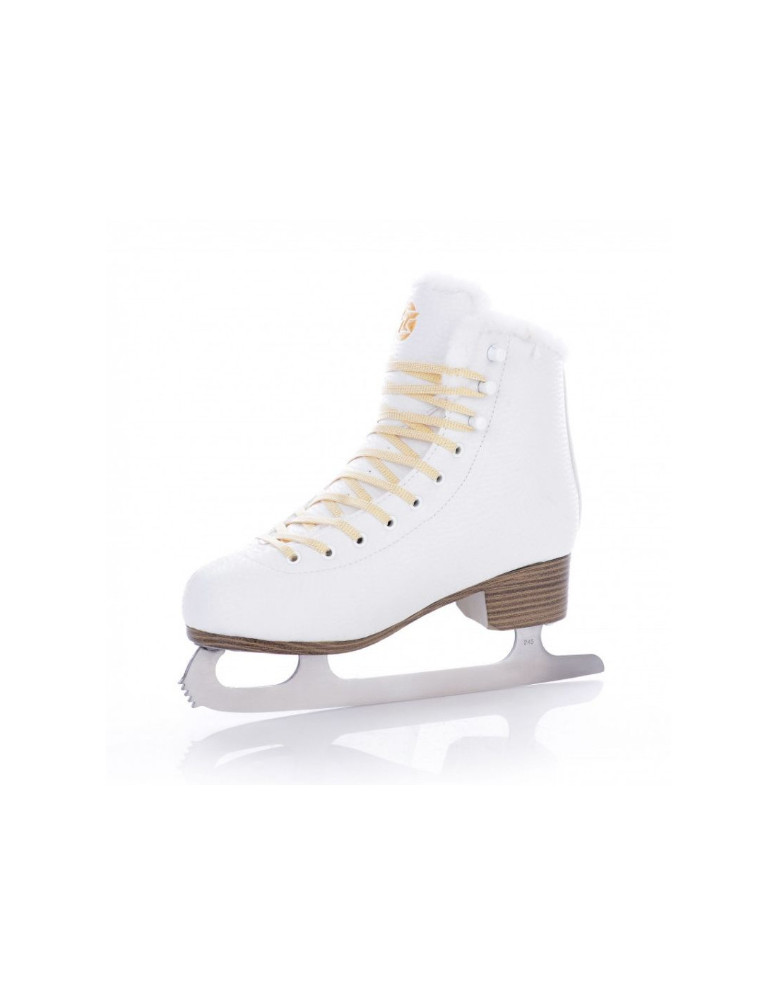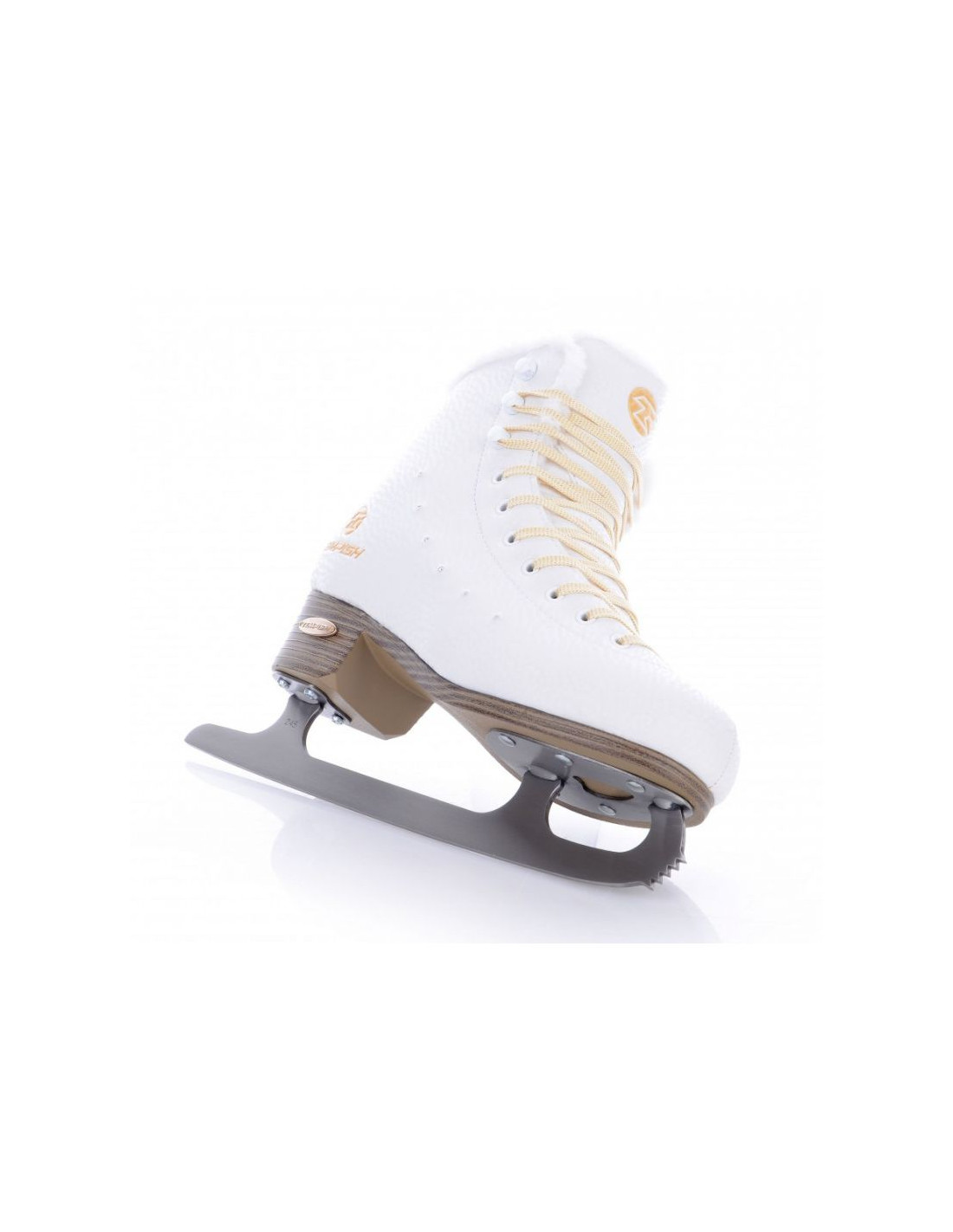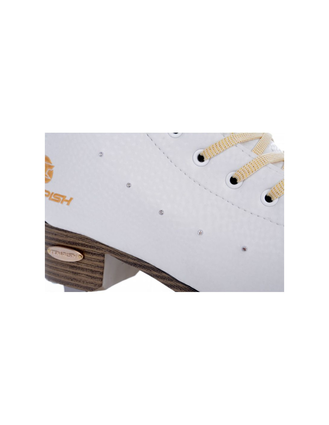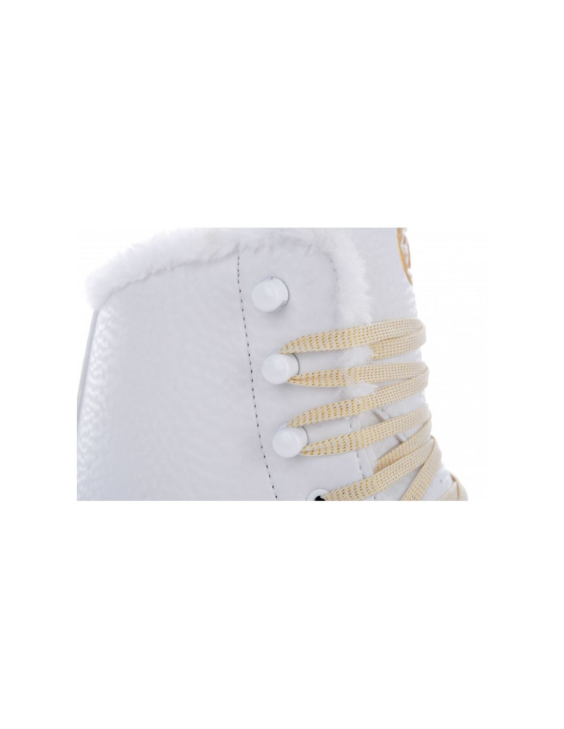 - Buty zostały wykonane z wysokiej jakości materiału syntetycznego na bazie poliuretanu z efektowną obróbką powierzchni 3D i sześcioma błyszczącymi kamieniami, które nadają łyżwom luksusowy wygląd.