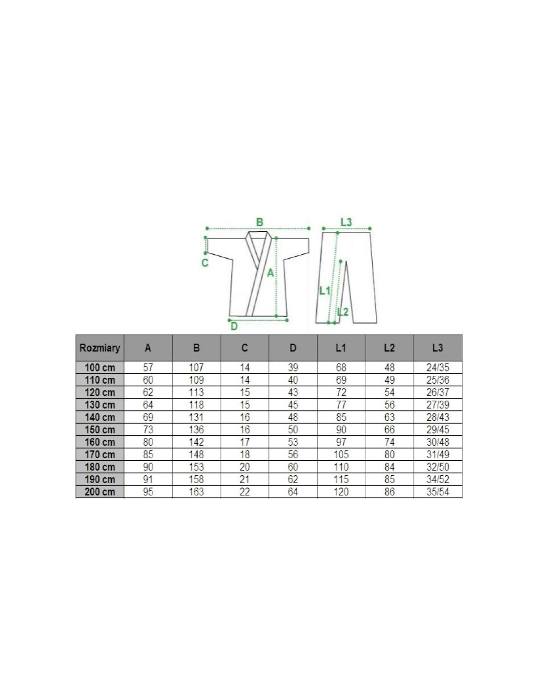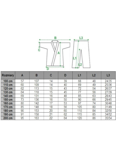Spodnie: luźne, ściągane w pasie gumką z dodatkowym sznurkiem, duży klin pozwala na większą swobodę ruchu i wygodę przy noszeniu suspensora
