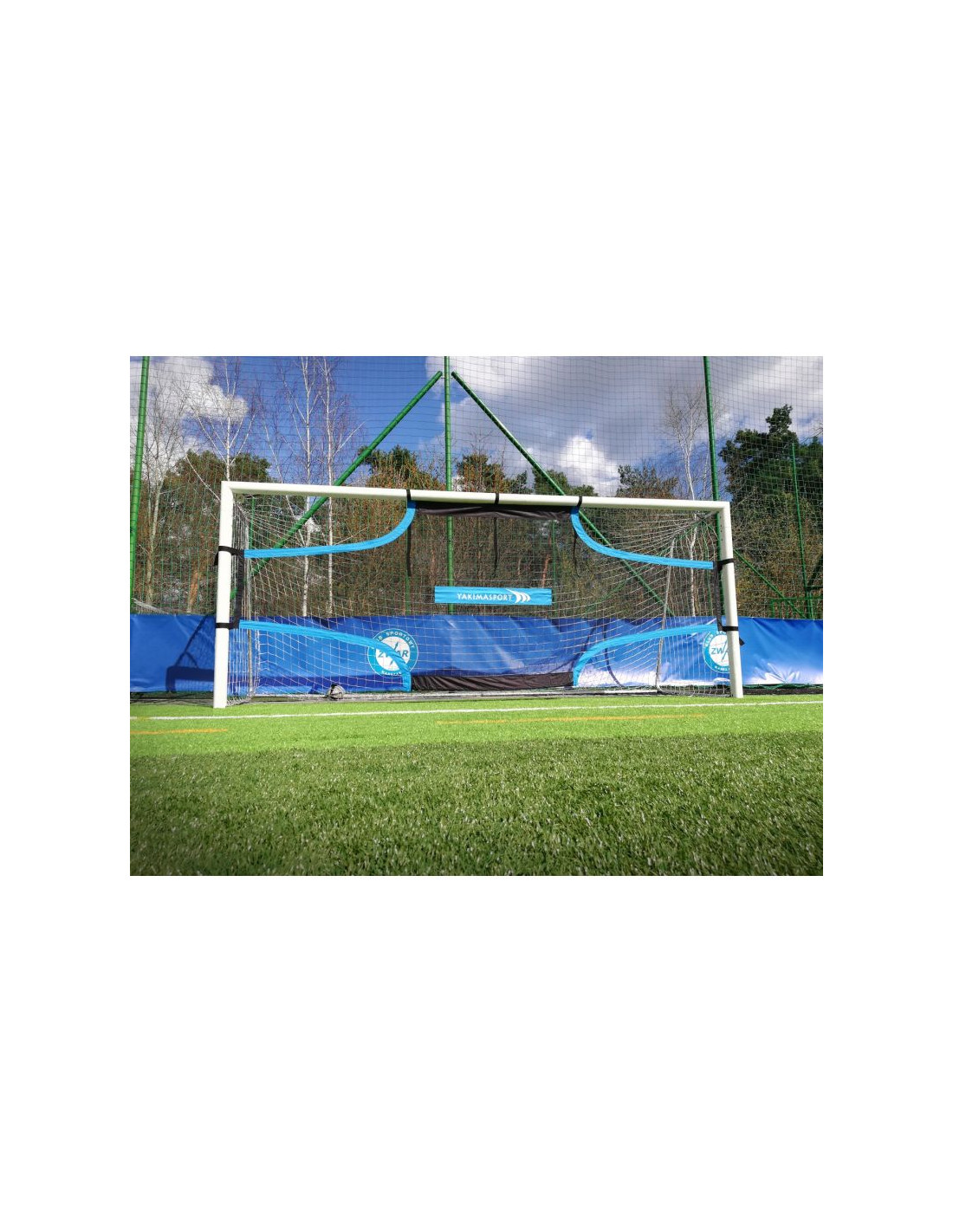 Mata do treningu celności strzałów- Mata celnościowa do bramek o wymiarach 500 x 200 cm.- Posiada cztery otwory na rogach bramki.- Mata montowana jest do bramki za pomocą gumowych obejm z klipsami plastikowych klamrkod: 100225