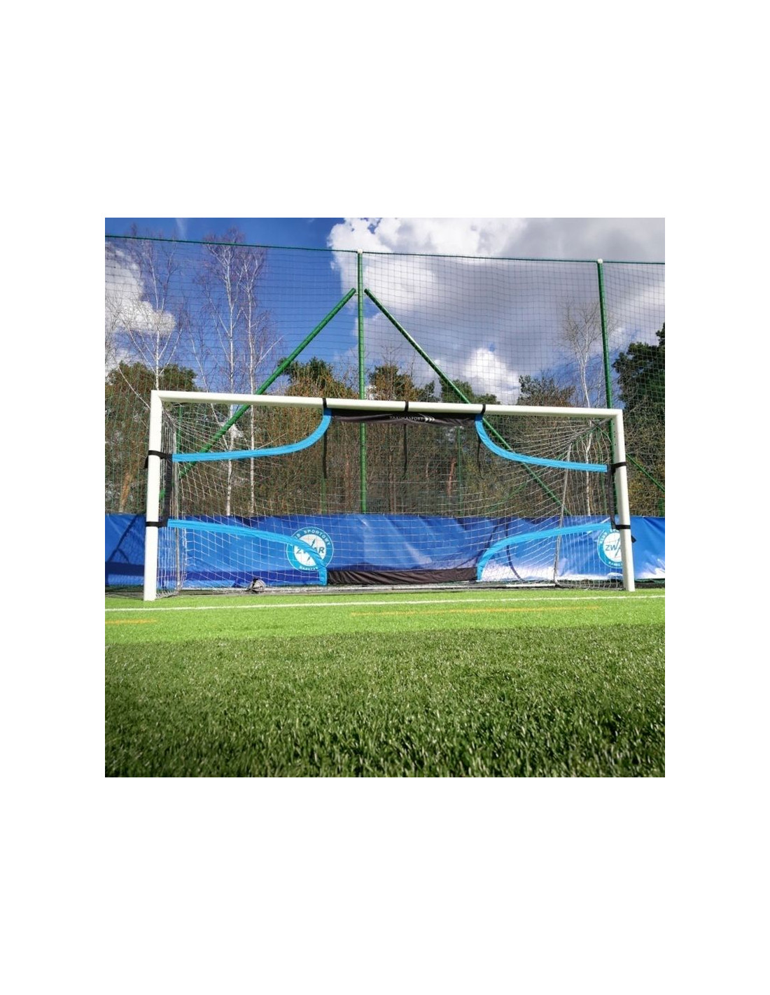 Mata do treningu celności strzałów- Mata celnościowa do bramek o wymiarach 500 x 200 cm.- Posiada cztery otwory na rogach bramki.- Mata montowana jest do bramki za pomocą gumowych obejm z klipsami plastikowych klamrkod: 100225
