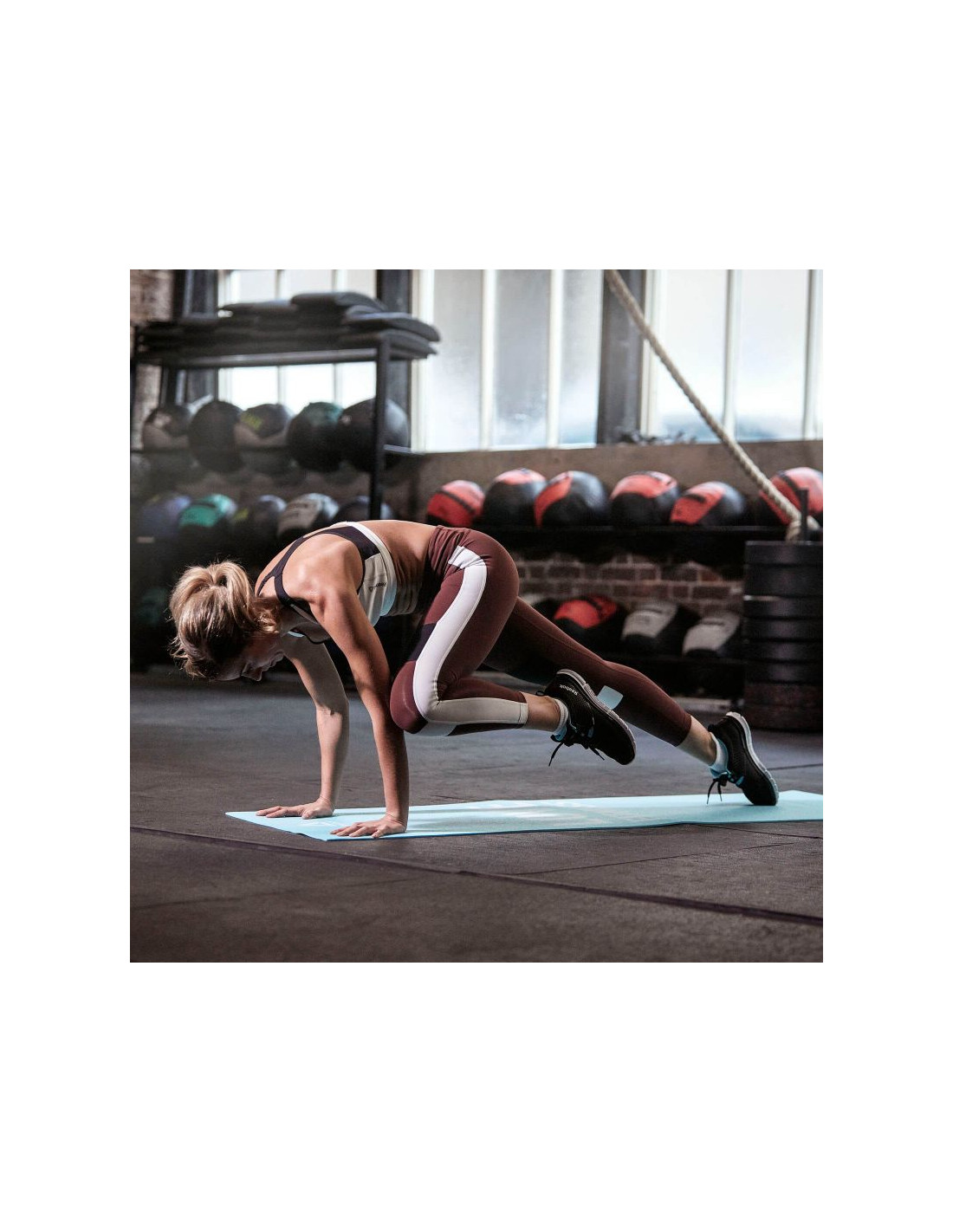 Reebok reprezentuje swoje indywidualne i innowacyjne podejście do fitnessu – to fitness nieskrępowany, optymistyczny, odważny i wykraczający poza wszelkie przyjęte normy. To idealne rozwiązanie dla osób praktykujących jogę lub pilates. Wykonana jest z trwałego materiału, który nie przesuwa się po podłodze podczas ćwiczeń.