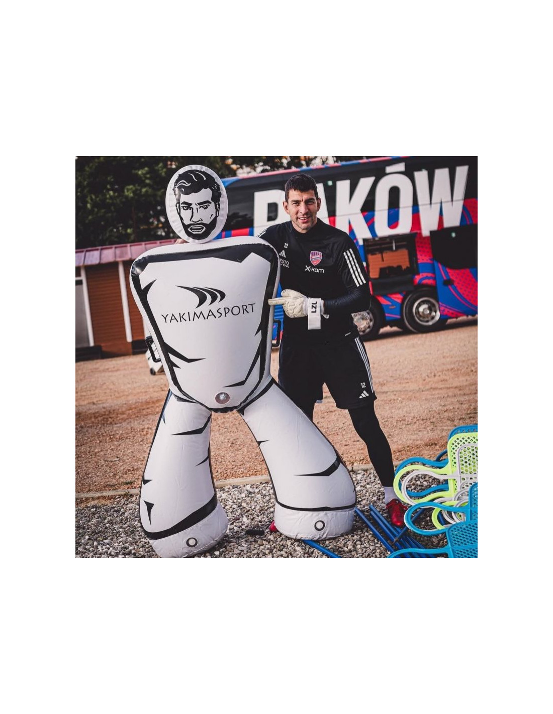 - Nie wymaga wbicia w nawierzchnię, dzięki temu umożliwia trening nawet na sztucznej nawierzchni