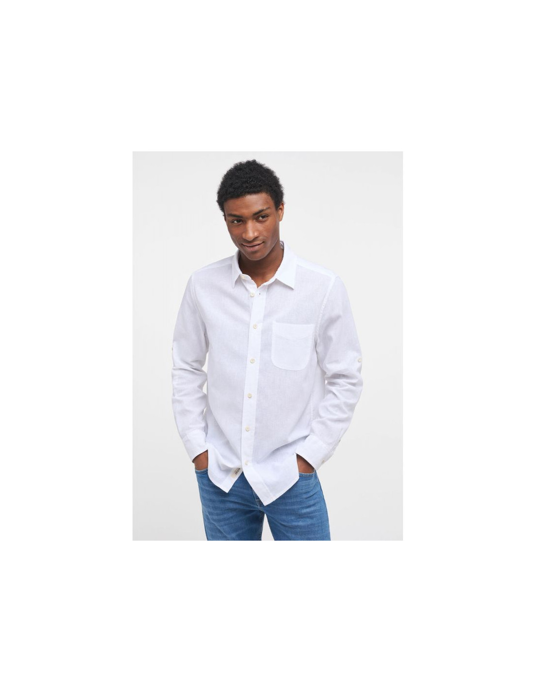 • Zapinana na ciągłe guziki i wywijany kołnierzyk, wykonana jest z wysokiej jakości mieszanki lnu i bawełny.