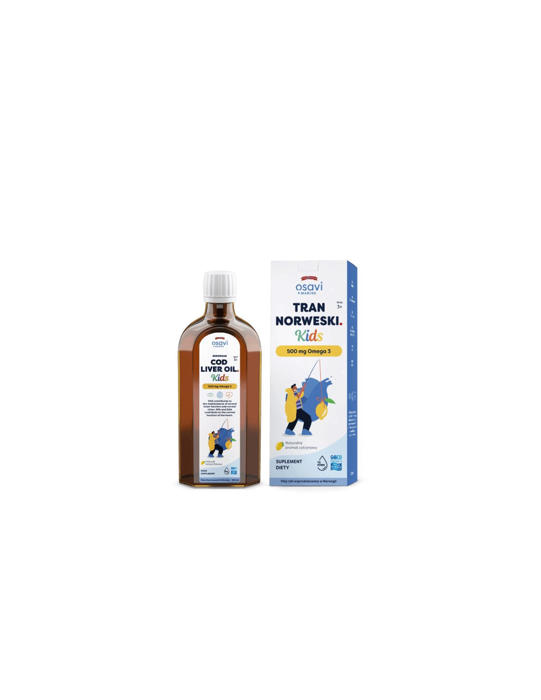 Suplement diety zawierający tran norweski dopasowany do wymagań i potrzeb organizmu dzieci powyżej 3 roku życia.