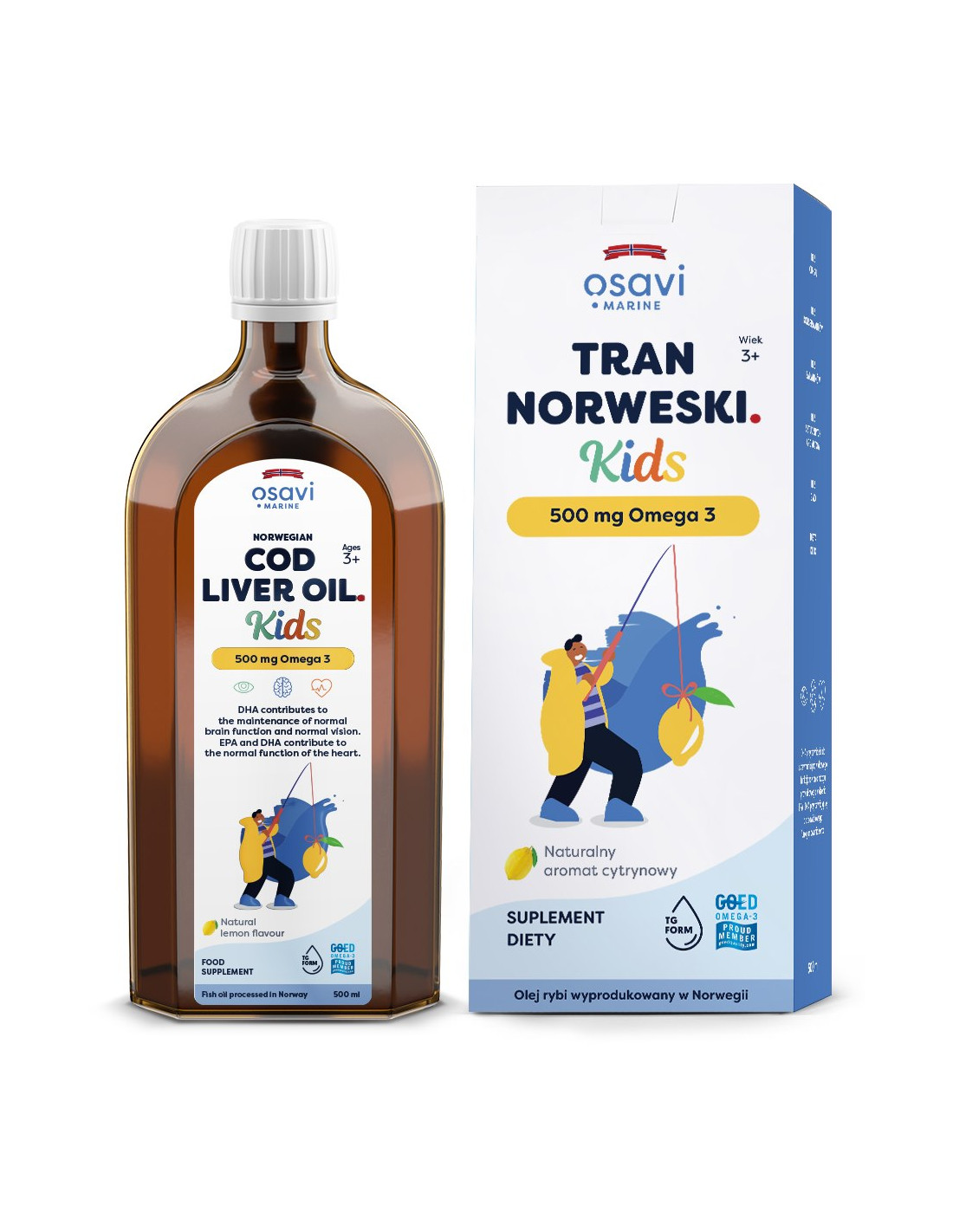 OSAVI Tran Norweski Kids 500 mg Omega 3 - smak cytrynowy (500 ml)