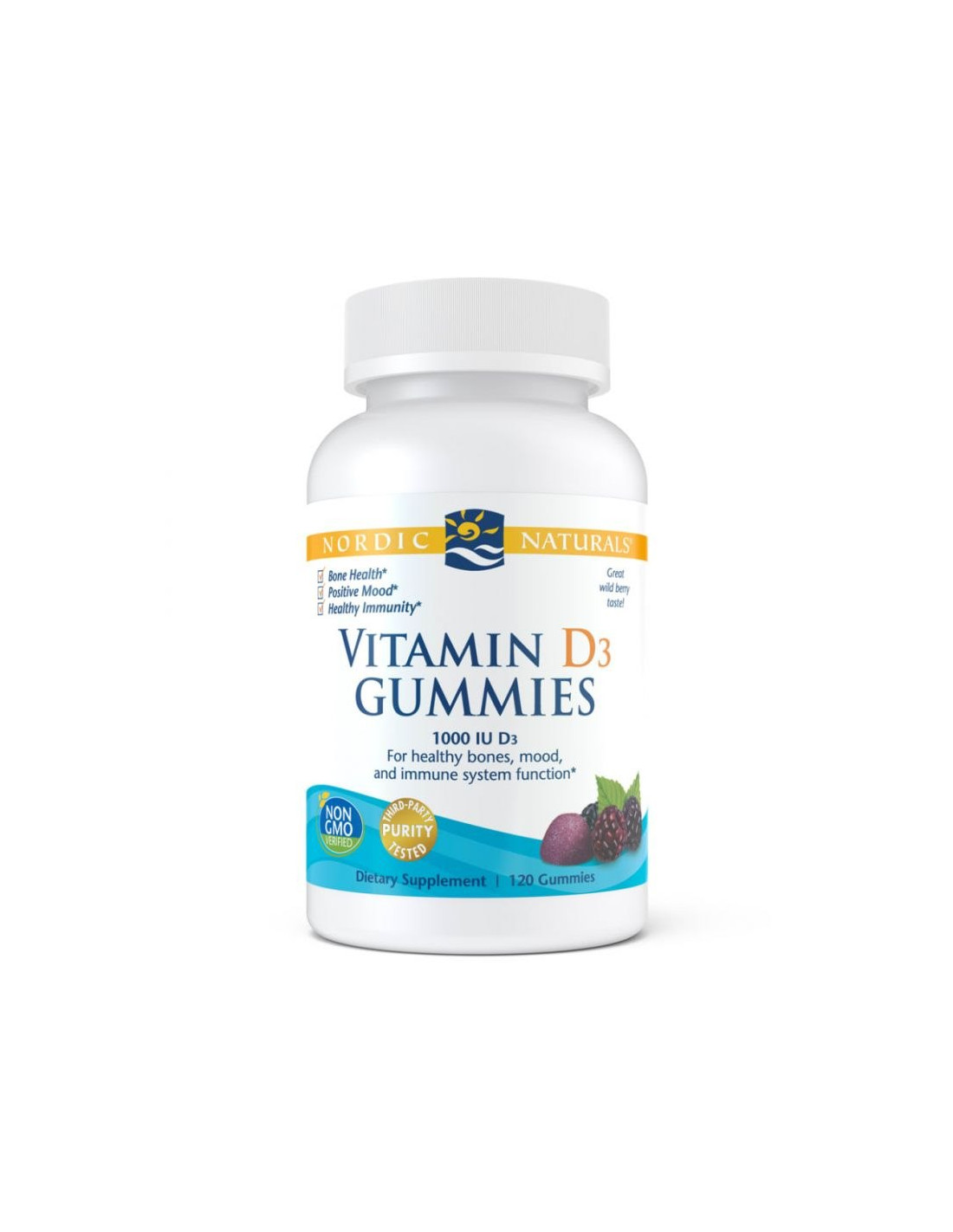 Witamina D3 (cholekalcyferol), organiczny cukier trzcinowy, organiczny syrop z tapioki, pektyna, kwas cytrynowy, kwas fumarowy, koncentrat soku owocowego, naturalny aromat.