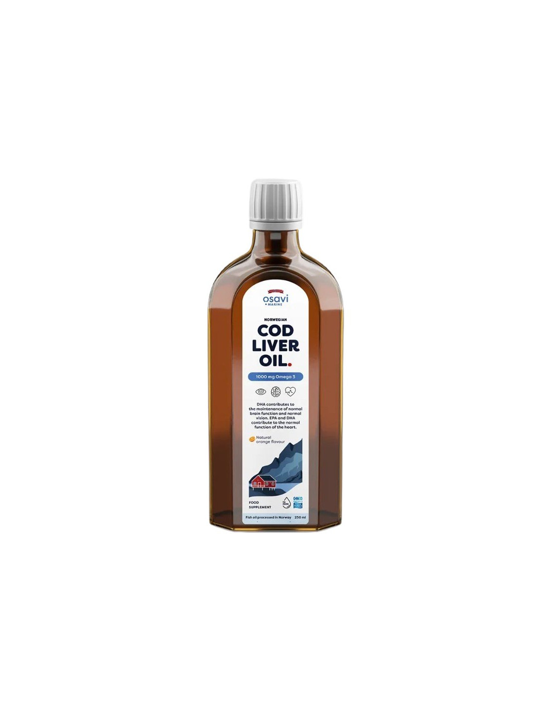 Suplement diety zawierający olej pozyskiwany z dzikiego dorsza atlantyckiego (Gadus morhua) poławianego w sposób zrównoważony. Zawiera wysokie stężenie niezbędnych nienasyconych kwasów tłuszczowych (DHA i EPA) w wysoce przyswajalnej formie trójglicerydów (TG).