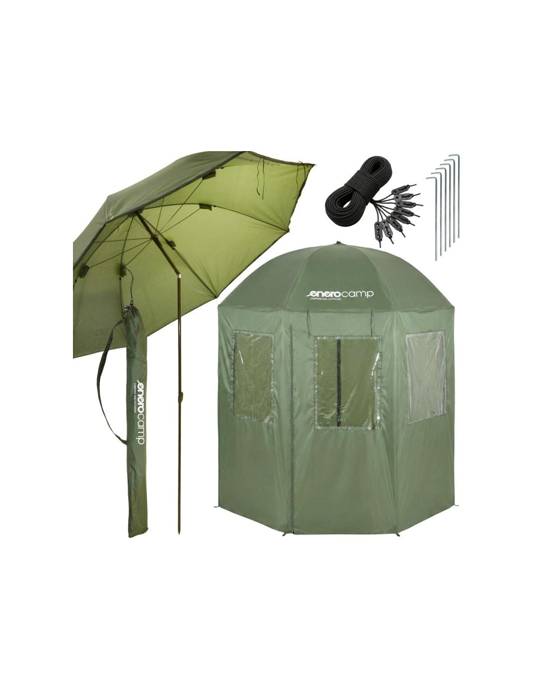 PARASOL NAMIOT WĘDKARSKI 2W1 ENERO CAMP to praktyczne rozwiązanie dla wędkarzy ceniących komfort i niezawodność. Zapewnia ochronę przed zmienną pogodą, komfort użytkowania oraz łatwą obsługę w terenie.