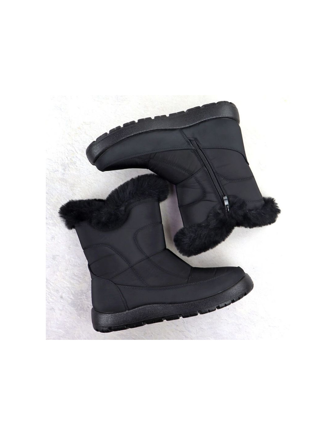 Śniegowce posiadają solidną, grubą podeszwę izolującą od zimna. Wykonane są z wysokojakościowej skóry ekologicznej i materiału tekstylnego który zapewnia wzmożoną odporność na przemakanie. Wnętrze ocieplone jest futerkiem. Ciepłe, idealne na mroźne dni.