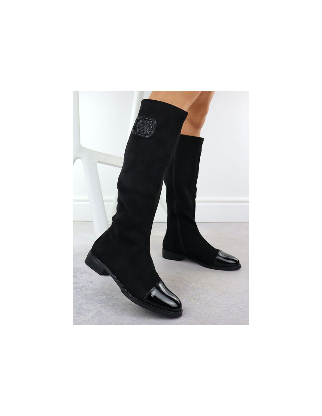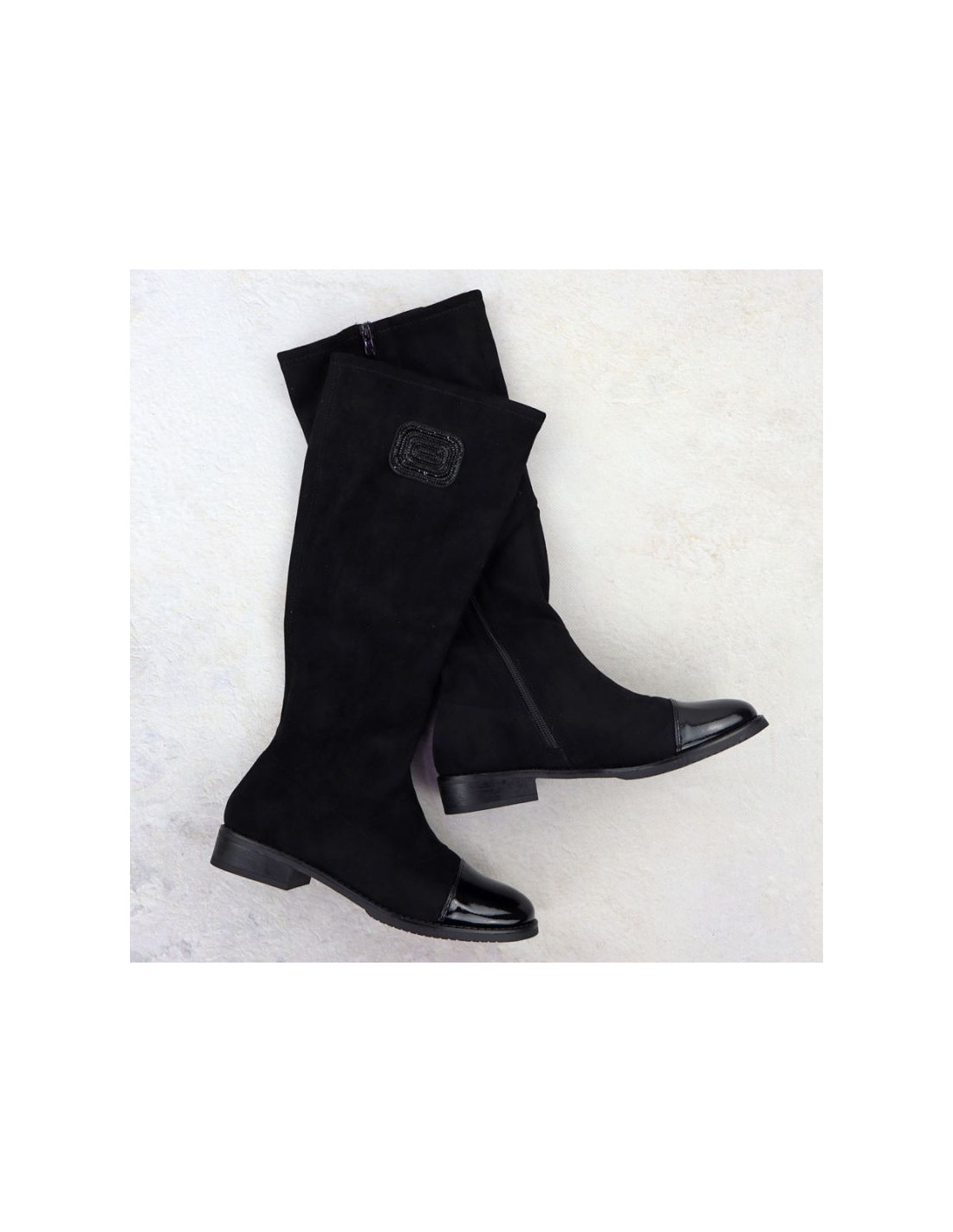 Kozaki zamszowe lakierowane damskie czarne m.daszyński mr2251-19