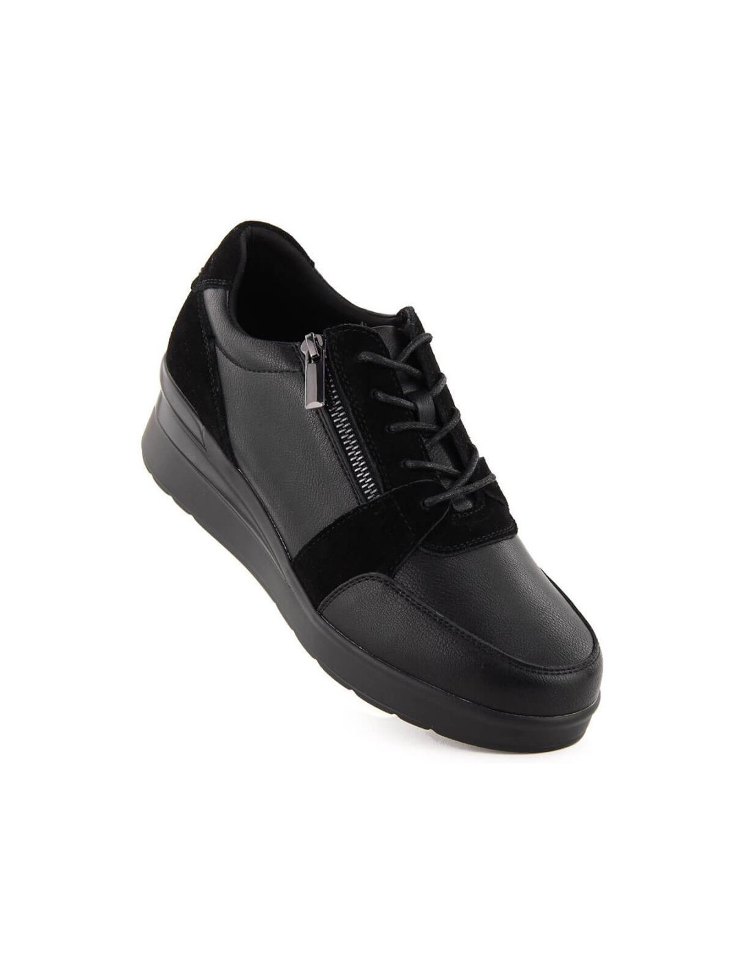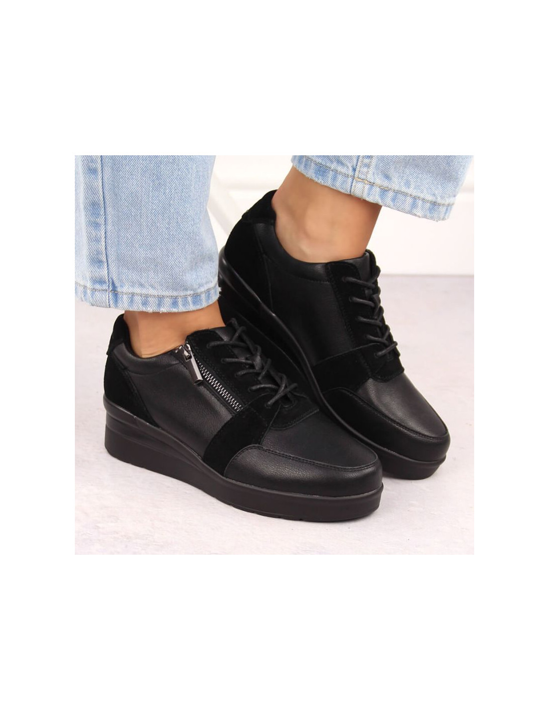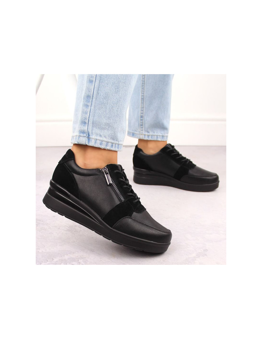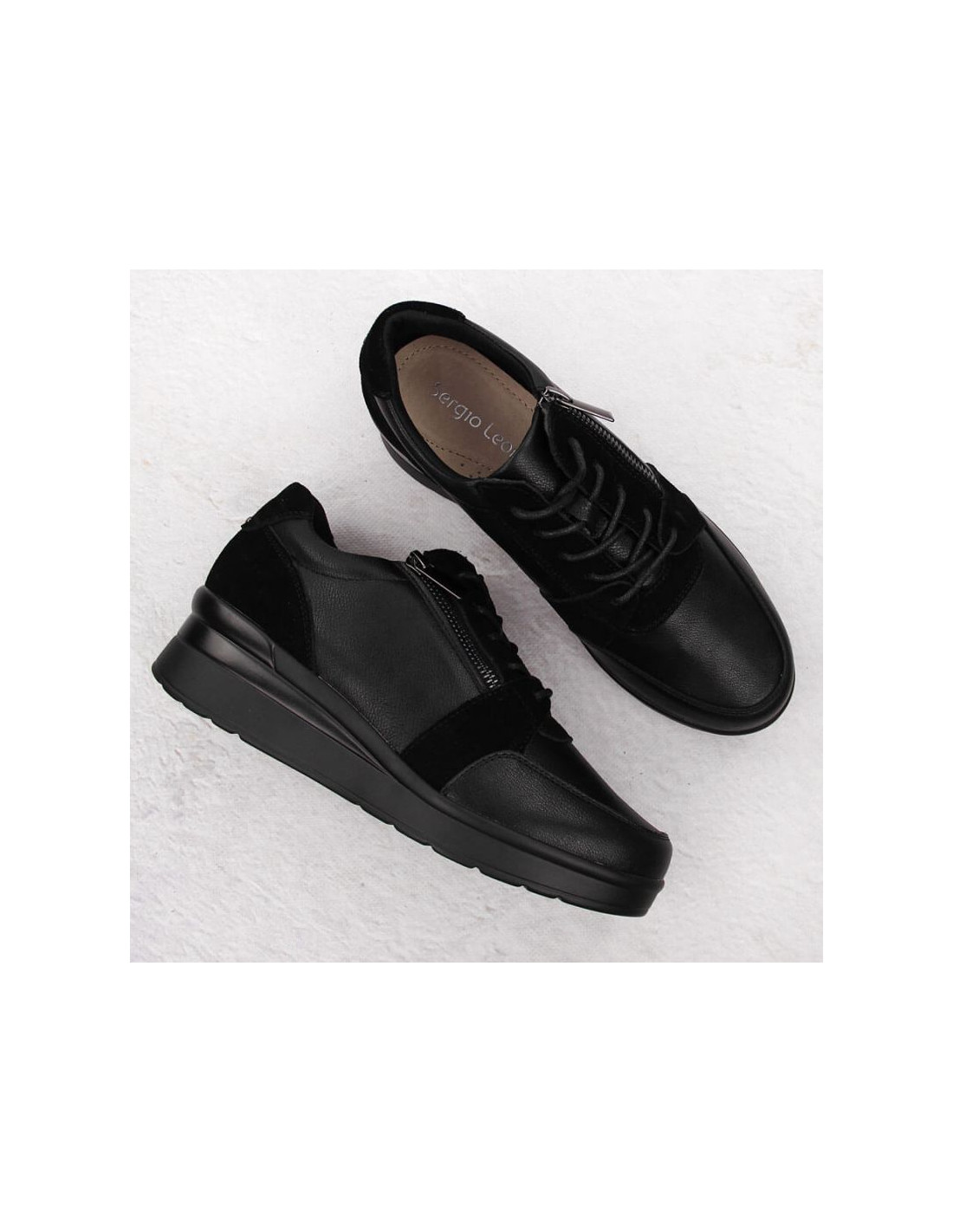 Skórzane sneakersy damskie na koturnie czarne sergio leone pb236-s