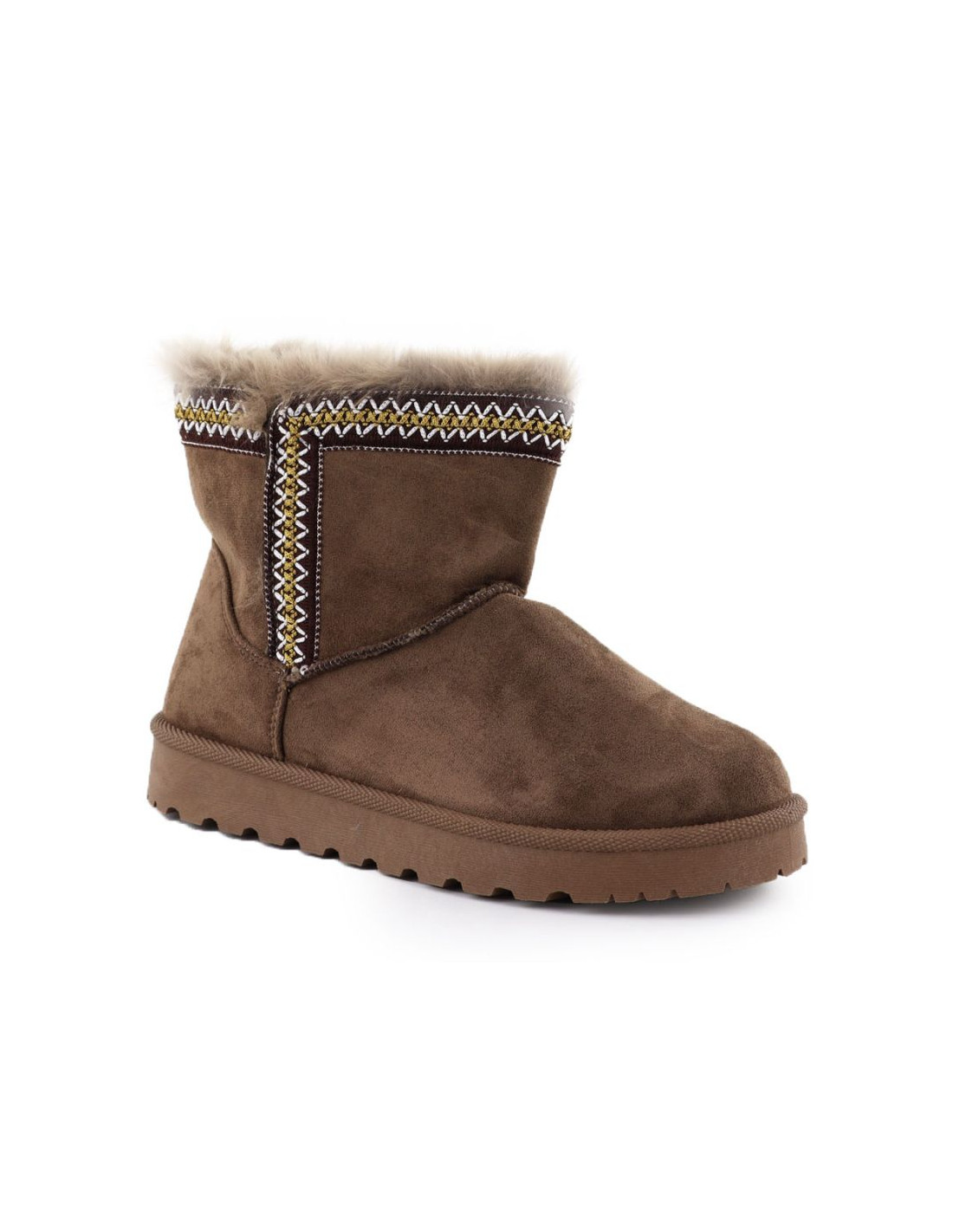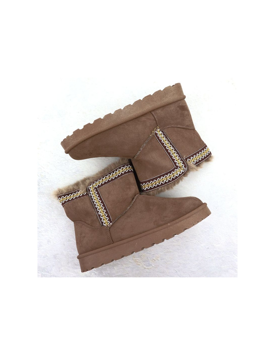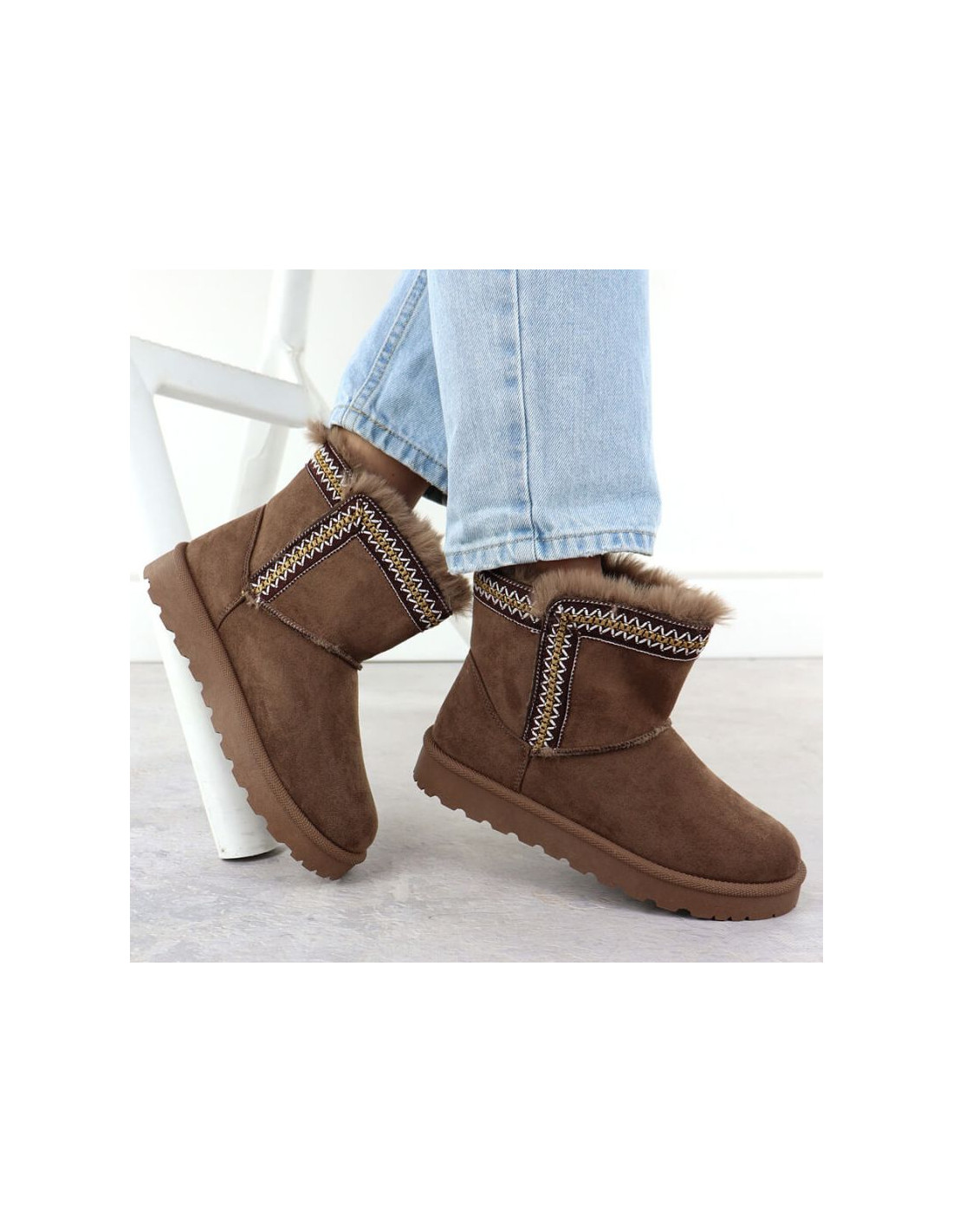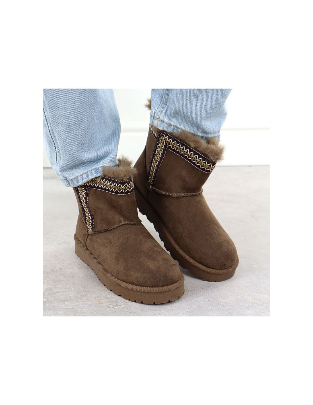 Modne śniegowce wykonane są z wysokojakościowej zamszowej skóry ekologicznej. Buty posiadają grubą podeszwę izolującą od zimna. Wyściółka oraz wkładka są ocieplone przyjemnym w dotyku futerkiem.
