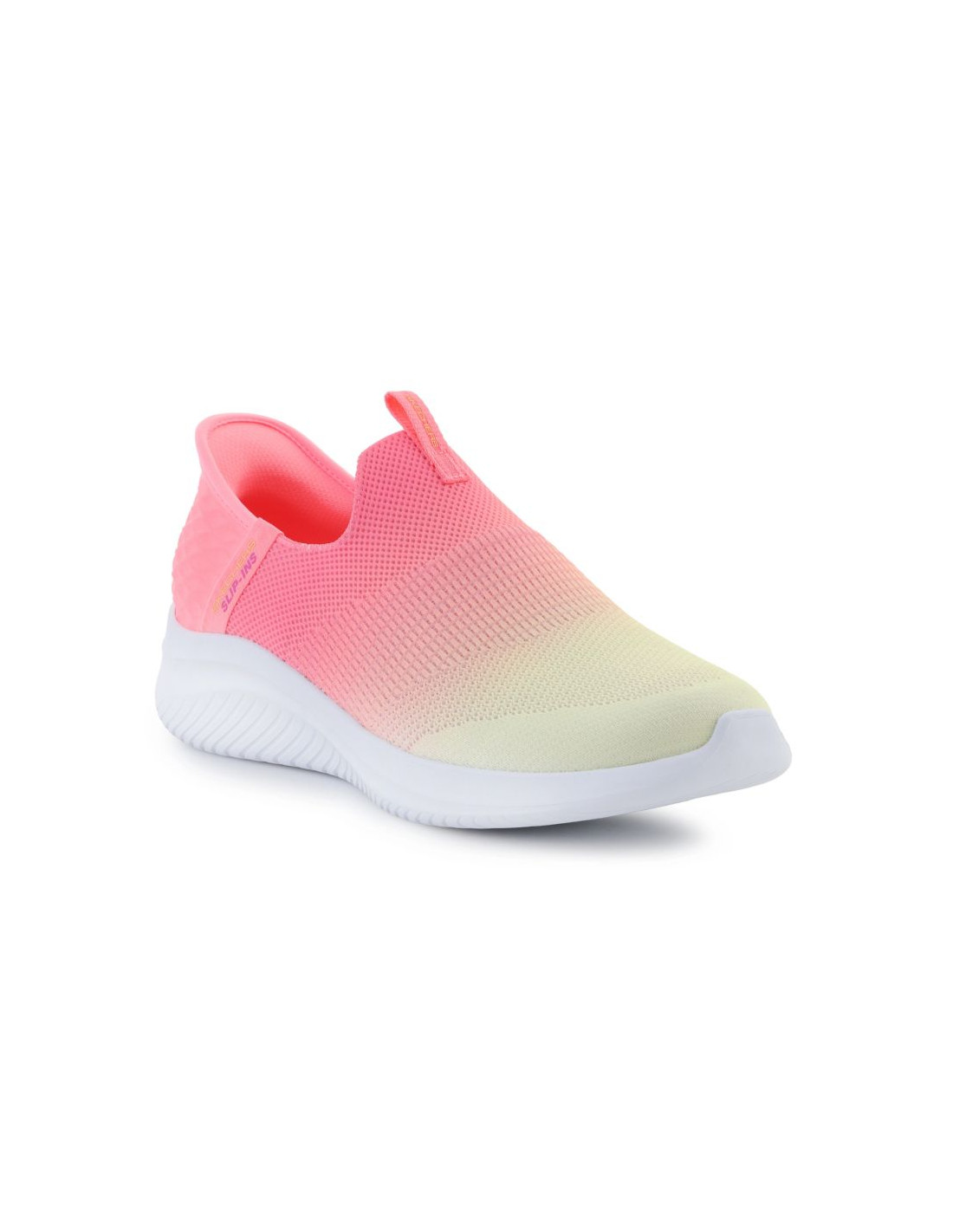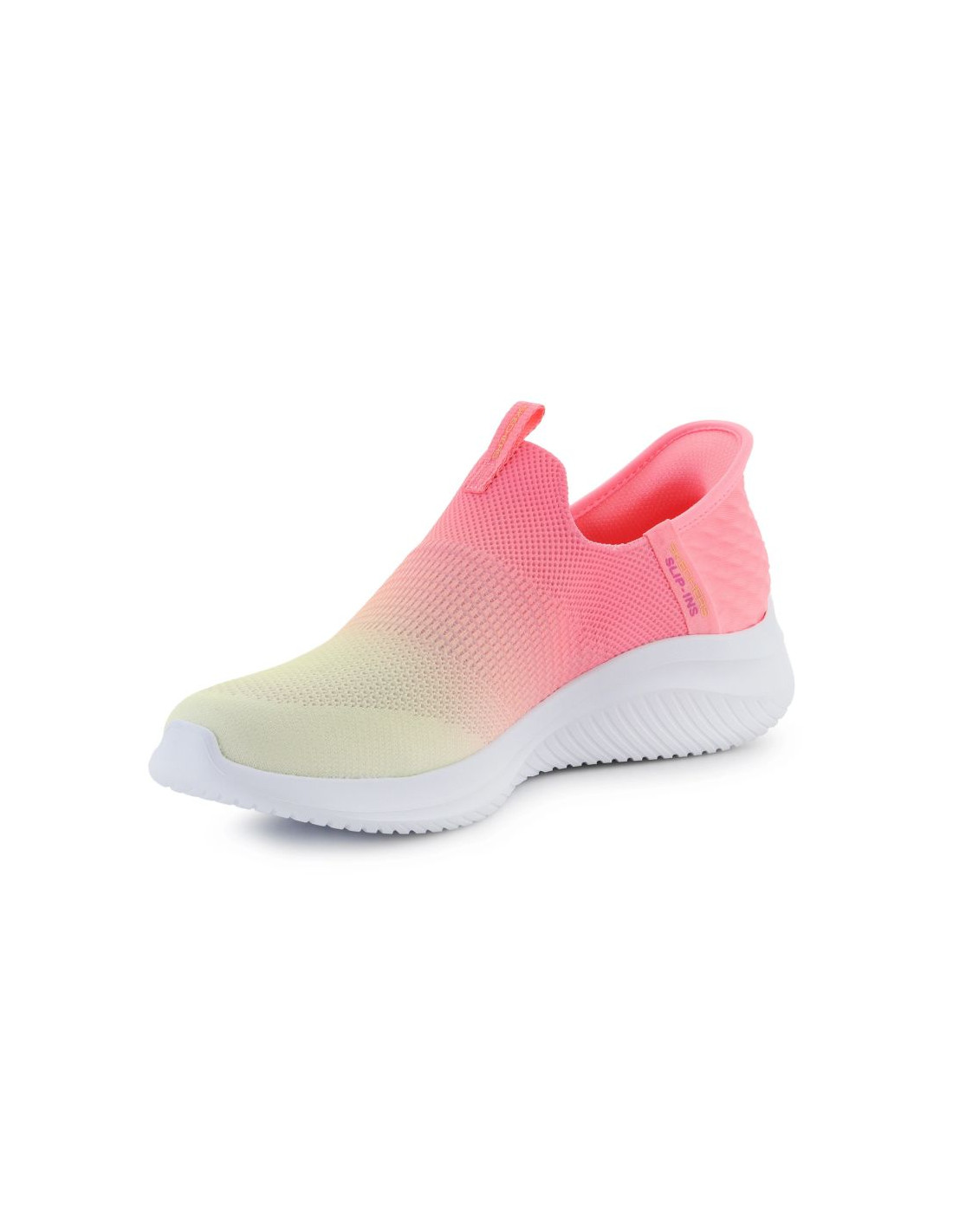 Skechers Slip-Ins Ultra Flex 3.0 Beauty Blend to idealna propozycja dla osób ceniących komfort i energiczny styl. Dzięki technologii Slip-Ins możesz założyć buty bez schylania się – wystarczy wsunąć stopę. Oddychająca, neonowo-różowo-żółta cholewka z dzianiny dopasowuje się do kształtu stopy, a elastyczna podeszwa Ultra Flex 3.0 wspiera każdy ruch. Wnętrze z miękką wkładką Air-Cooled Memory Foam® zapewnia doskonałą amortyzację, dzięki czemu to idealne buty na aktywny dzień.