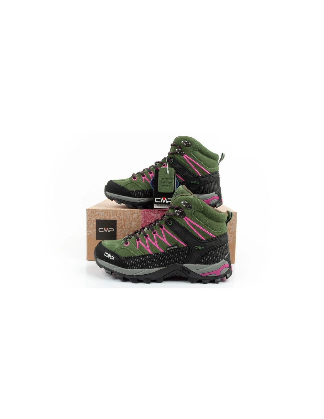 Cmp rigel buty damskie trekkingowe skóra trwałe wodoodporne za kostkę zielone