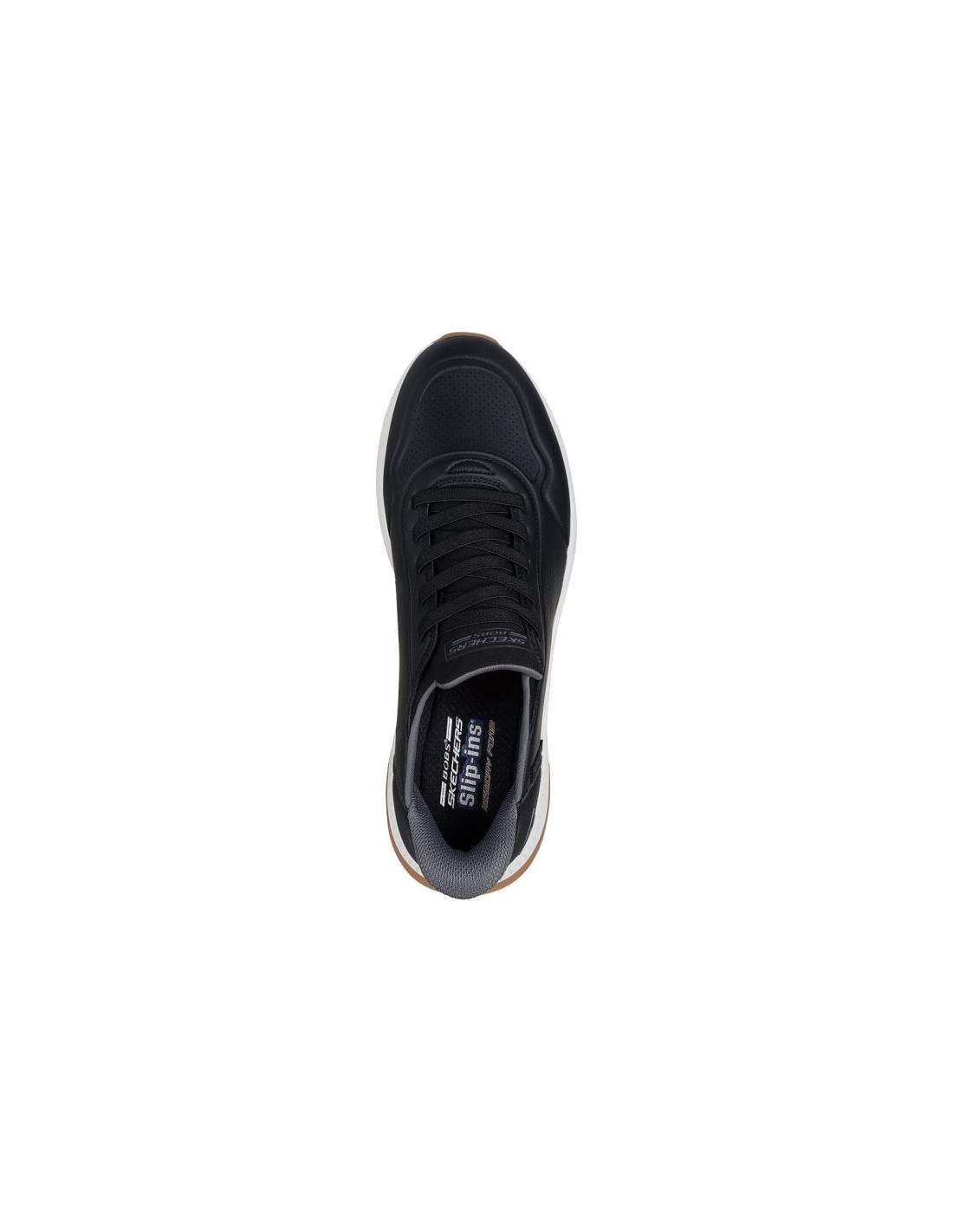 Buty męskie Skechers Bobs Squad 4 Direct Step czarne 118424 BLK Buty męskie Skechers sprawdzą się na co dzień. Wsuwana konstrukcja z elastycznymi gumkami przypominającymi tradycyjne sznurowanie (Skechers Hands Free Slip-ins®) pozwoli na łatwe przebieranie. Tekstylne wnętrze. Wkładka Skechers Memory Foam z miękkiej pianki zapamiętuje kształt stopy. Wyprofilowana, amortyzująca podeszwa środkowa. Poduszka Heel Pillow™ bezpiecznie utrzymuje stopę na miejscu. Gumowe wykończenie podeszwy zewnętrznej dba o przyczepność i bezpieczeństwo.