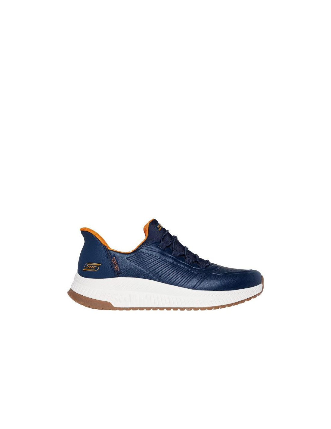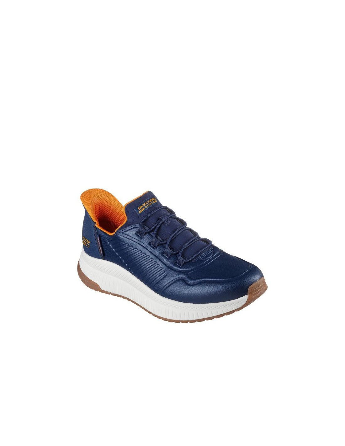 Buty męskie Skechers Bobs Squad 4 Direct Step granatowe 118424 NVY Buty męskie Skechers sprawdzą się na co dzień. Wsuwana konstrukcja z elastycznymi gumkami przypominającymi tradycyjne sznurowanie (Skechers Hands Free Slip-ins®) pozwoli na łatwe przebieranie. Tekstylne wnętrze. Wkładka Skechers Memory Foam z miękkiej pianki zapamiętuje kształt stopy. Wyprofilowana, amortyzująca podeszwa środkowa. Poduszka Heel Pillow™ bezpiecznie utrzymuje stopę na miejscu. Gumowe wykończenie podeszwy zewnętrznej dba o przyczepność i bezpieczeństwo.
