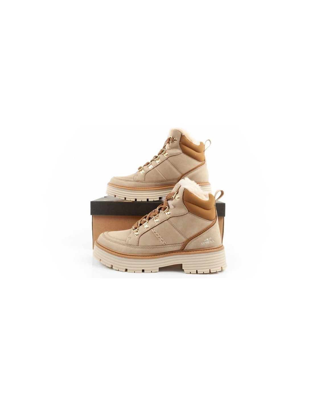 O'neill buty trapery zimowe damskie botki za kostkę ocieplane modne beżowe brązowe