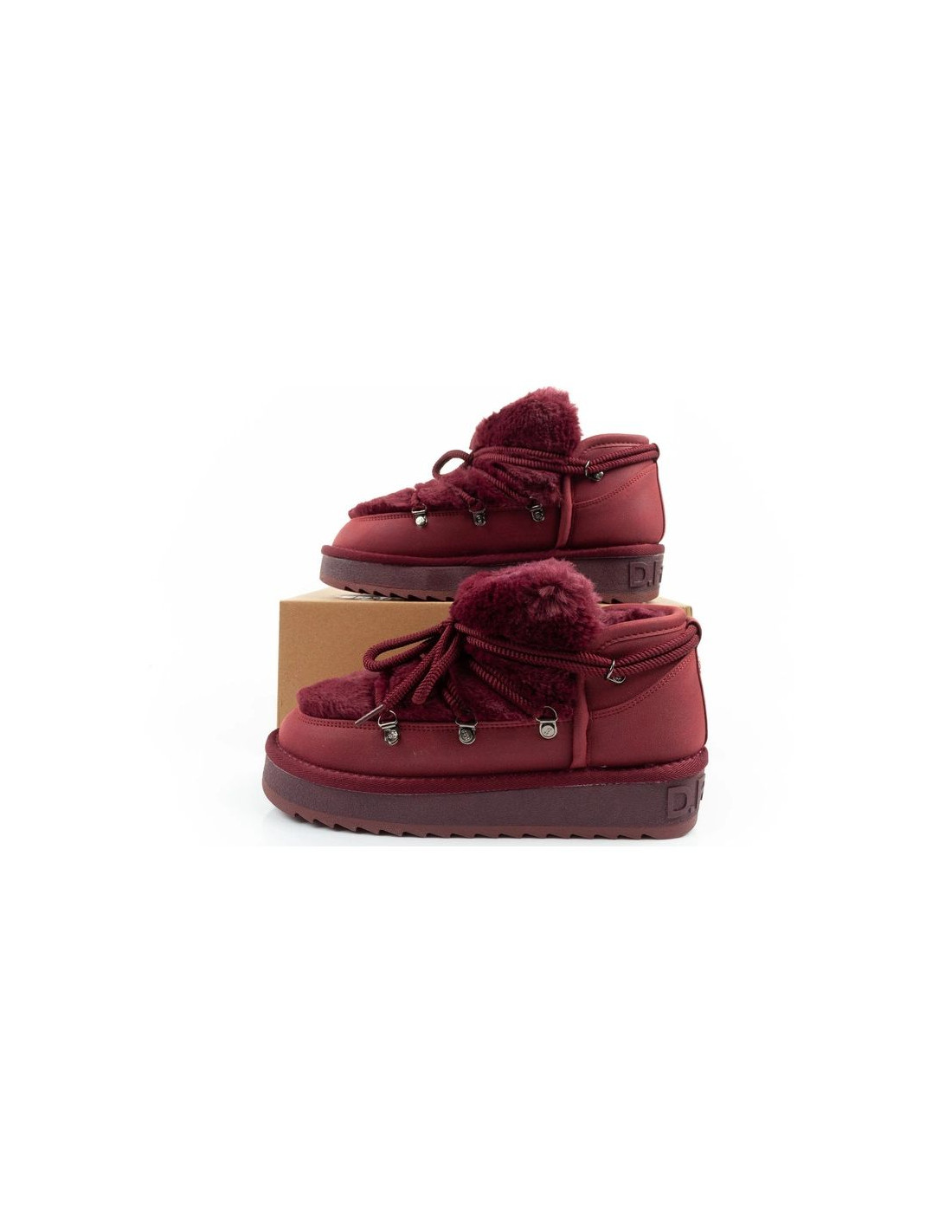 D.franklin buty śniegowce damskie zimowe modne futerko ocieplane bordowe