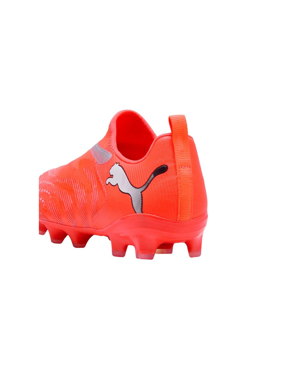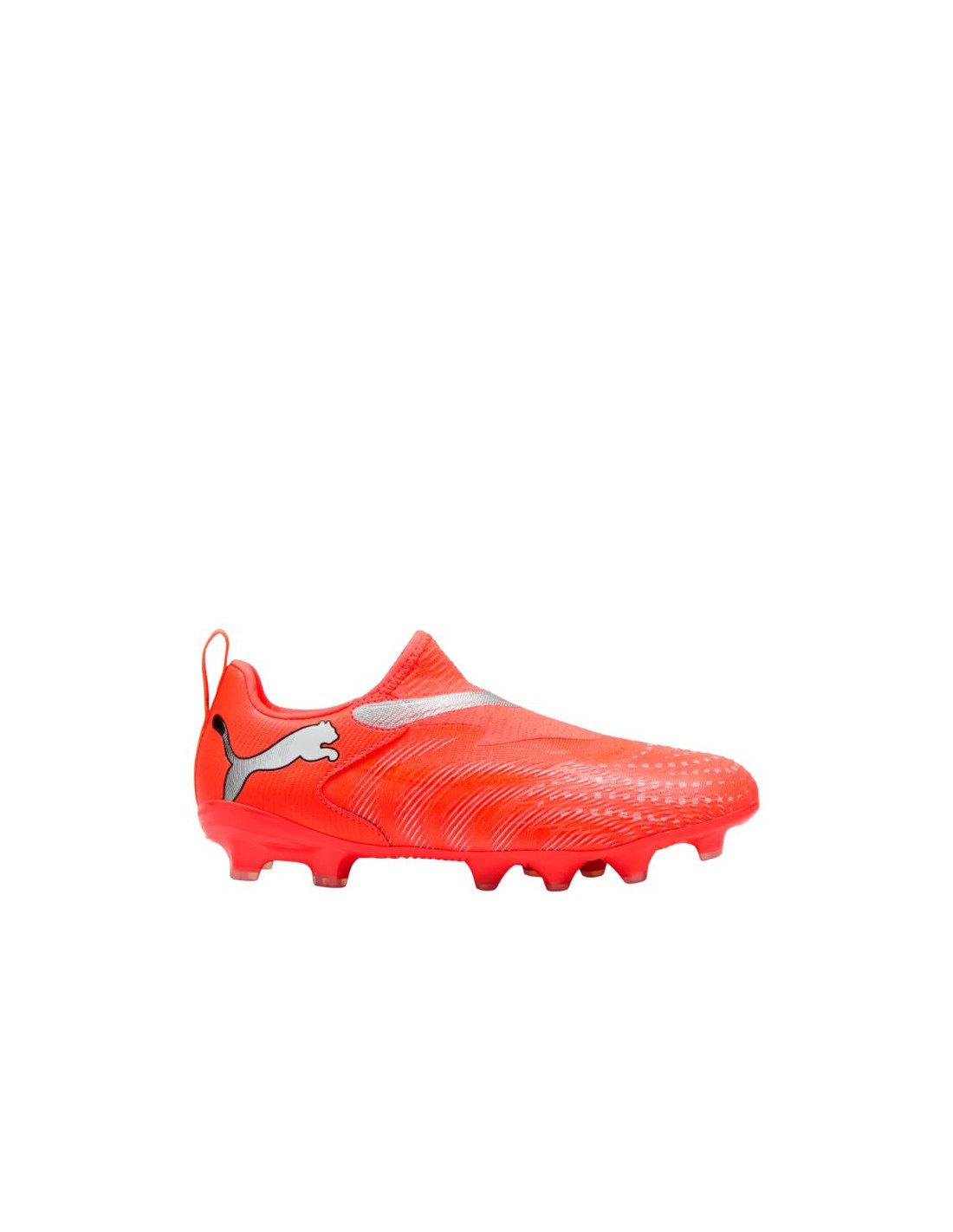 Buty piłkarskie dla dzieci Puma Future 9 Match LL FG/AG 108722 01 Buty piłkarskie dla dzieci Puma zostały zaopatrzone w podeszwę przeznaczoną do treningów na naturalnej murawie i sztucznej nawierzchni. Model z kolekcji Unleashed Pack. Syntetyczna cholewka o niskim profilu. Konstrukcja bez sznurowadeł. Wytłoczone strefy. Taśma wzmacniająca na śródstopiu. Uchwyt na pięcie. Podeszwa zewnętrzna zyskała zaawansowaną konfigurację korków dla szybkich obrotów i 360-stopniowej zwinności. Cholewka tego buta jest wykonana w co najmniej 30% z materiału pochodzącego z recyklingu.