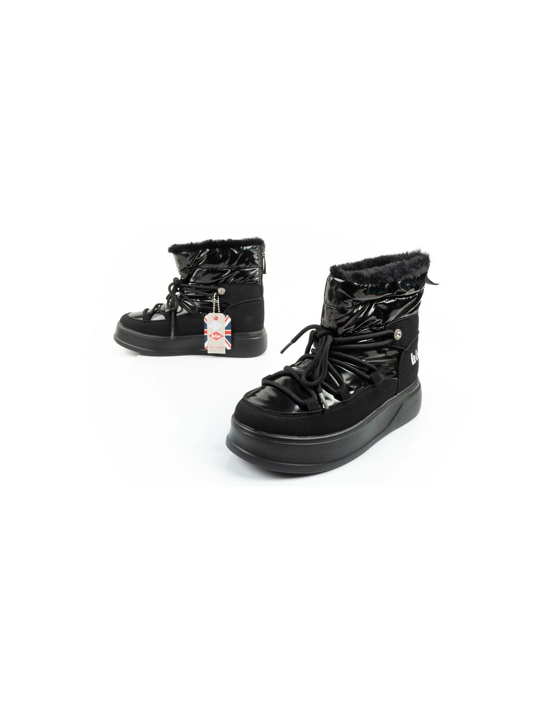 Lee Cooper buty sportowe damskie zimowe trekkingowe ocieplane lakierowane