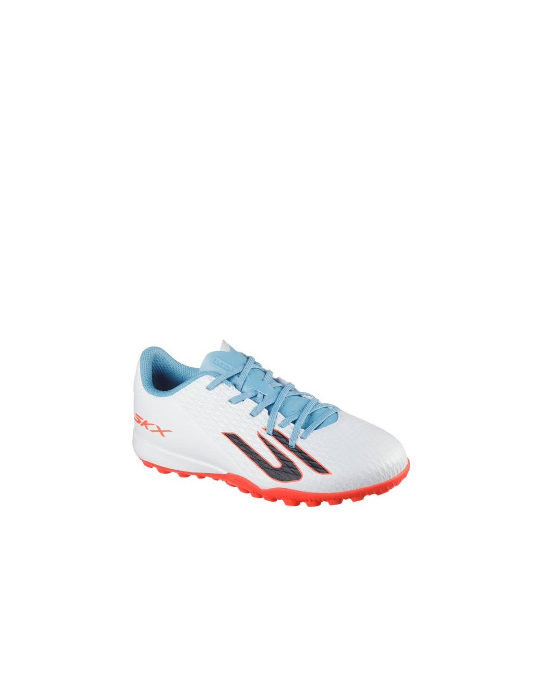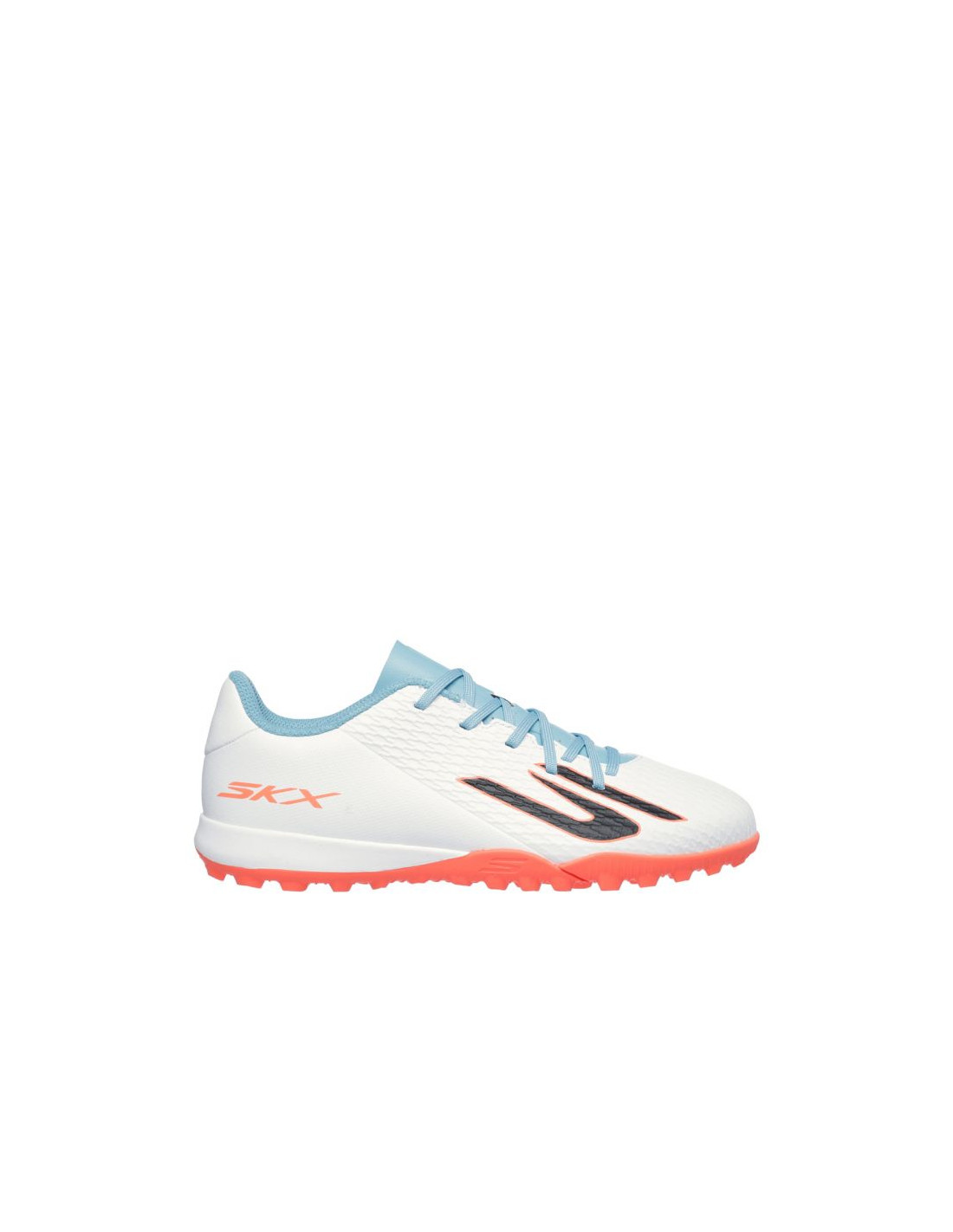 Buty piłkarskie dla dzieci Skechers SKX_2 białe 252164L Buty piłkarskie dla chłopców Skechers przeznaczone są do gry na sztucznej trawie. Cholewka ze skóry syntetycznej. Niski krój. Klasyczne sznurowanie. Teksturowana powłoka. Tekstylne wnętrze oraz wkładka EVA. Gumowa podeszwa zewnętrzna.