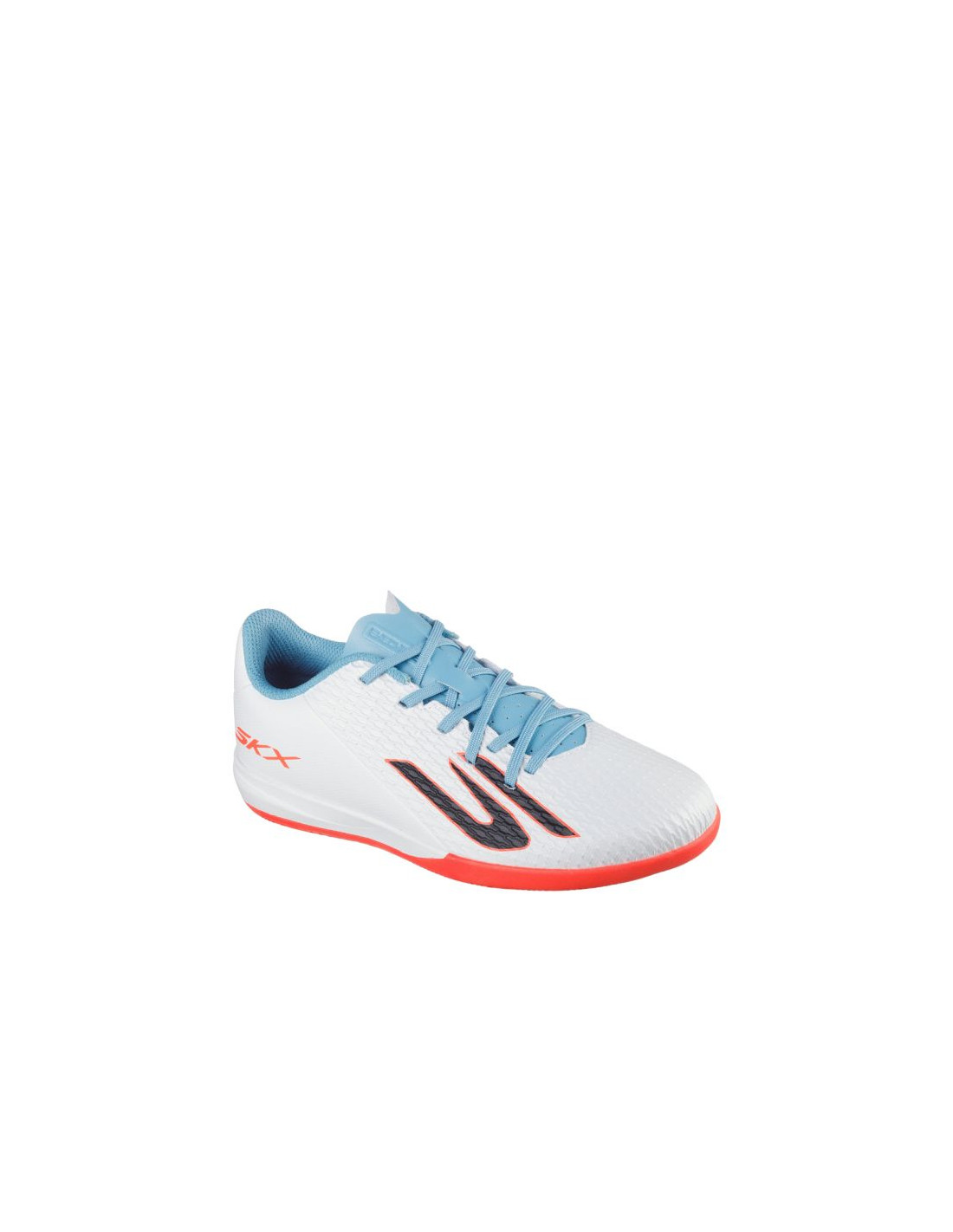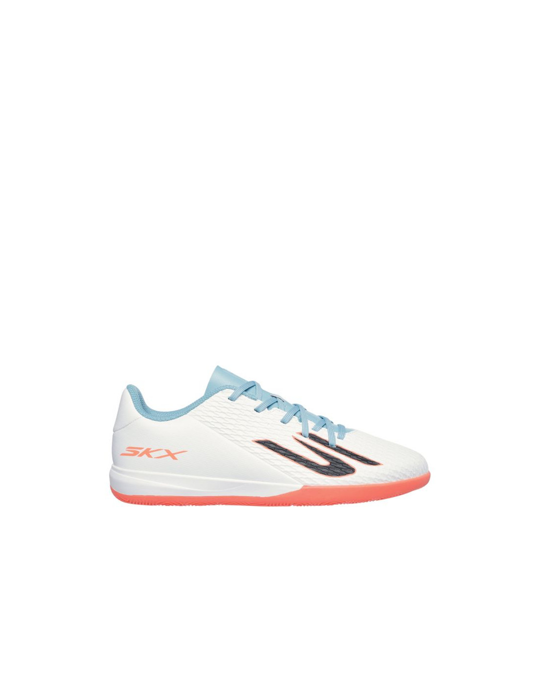 Buty piłkarskie dla dzieci Skechers SKX_2 białe 252168L Buty piłkarskie dla chłopców Skechers przeznaczone są do gry na hali. Cholewka ze skóry syntetycznej. Niski krój. Klasyczne sznurowanie. Teksturowana powłoka. Tekstylne wnętrze oraz wkładka EVA. Gumowa podeszwa zewnętrzna.