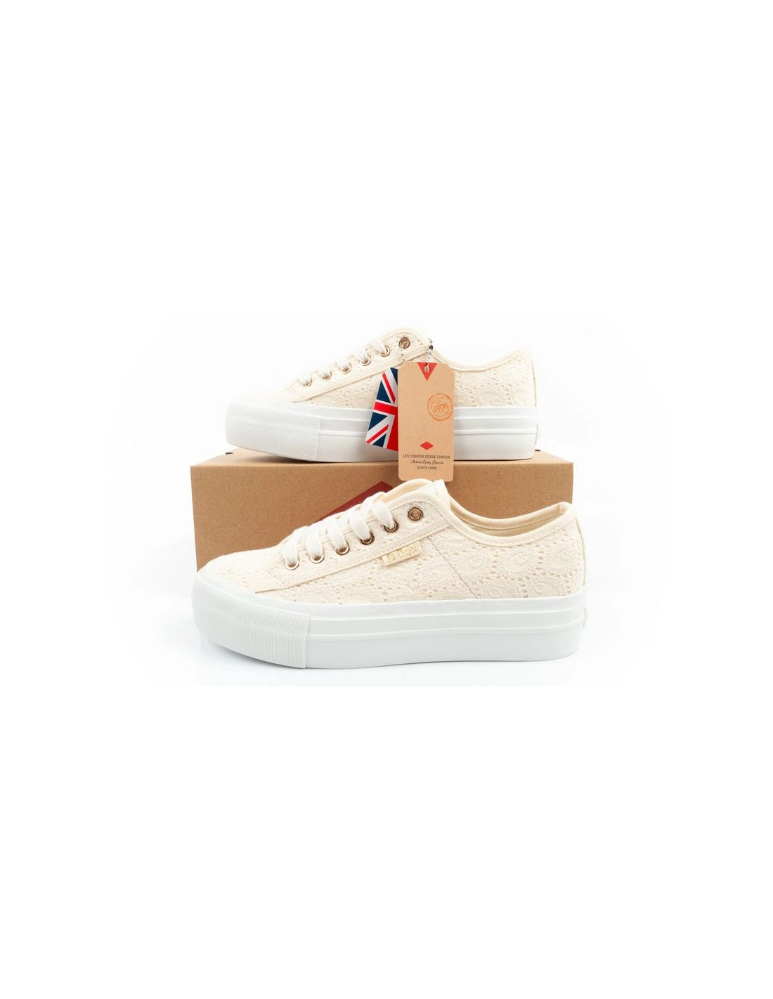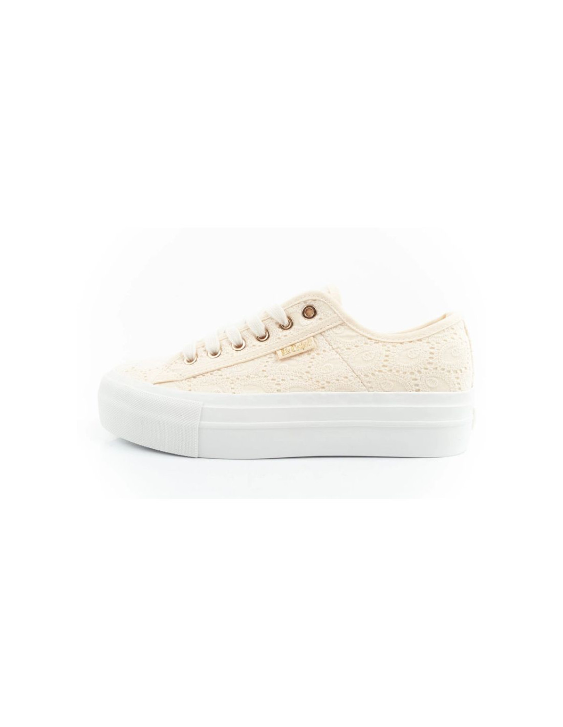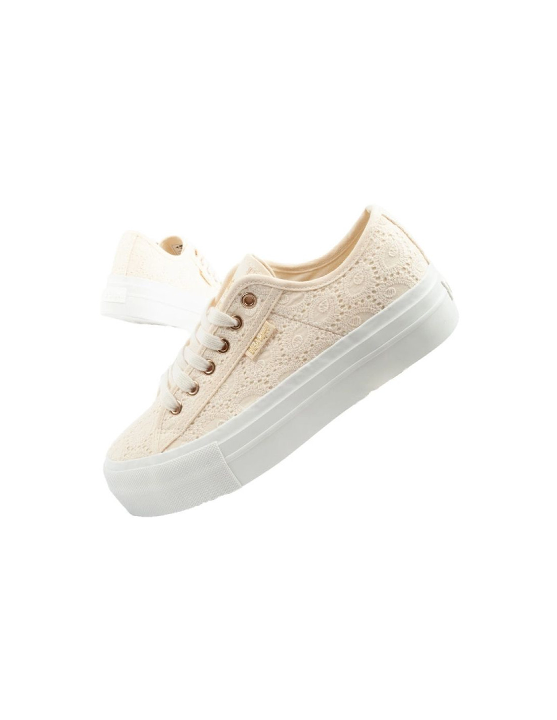 Lee Cooper buty sportowe damskie trampki koronkowe beżowe platforma