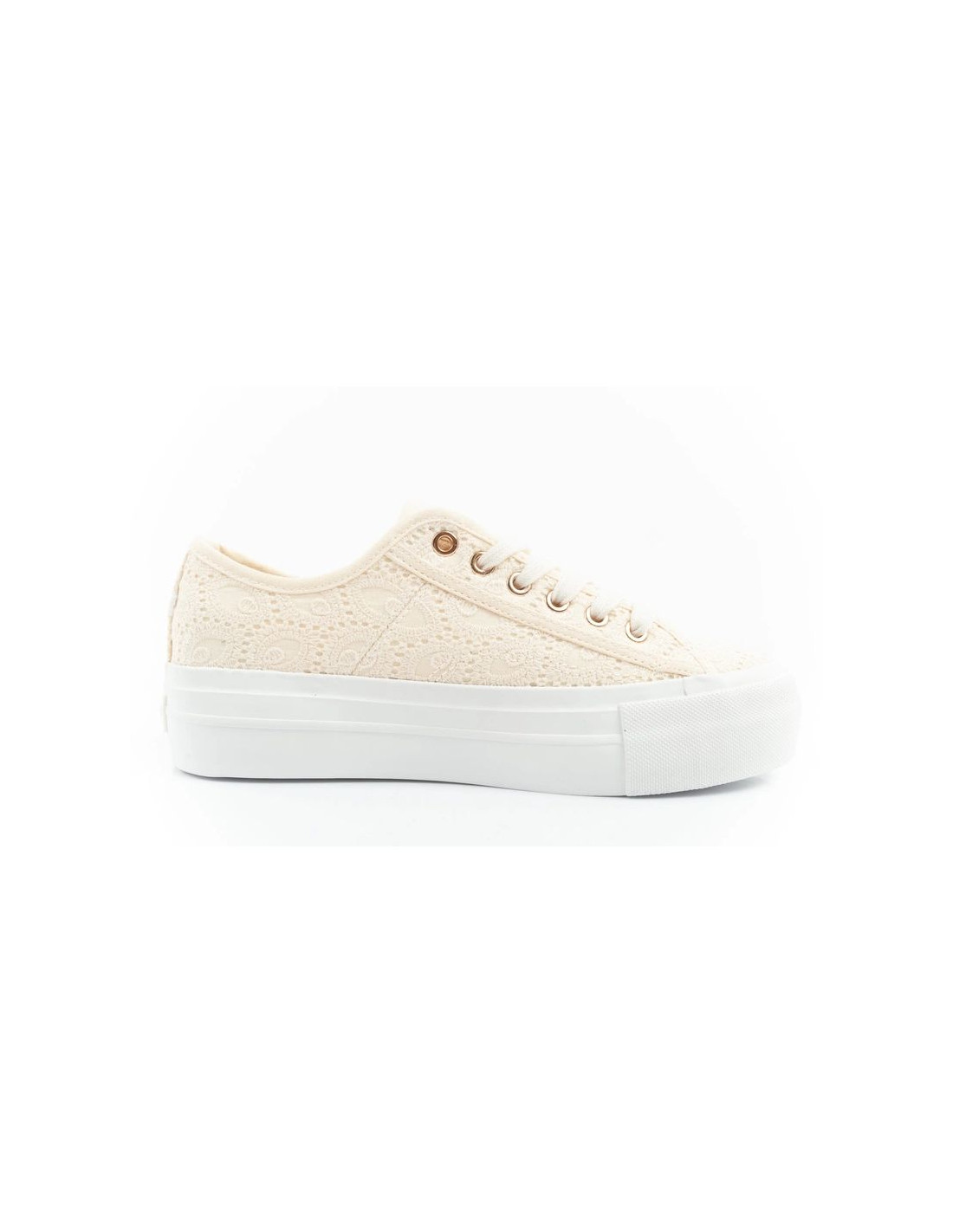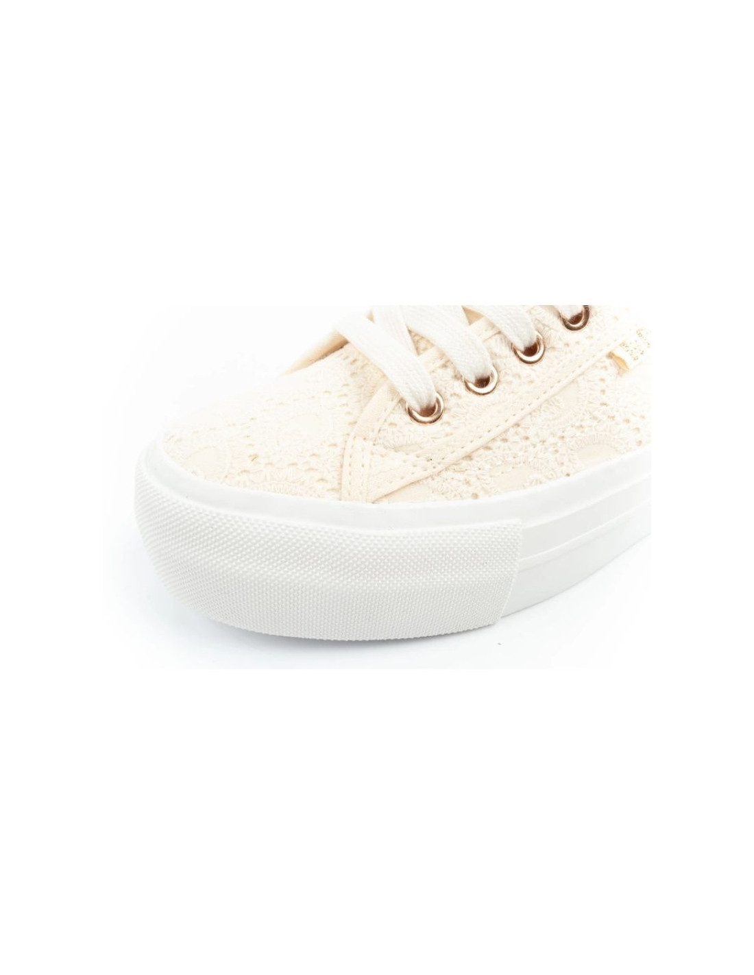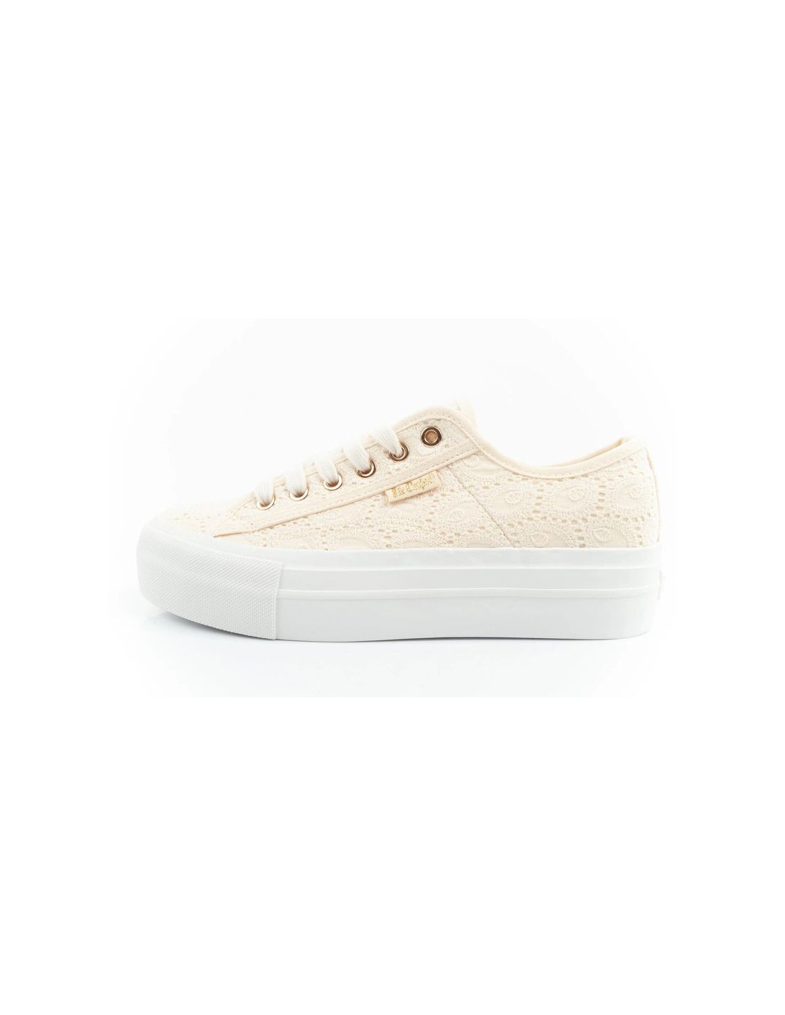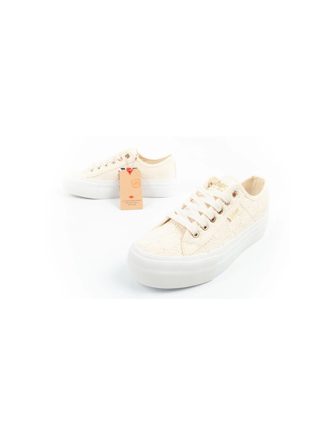 Lee Cooper buty sportowe damskie trampki koronkowe beżowe platforma