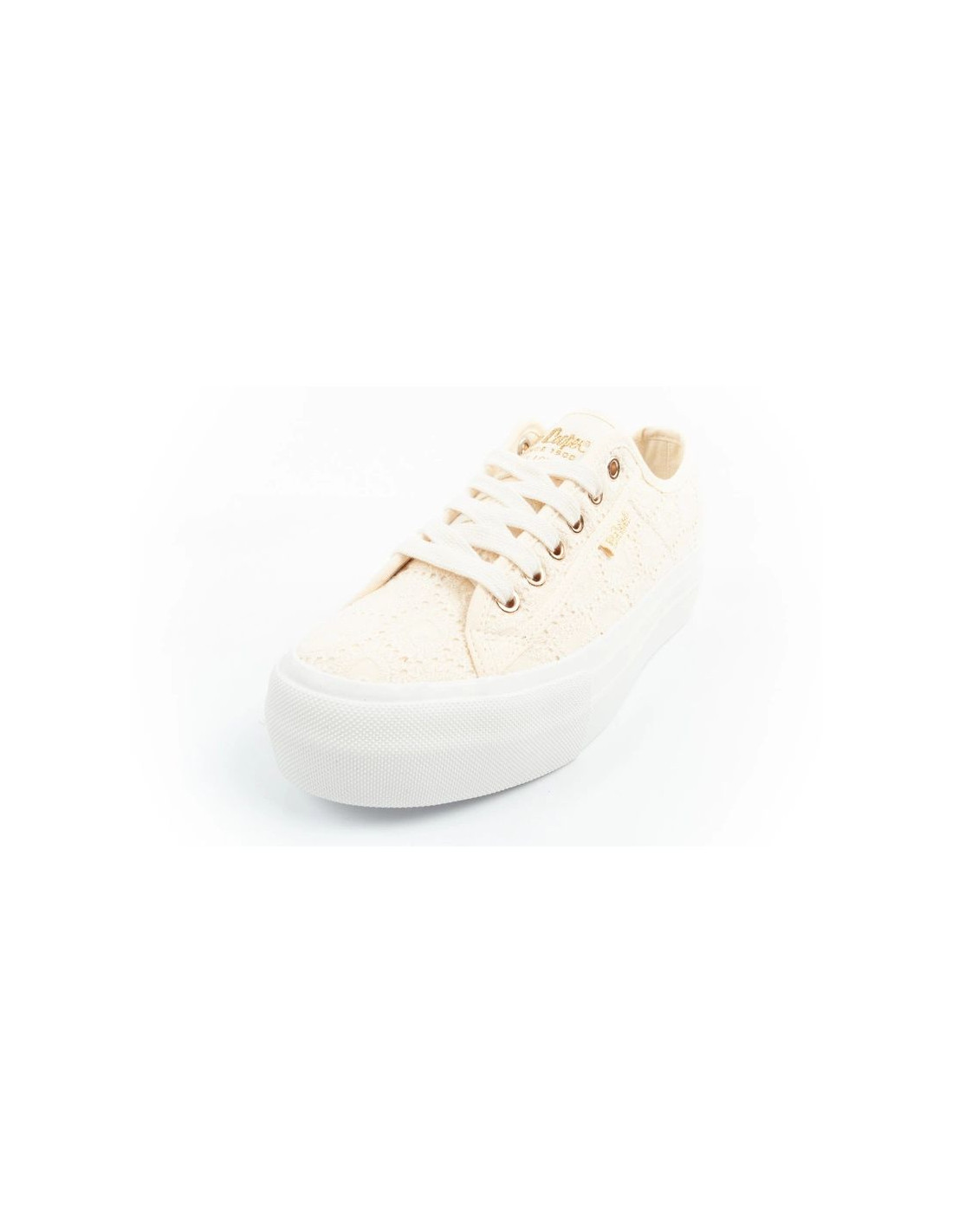 Lee cooper buty sportowe damskie trampki koronkowe beżowe platforma